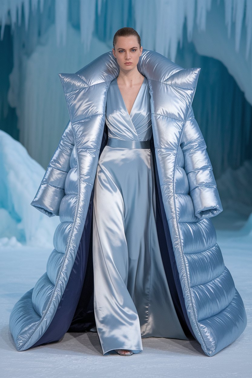 Icy blue satin slip dresses are experiencing a revival, particularly in designs featuring asymmetrical cuts and unique silhouettes that offer a modern twist. These innovations enhance the dress’s inherent elegance while providing a fresh, contemporary style. Layering with turtlenecks or oversized blazers also remains a popular strategy, allowing for versatility across seasons.
