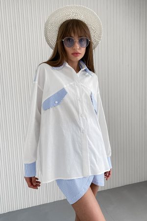 Blue And White Striped Stitching Shirt For Women Loose Outfit