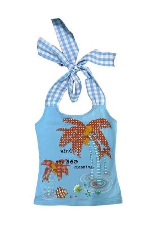 Girls Plaid Patchwork Lace-Up Halter Camisole For Women