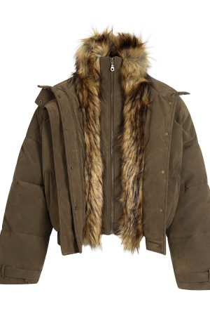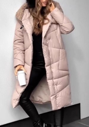 Mid-length Lightweight Silk-cotton Puffer Coat With A Large Fur Collar For Superior Warmth