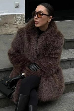 Soft Mid-length Faux Fur Coat With A Peter Pan Collar