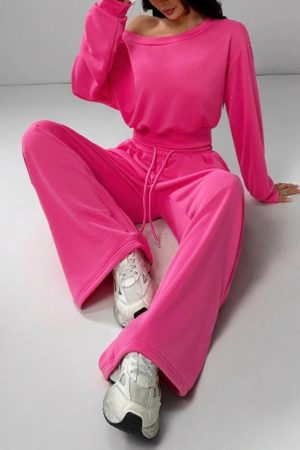 Slim-fit Off-shoulder Crop Top With Casual Pants Set