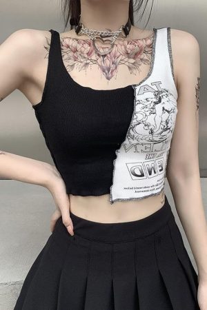 Street Style Womens Tank Top With Patchwork Print