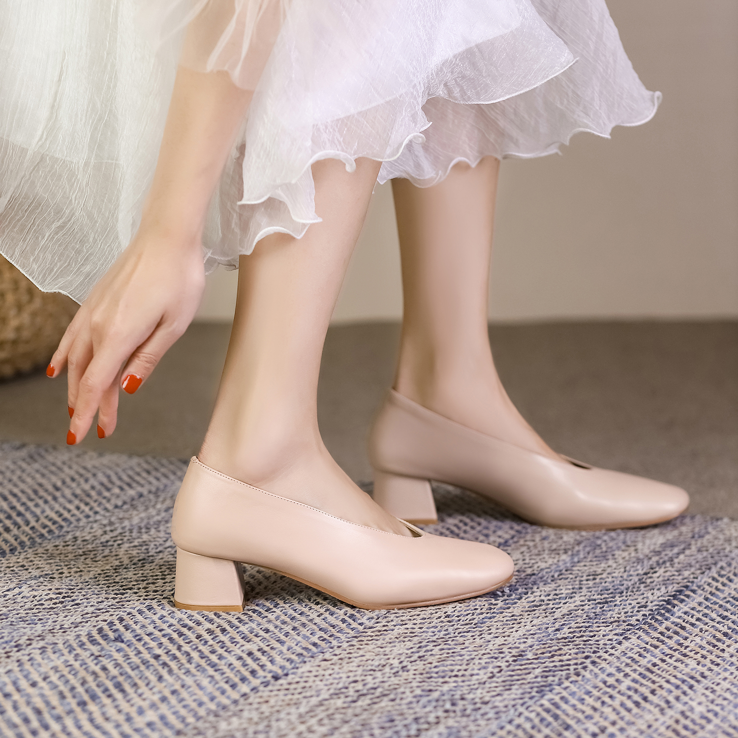 Spring Soft Leather Mid Heel Chunky Heels Retro Square Toe Women Shoes, Genuine Leather Soft Sole High-quality product featuring spring outfits, hoco dresses, warm fall outfits and more. Modern design that fits the latest trends. Premium materials ensure durability and comfort. Order now for special offers! Product designed with attention to every detail. Suitable for all occasions and personal styles.