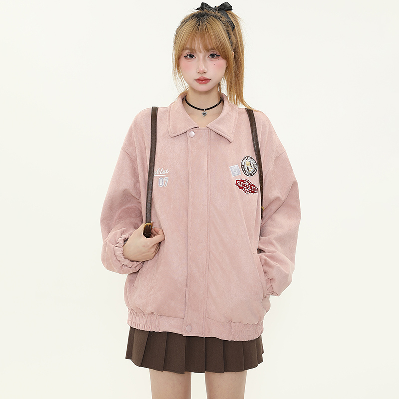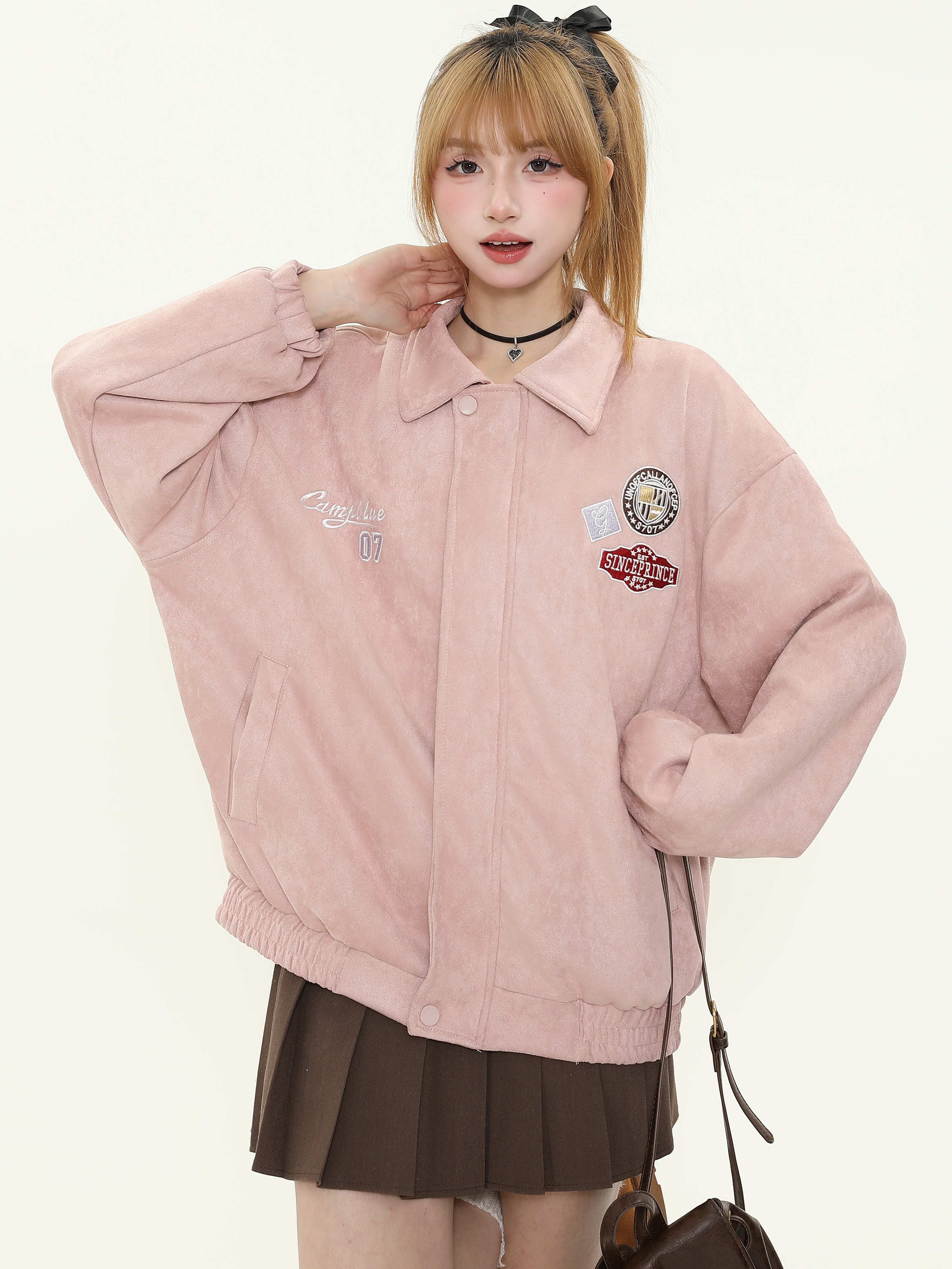 Elevate your spring wardrobe with our American Vintage Badge Embroidered Lapel Baseball Jacket for Women, designed in an oversized fit that perfectly captures the essence of couple style. This trendy jacket features exquisite badge embroidery, adding a unique flair to your casual outfits while ensuring ultimate comfort and style. Perfect for layering, it effortlessly complements any look, making it a must-have for your collection. Don’t miss out on this fashion staple add to your cart today and step out in style!