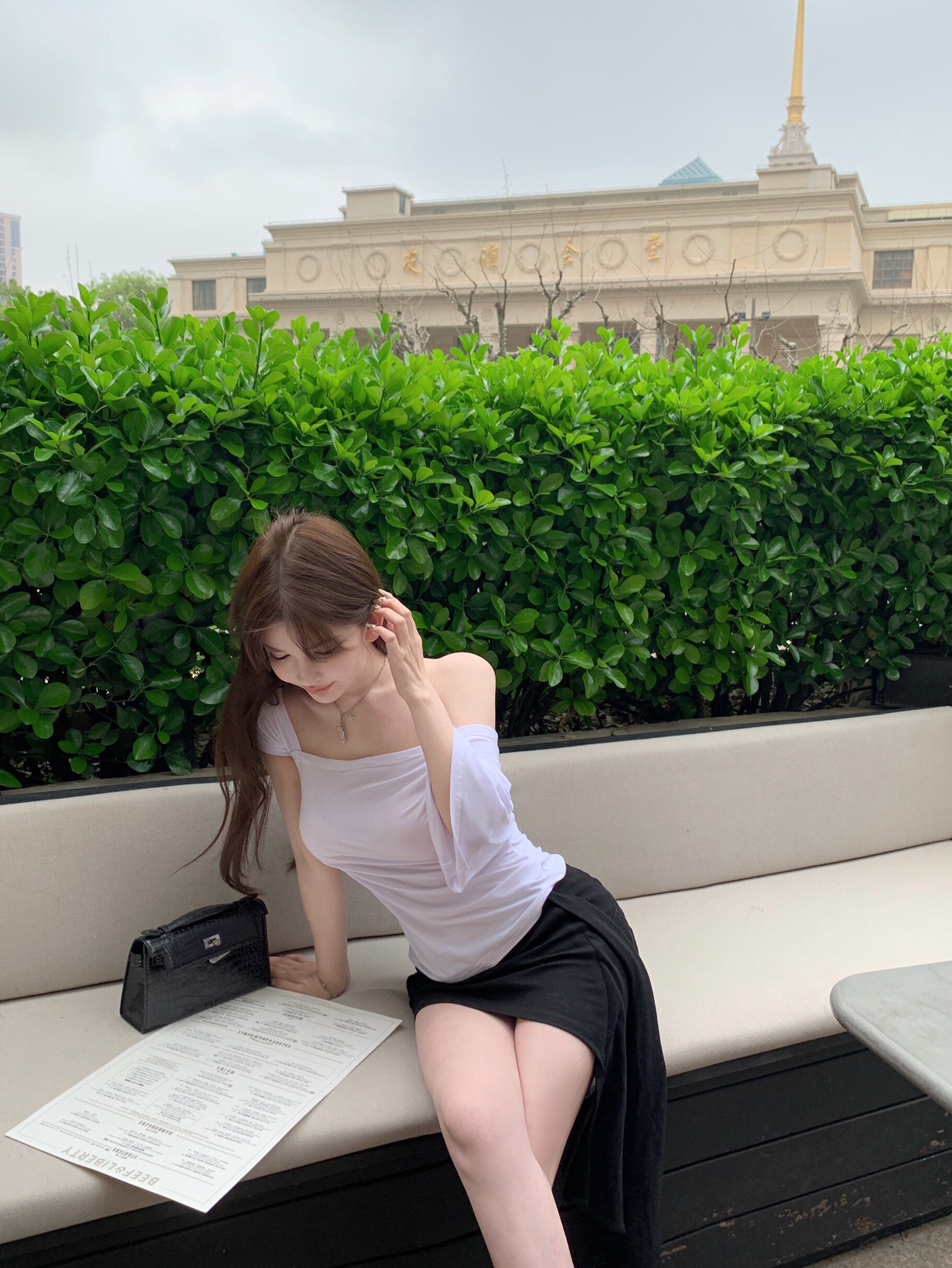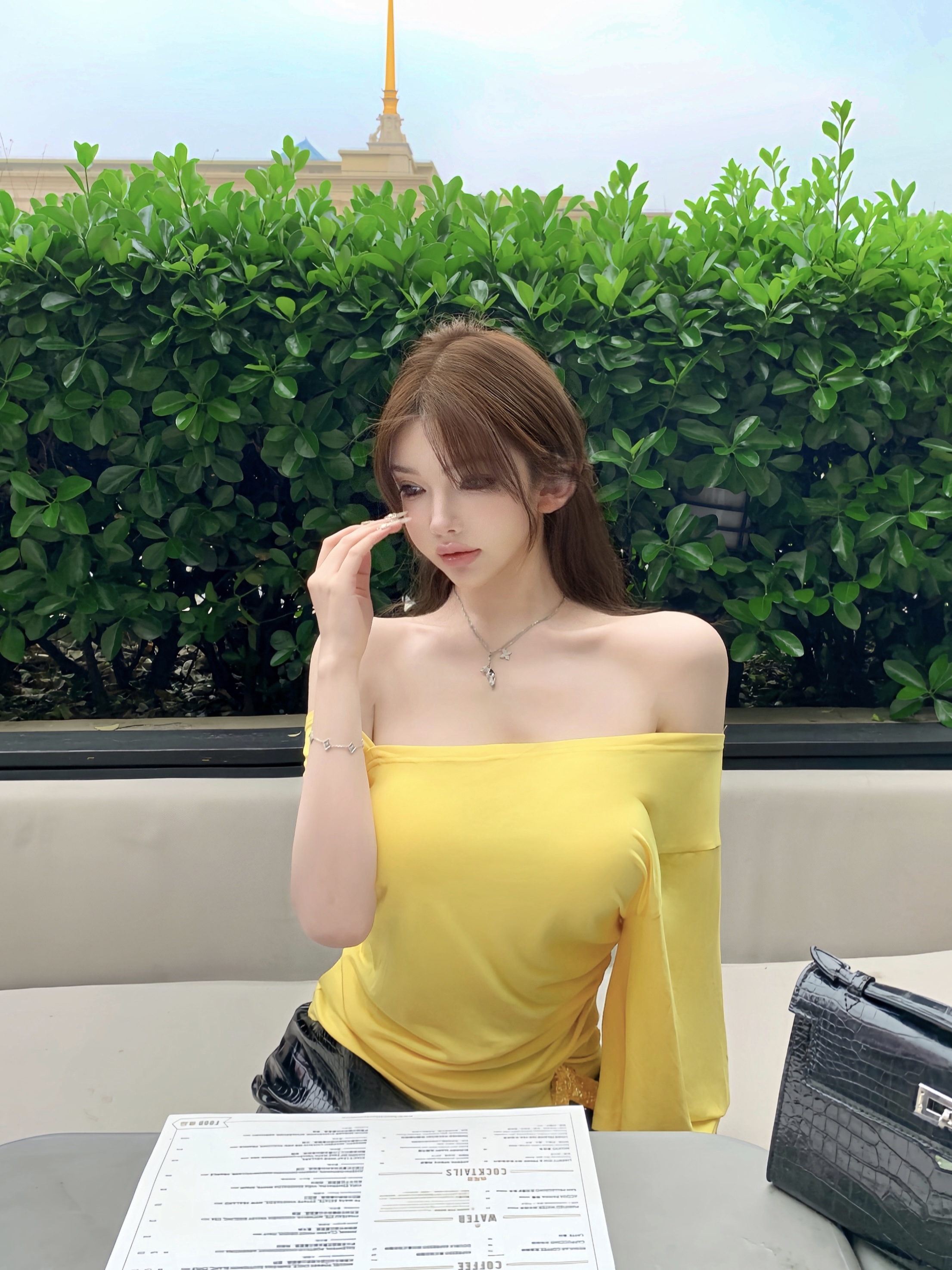 Off Shoulderblack, White, Yellow Casual Basic Relaxation, Y2k – Y2k Outfits