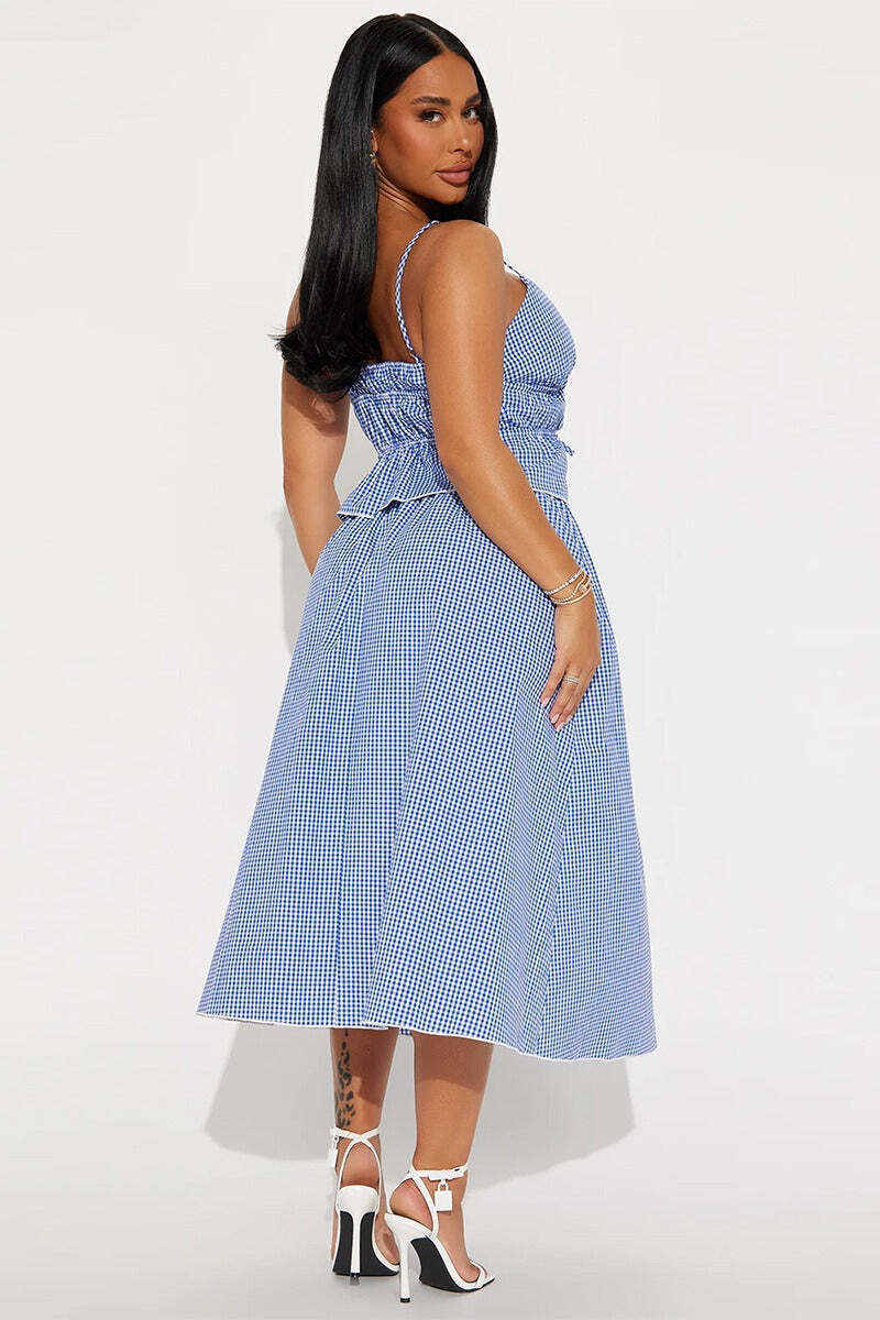 Dresses, two piece sets and bodysuits. Base your size on whichever is larger — bust or hips.