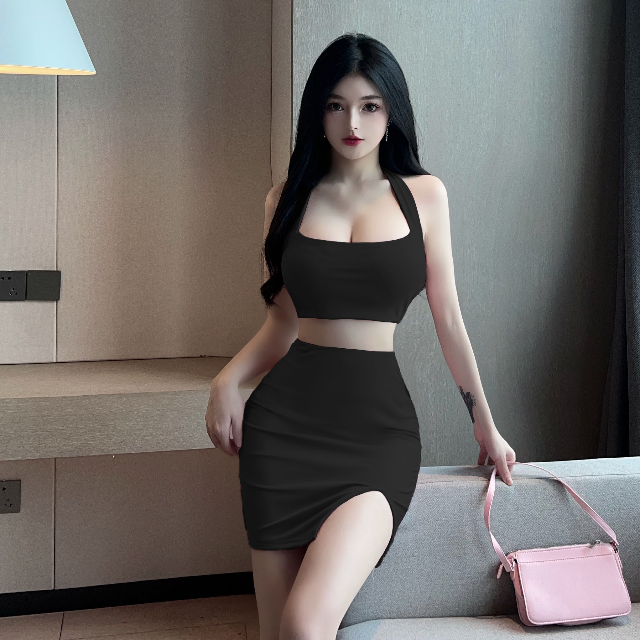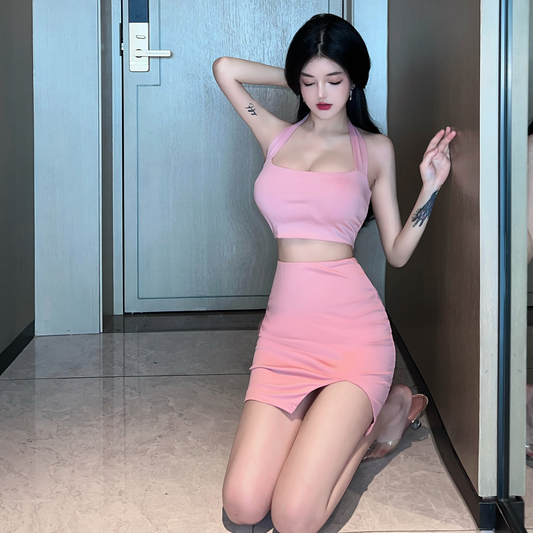Be the first to review “Backless Pink Bodycon Mini Skirt Set Tight Fitting Camisole Summer Two Outfit” Cancel reply