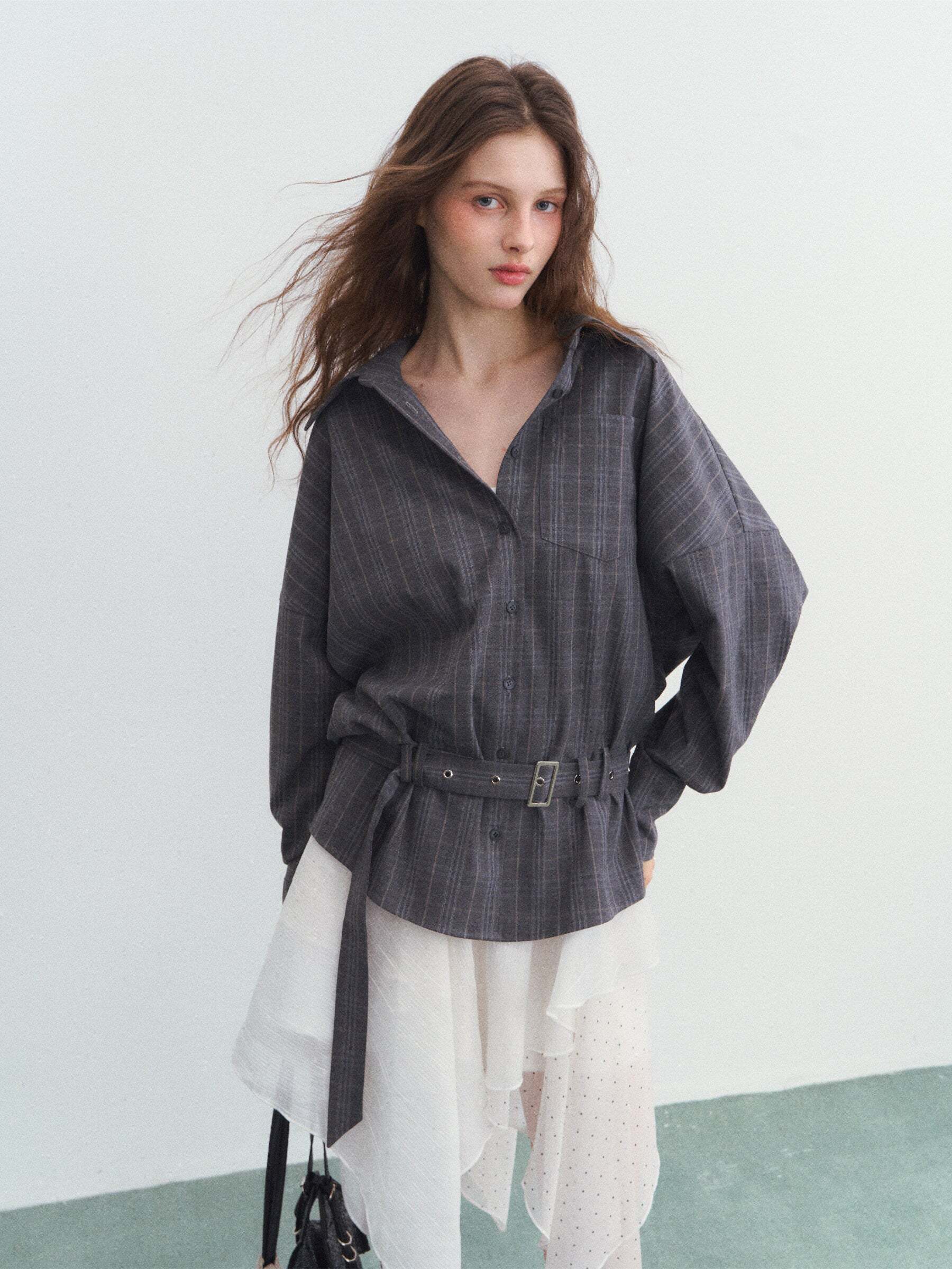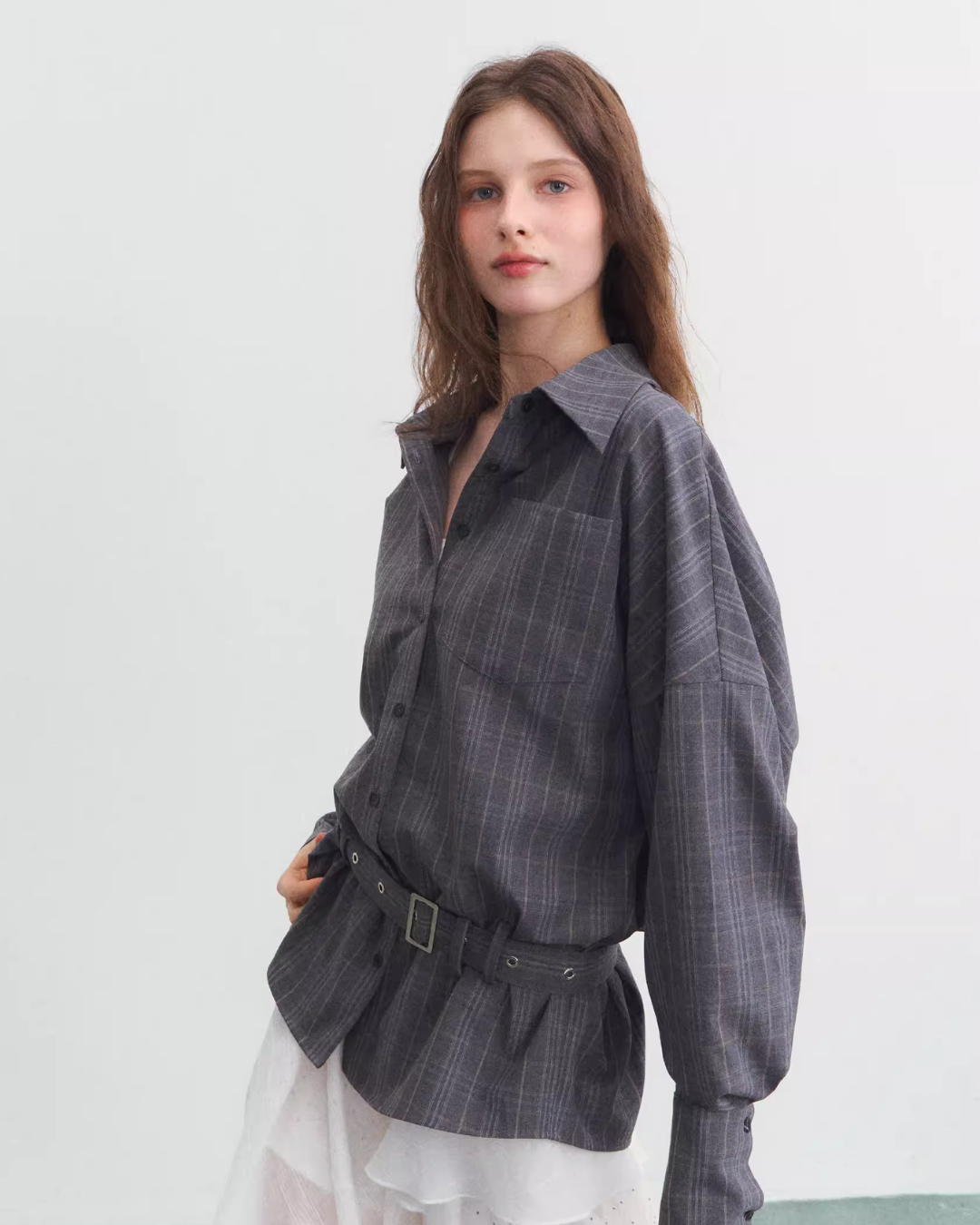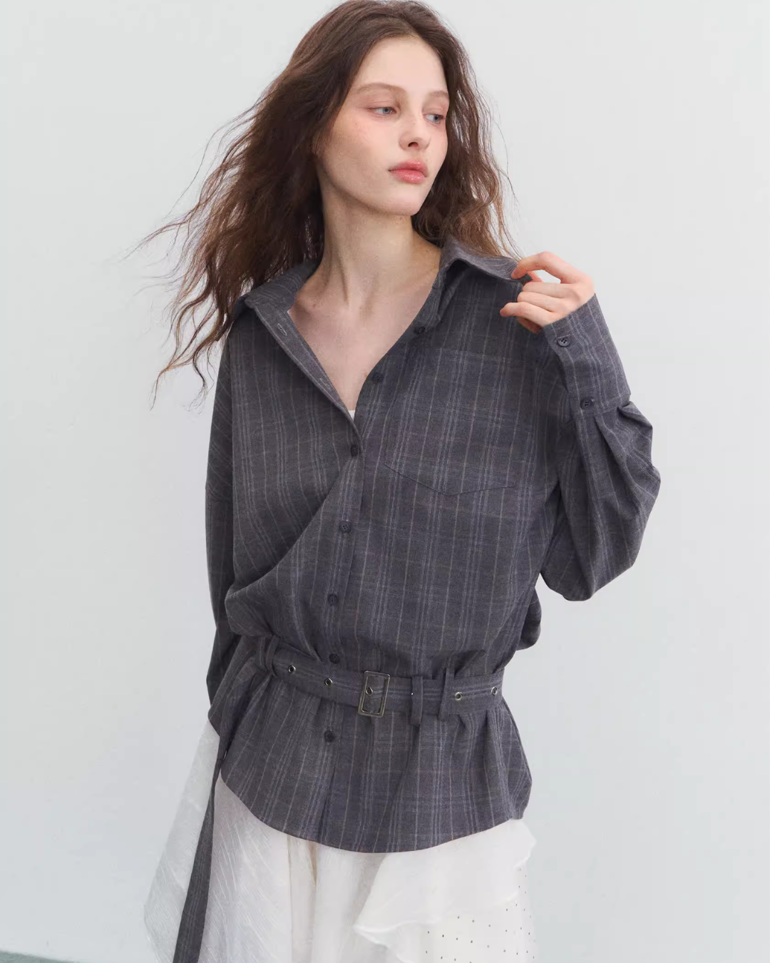 Shirt with a belt design that is full of seasonal mood and has long sleeves.