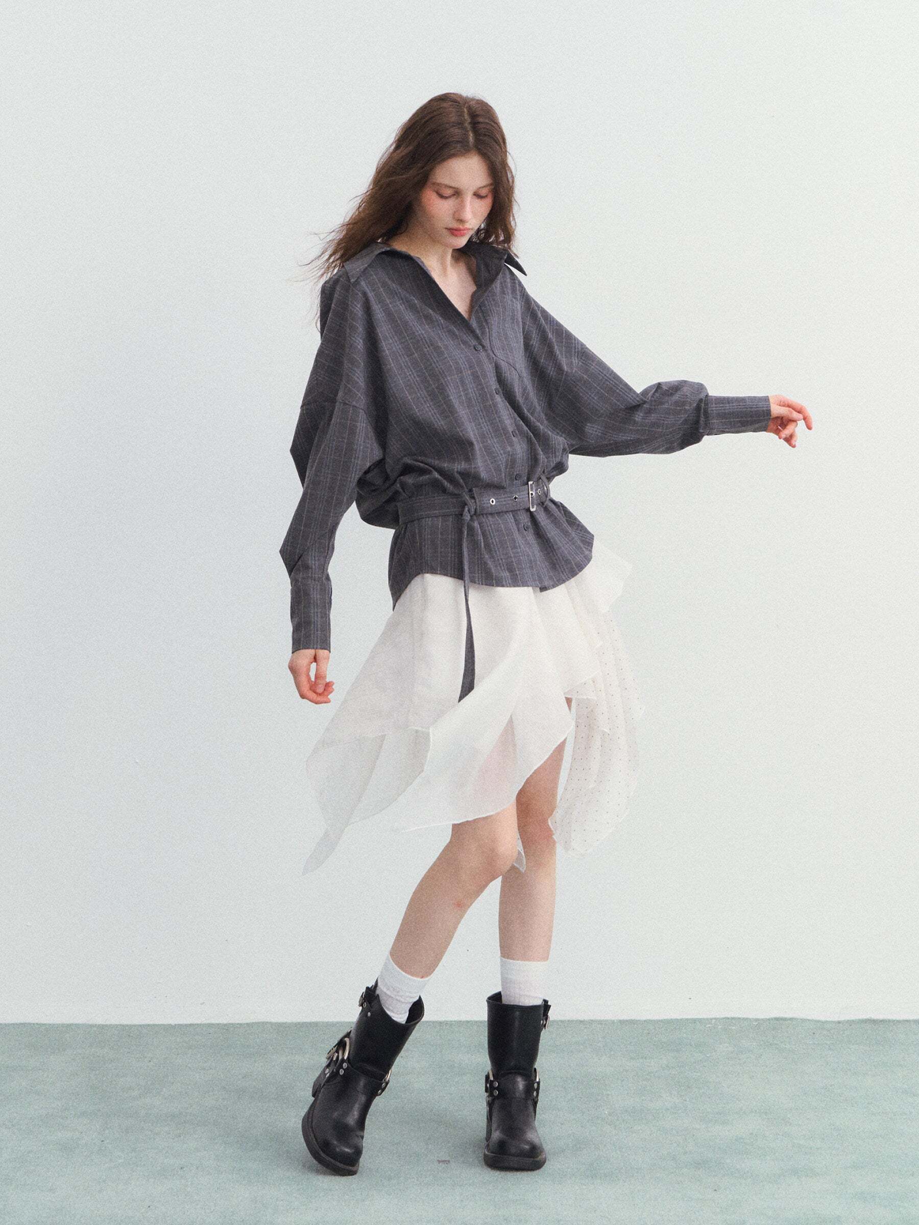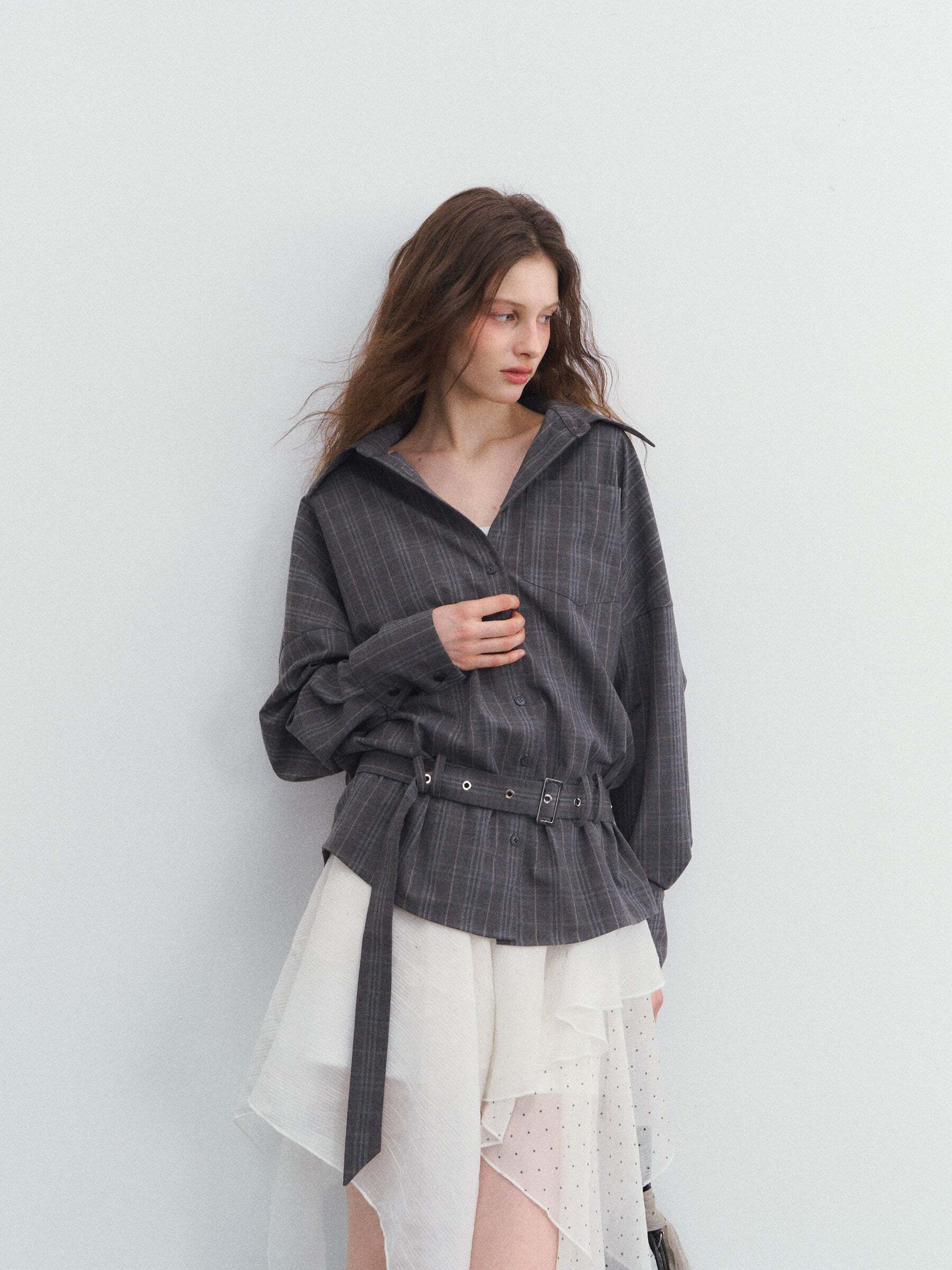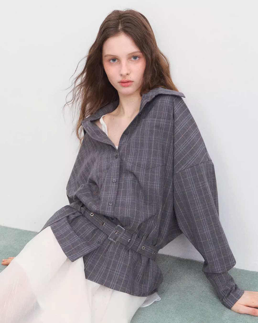Shirt with a belt design that is full of seasonal mood and has long sleeves.