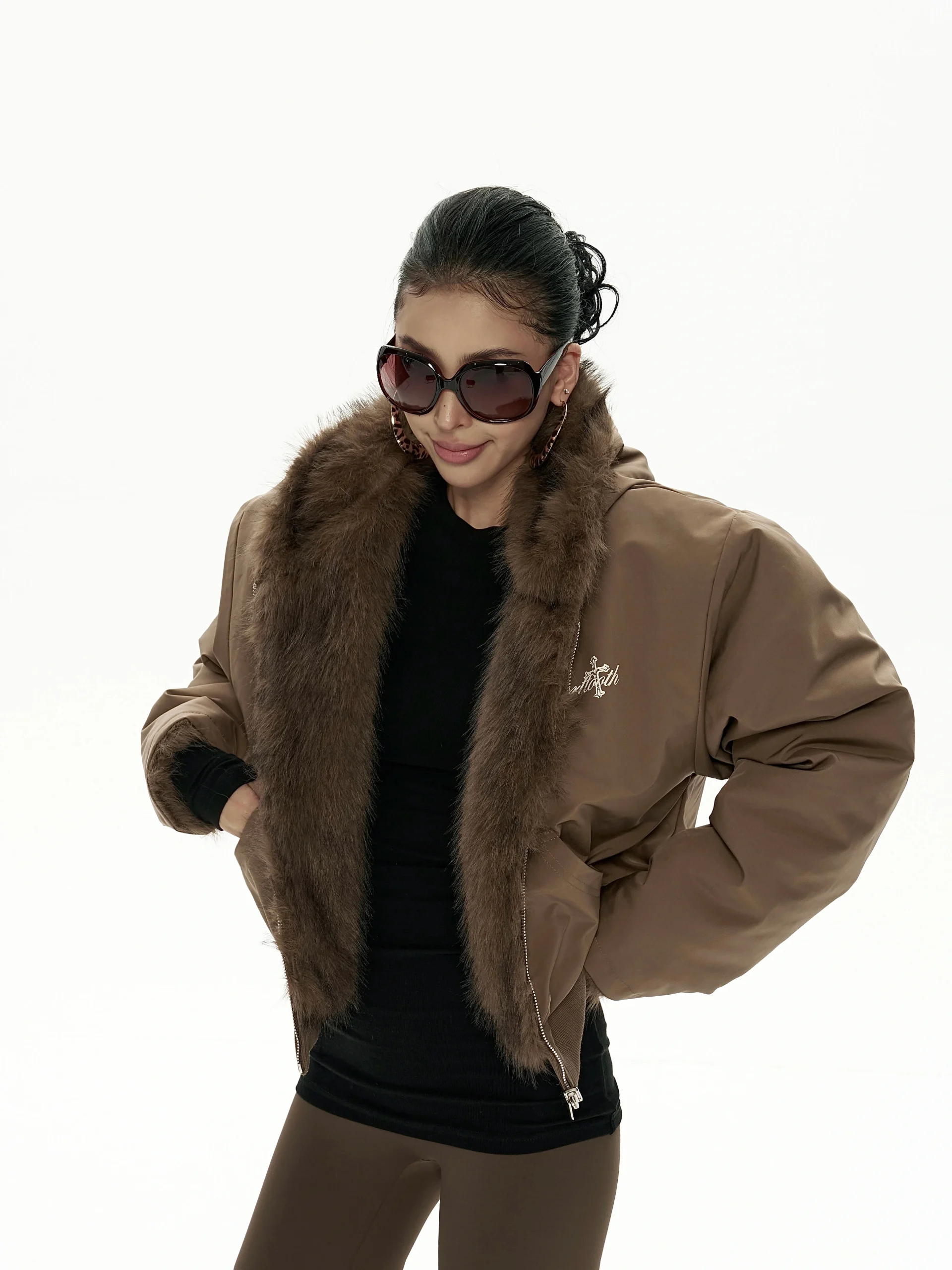 Blouson finished in a three-dimensional way with long pile eco-fur.