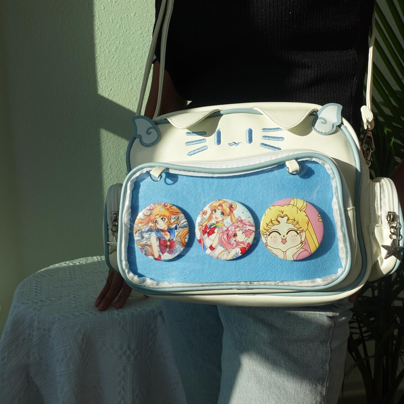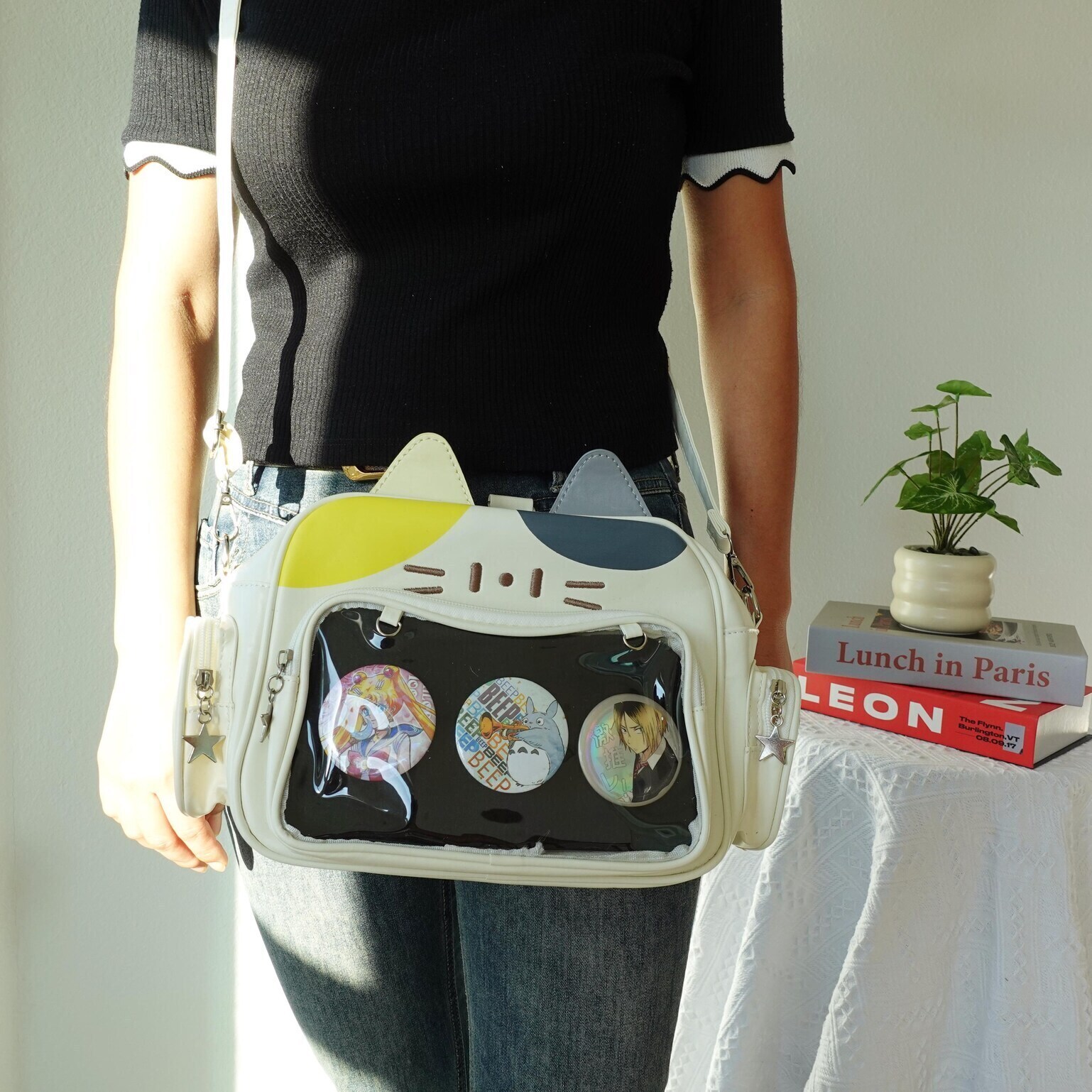 Kawaii Cat Ita Bag – Cute Crossbody & Pin Display Style