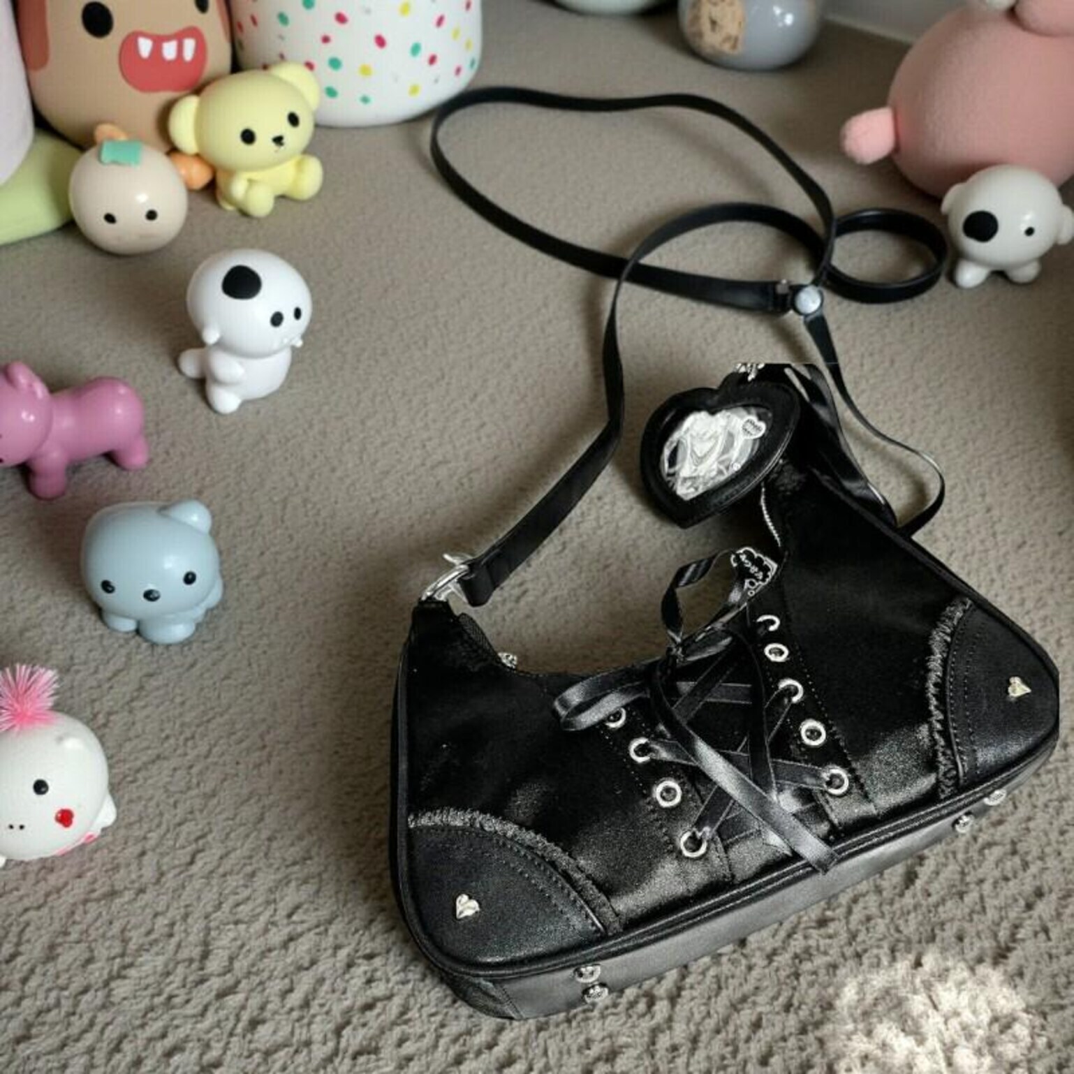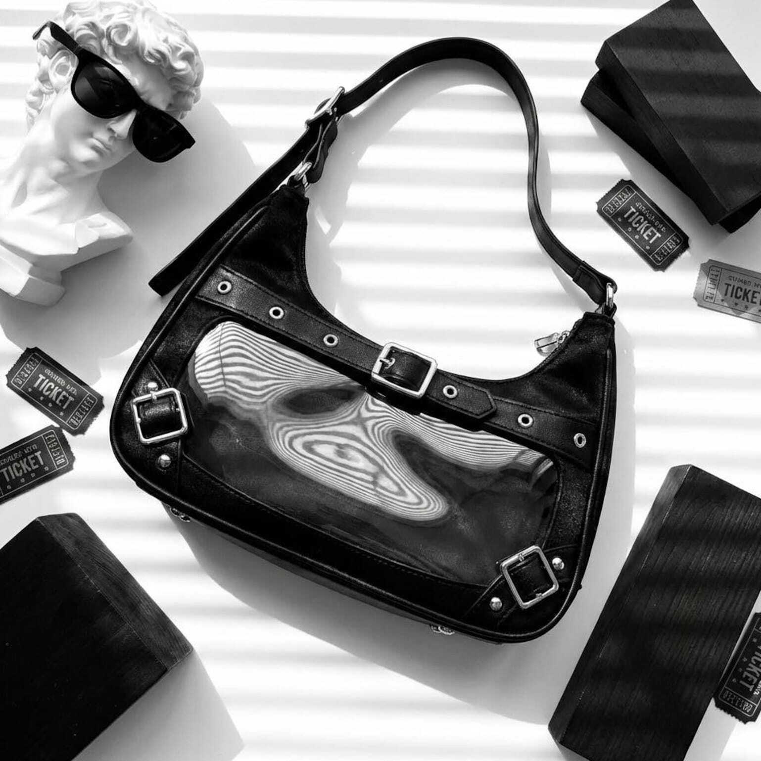 Black Kawaii Convertible Ita Bag for Pin Display combines everyday carry with a clear display area for pins, badges, charms, or character merch.