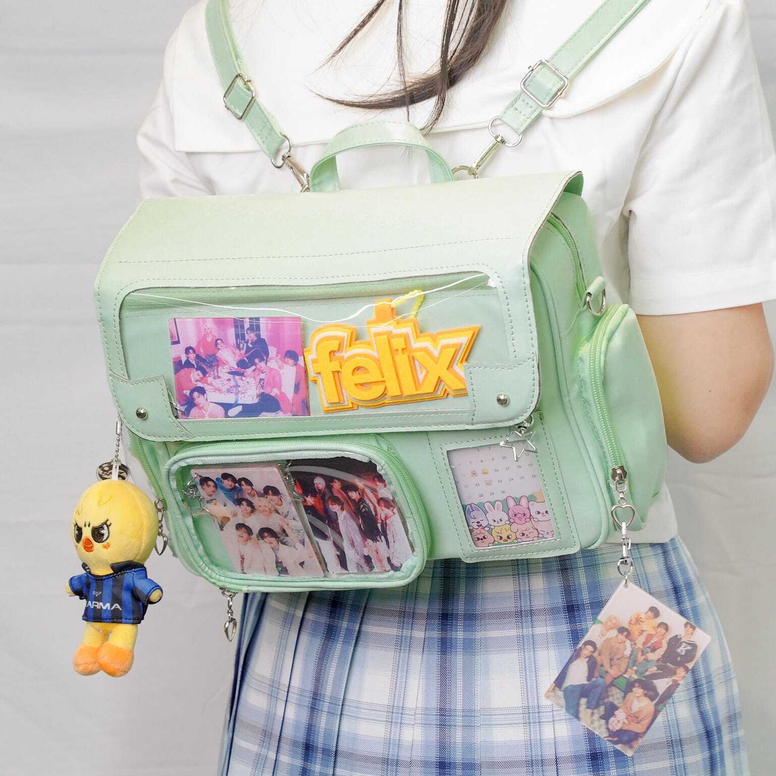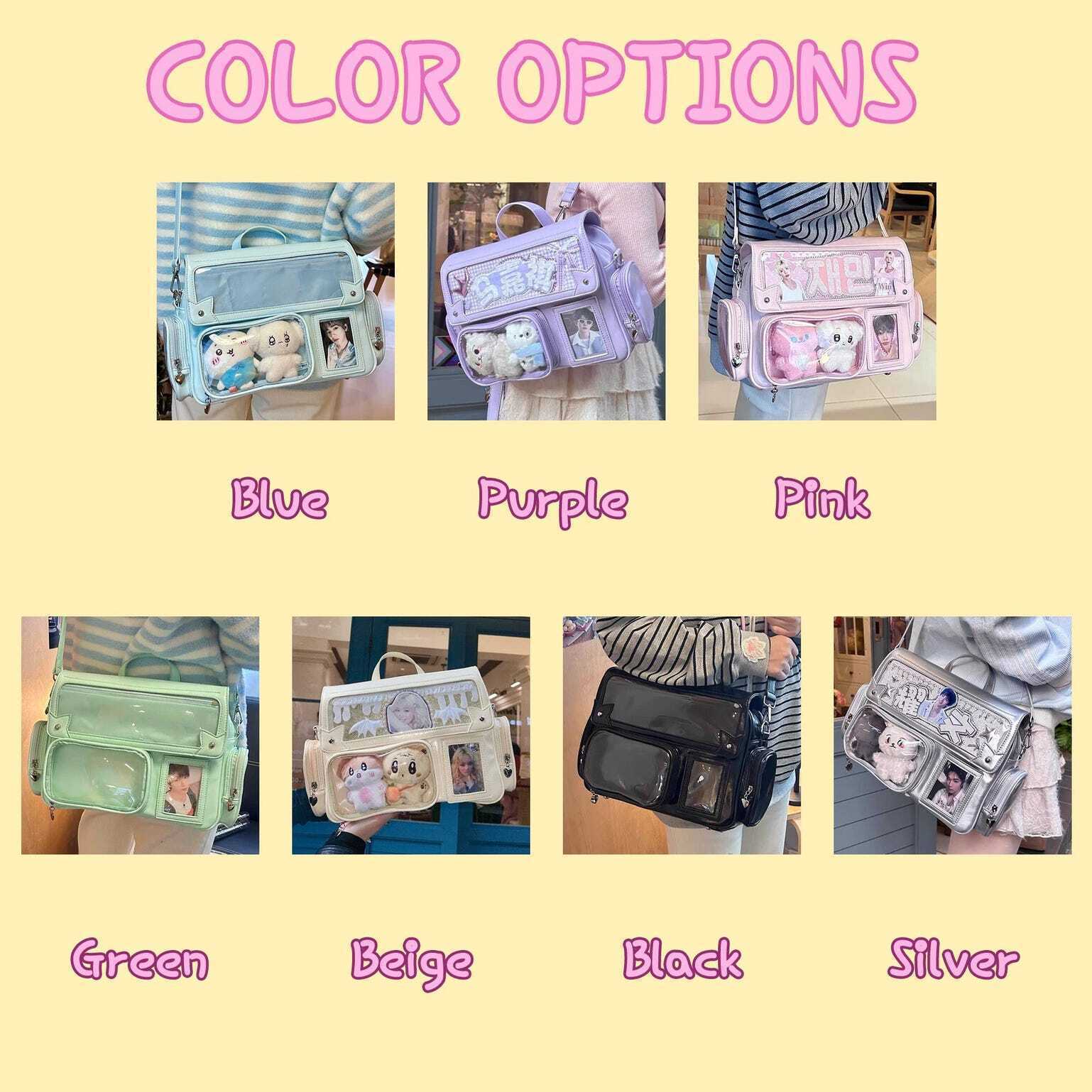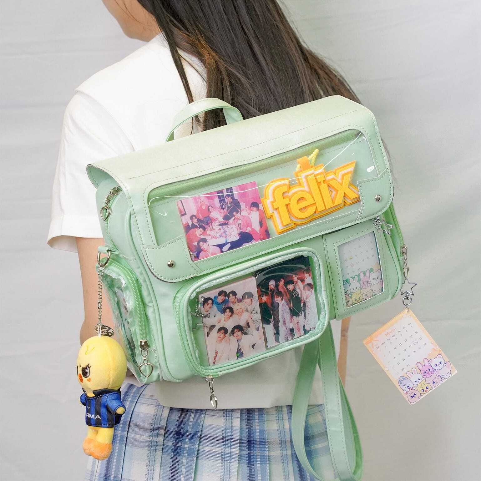 Black Kawaii Convertible Ita Bag with Clear Window for Photocards and Pins gives you a clear, secure way to display photocards, pins, and small accessories while carrying daily essentials.