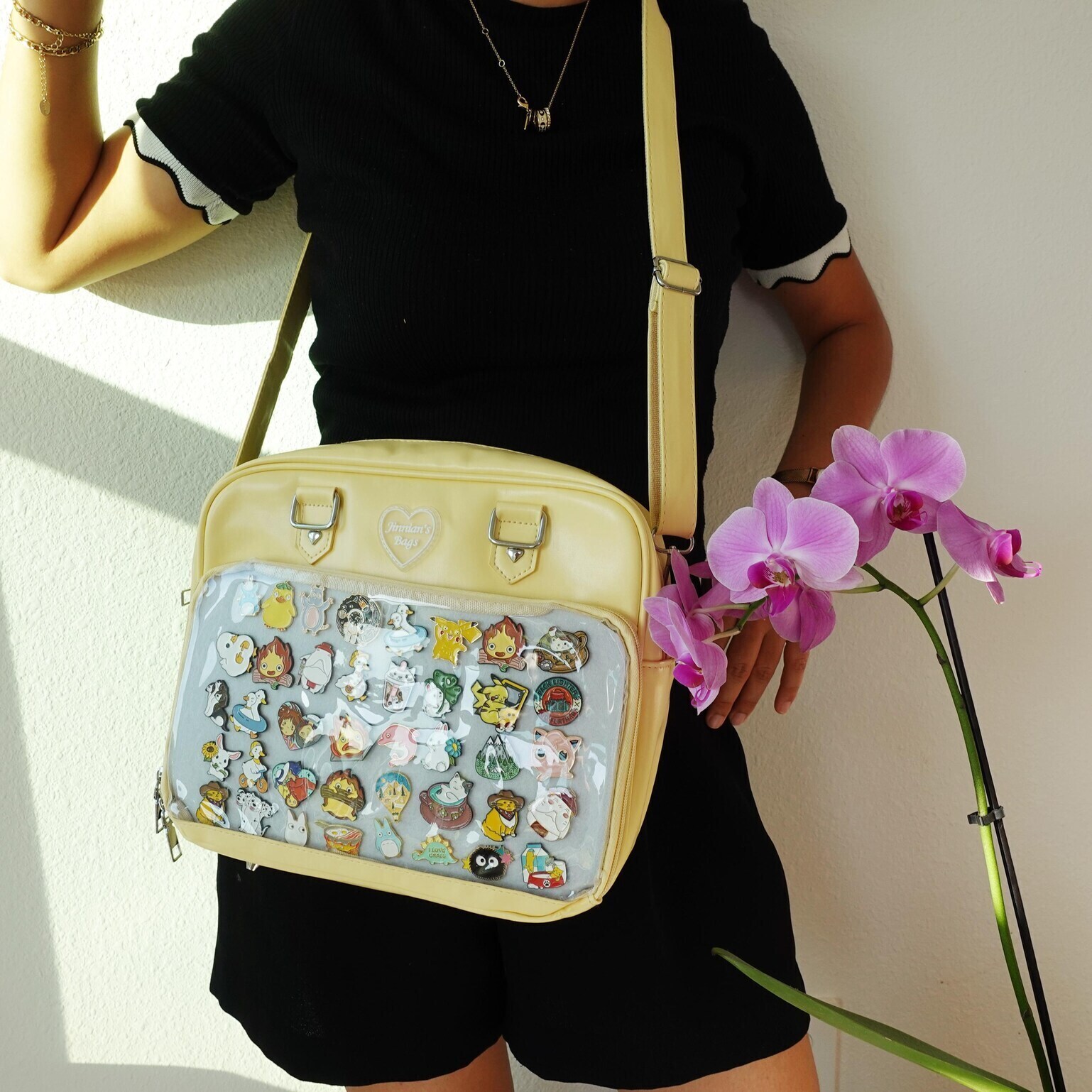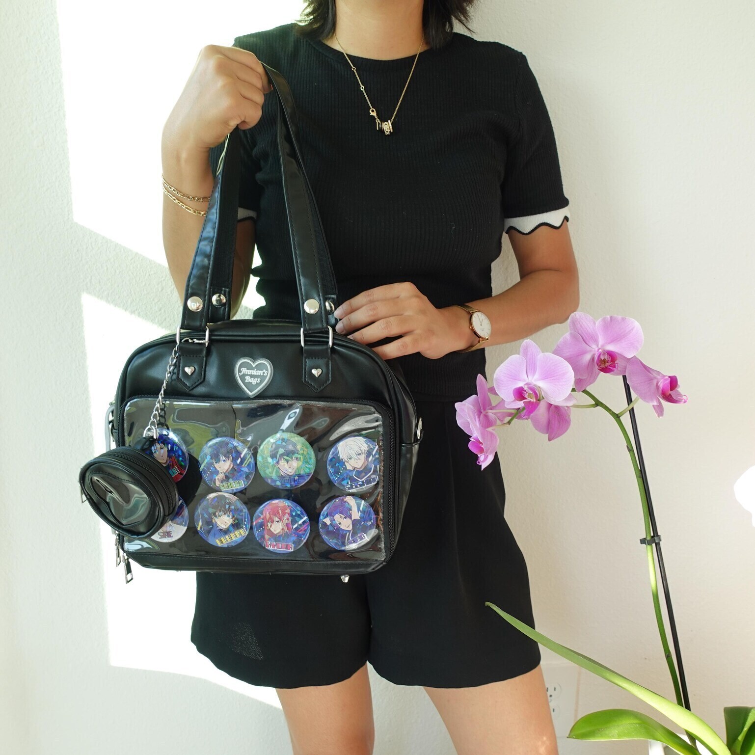 Black Kawaii Convertible Ita Bag with Clear Window for Pin Display