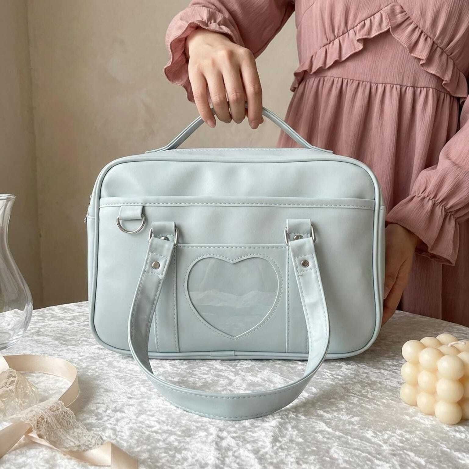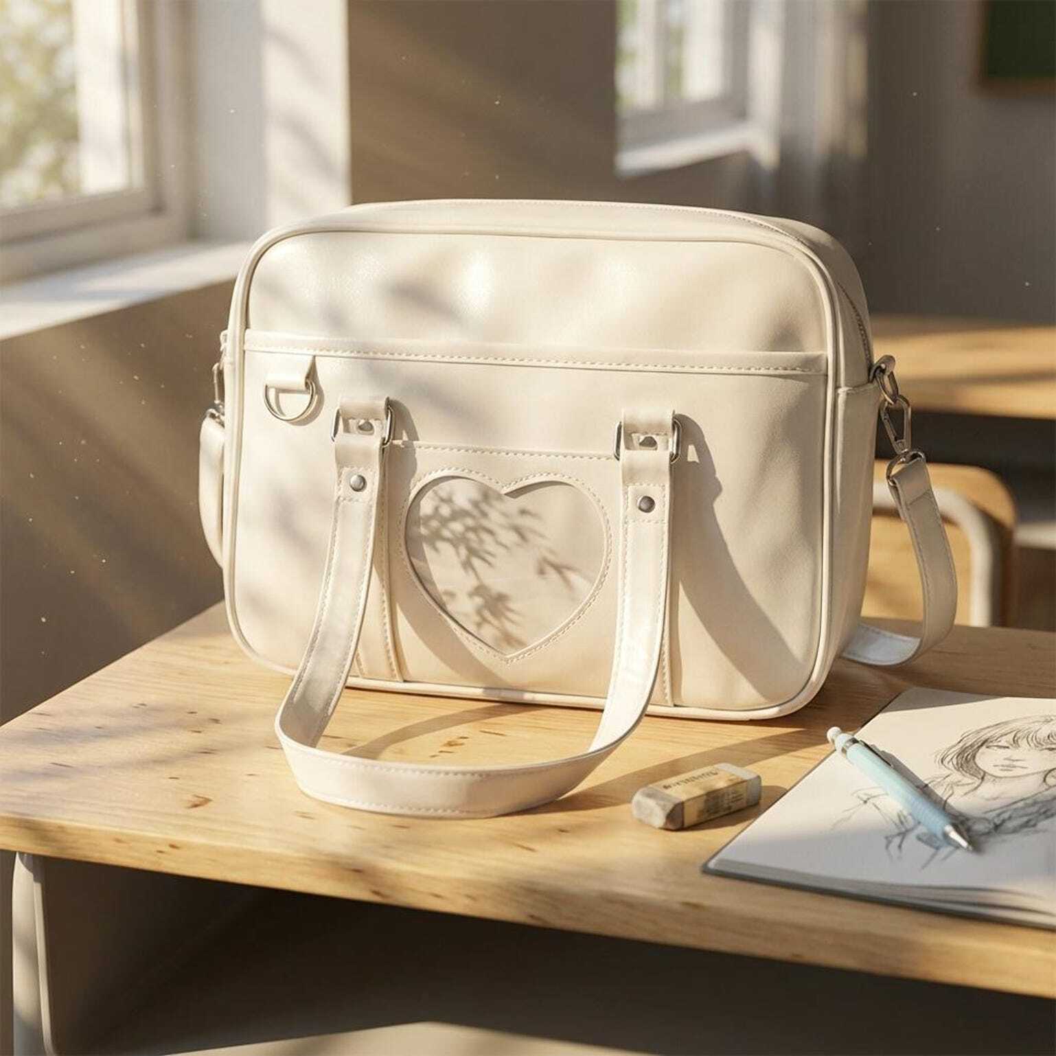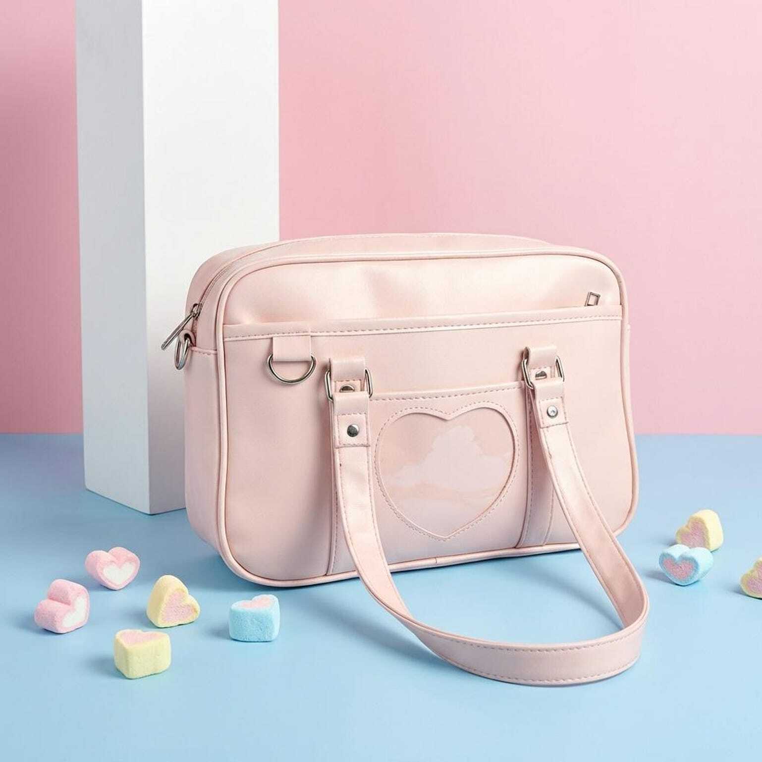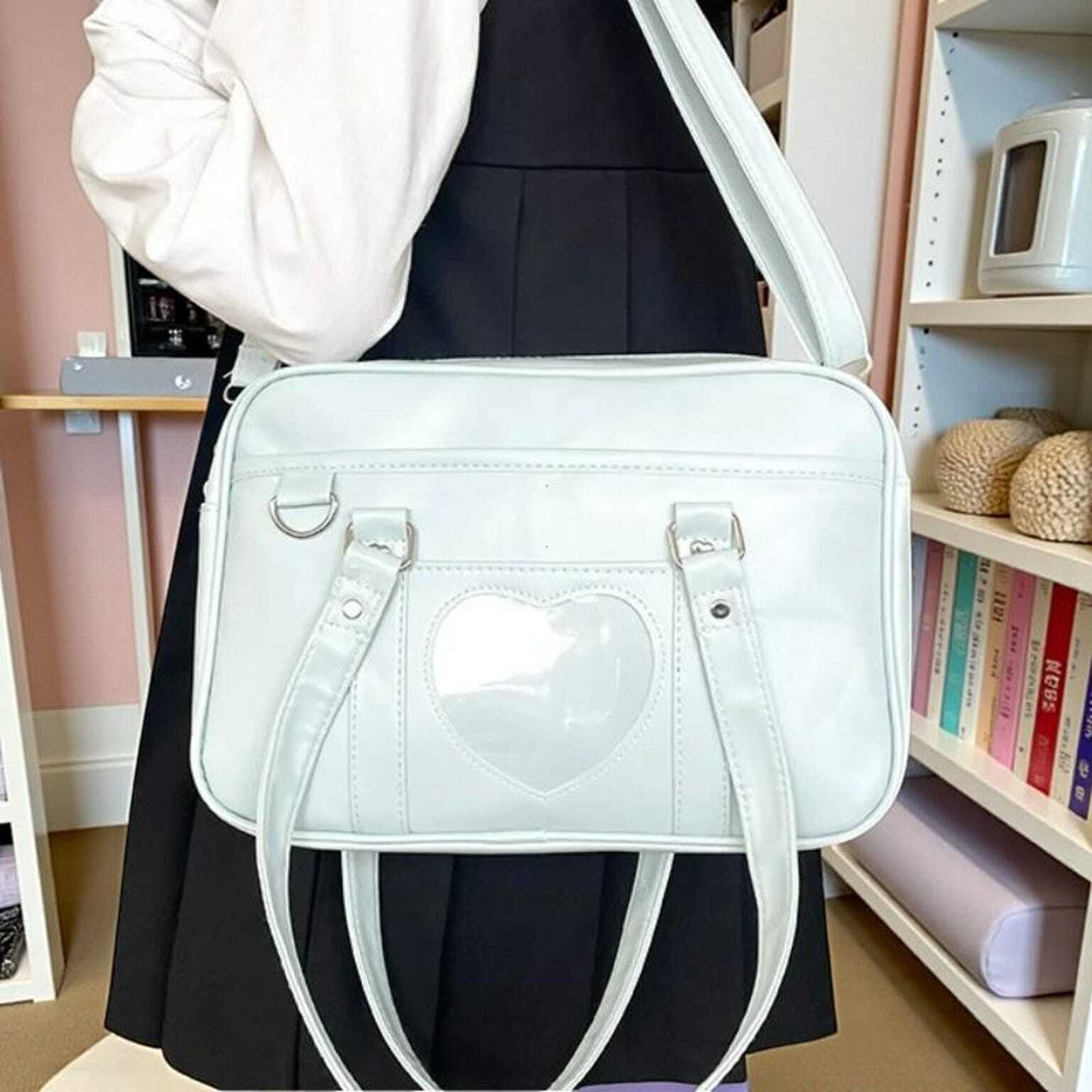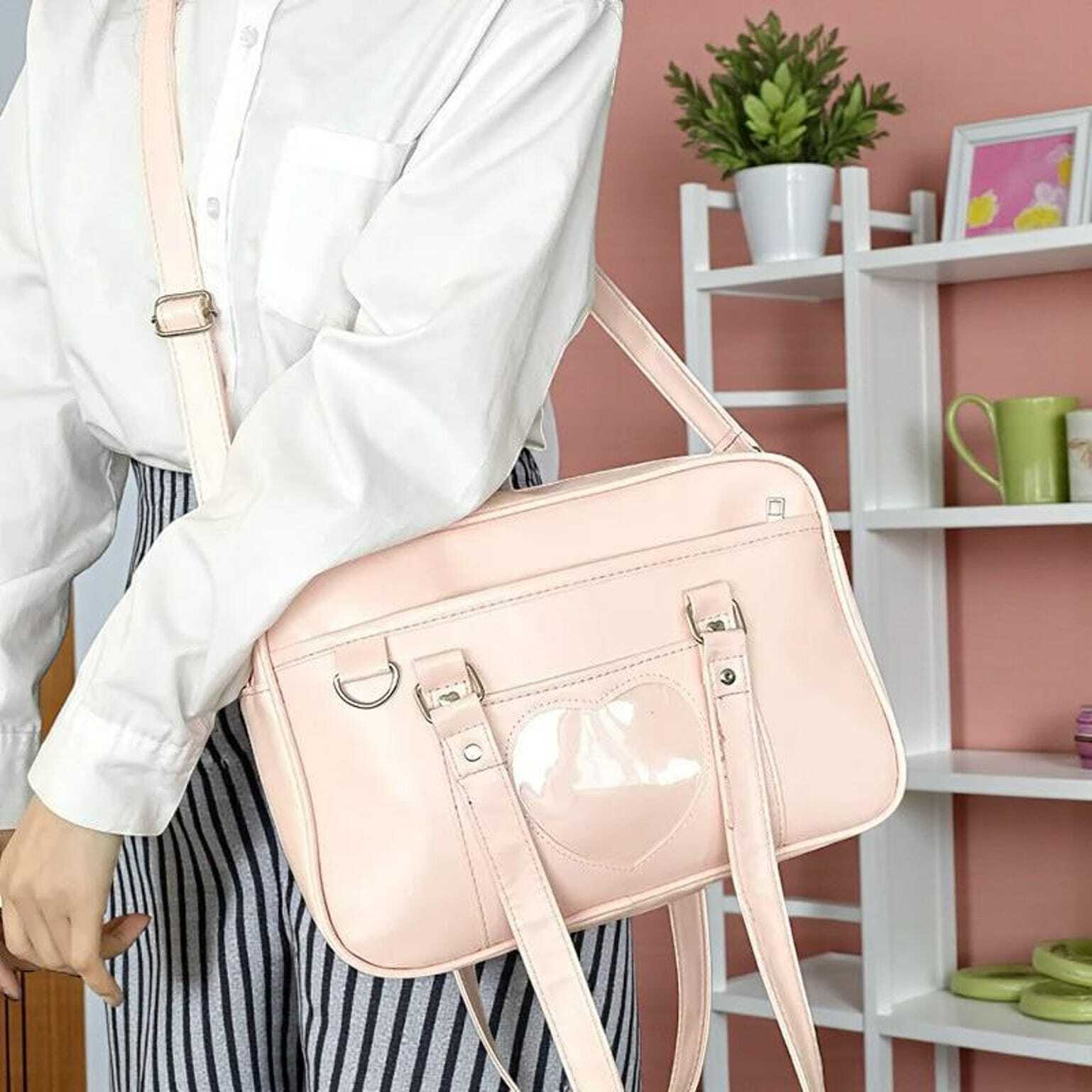 Black Kawaii Convertible Ita Bag with Clear Window for Pin Display