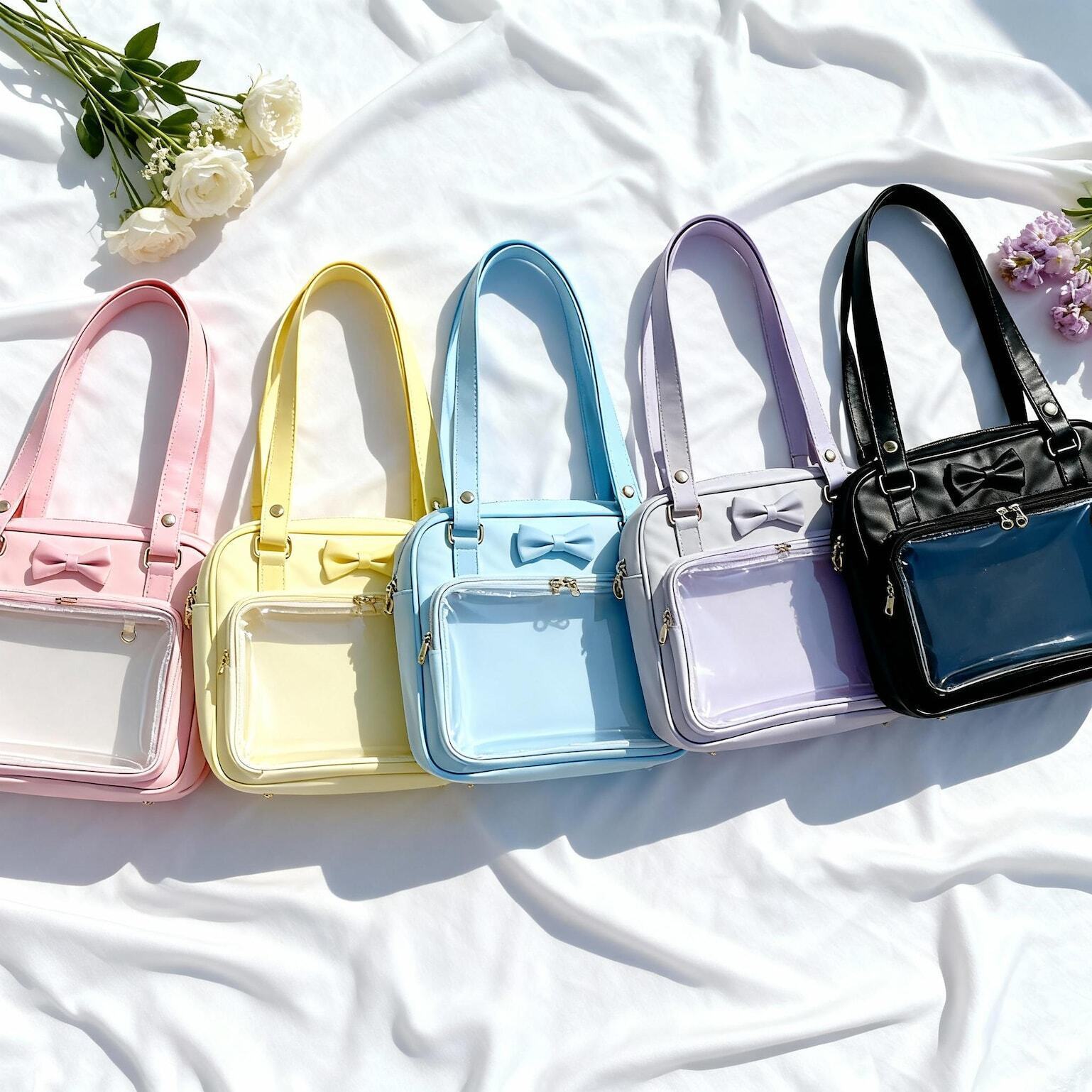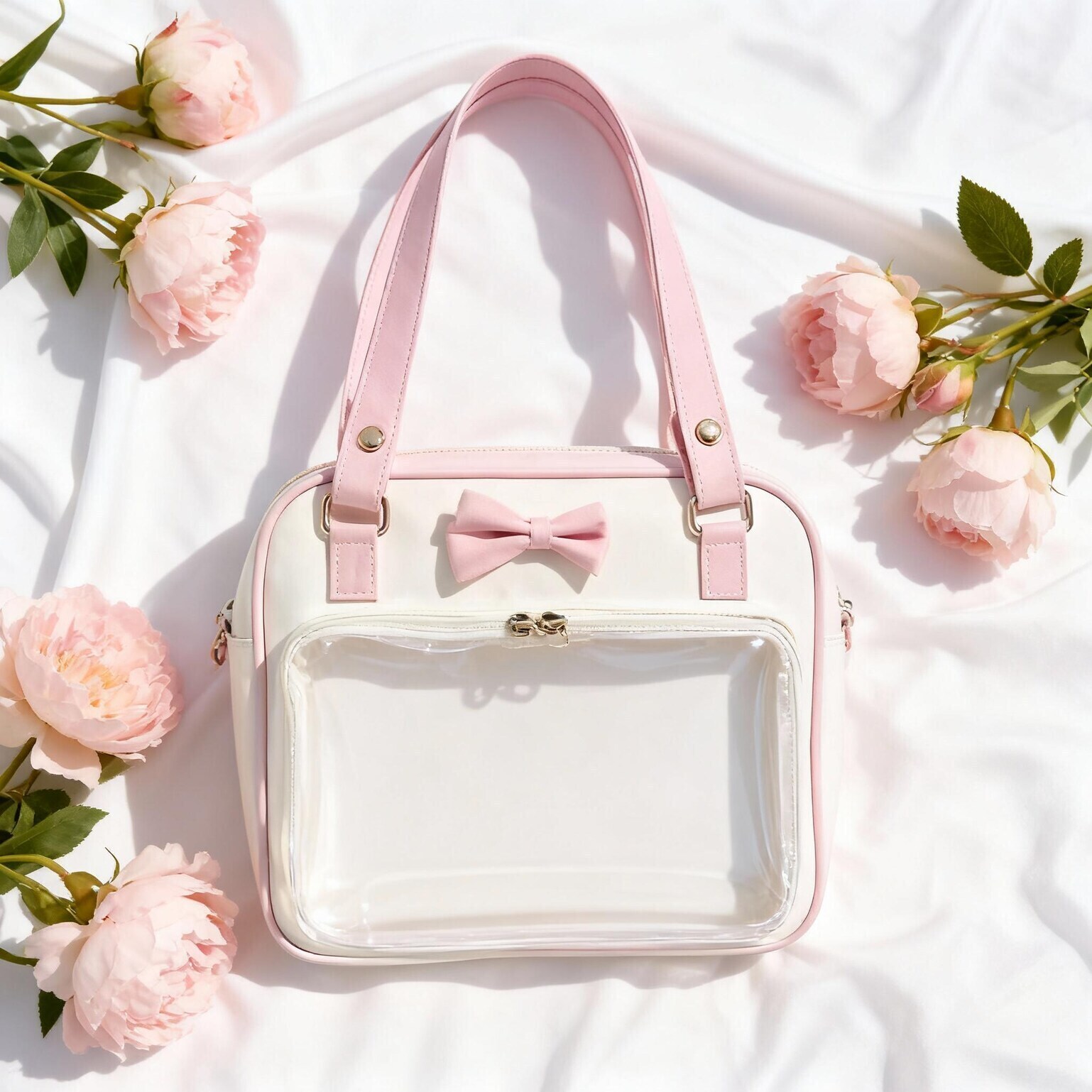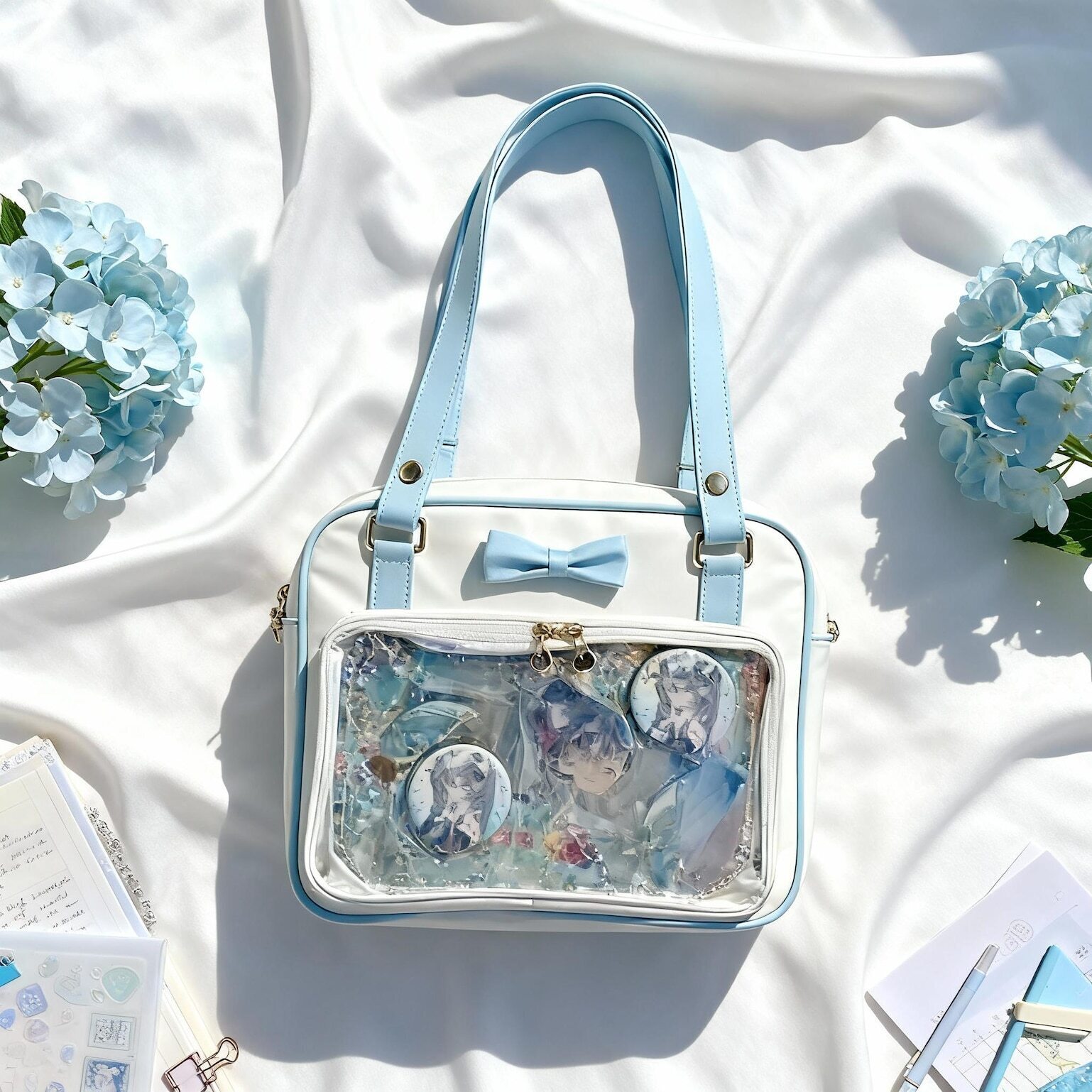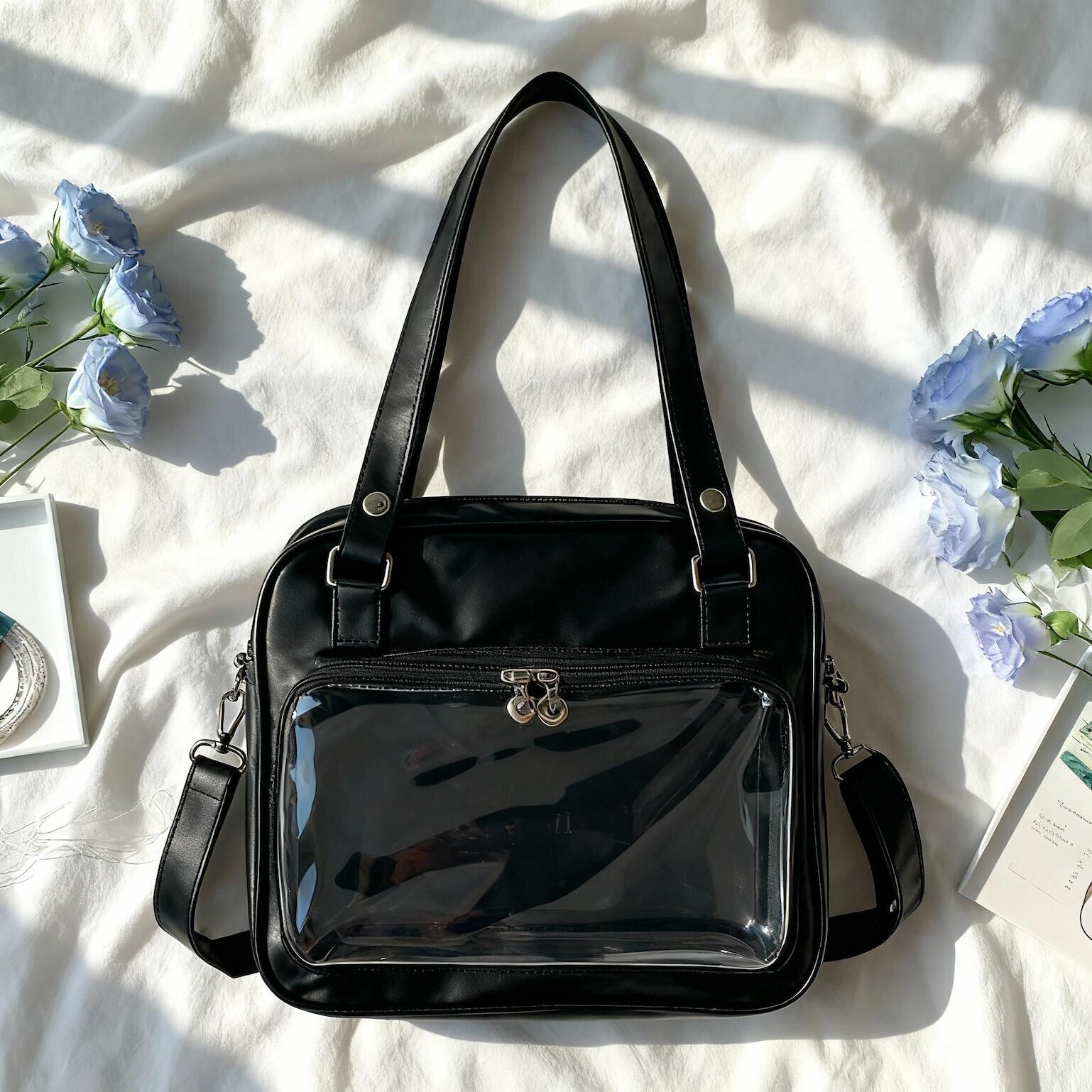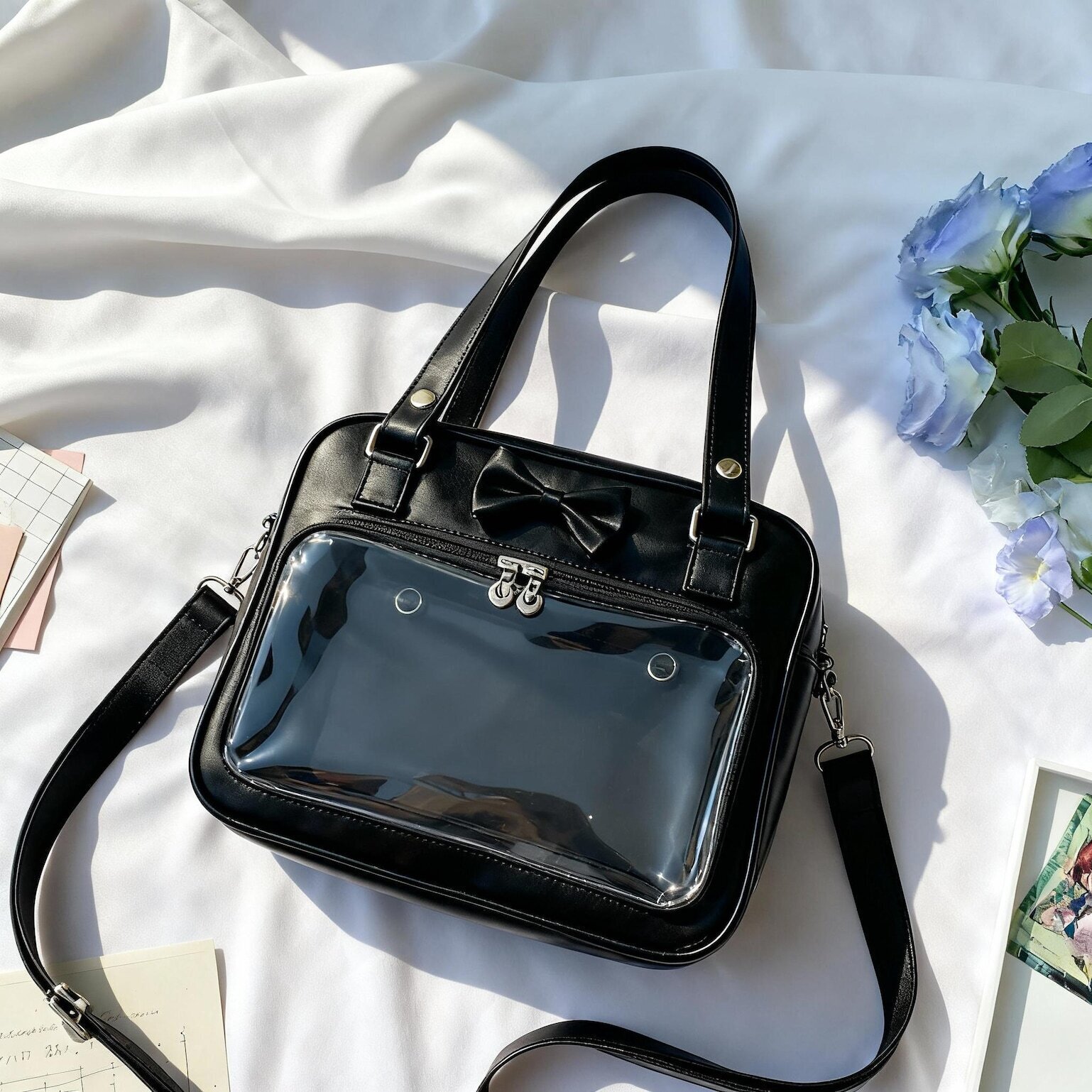 Black Kawaii Ita Handbag for Pin Display combines everyday carry with a clear display area for pins, badges, charms, or character merch.