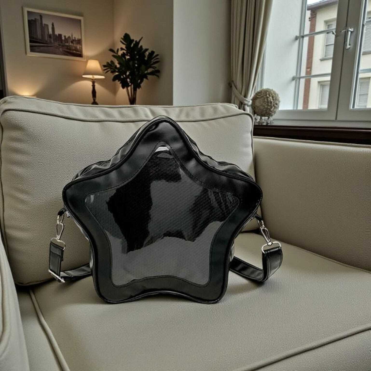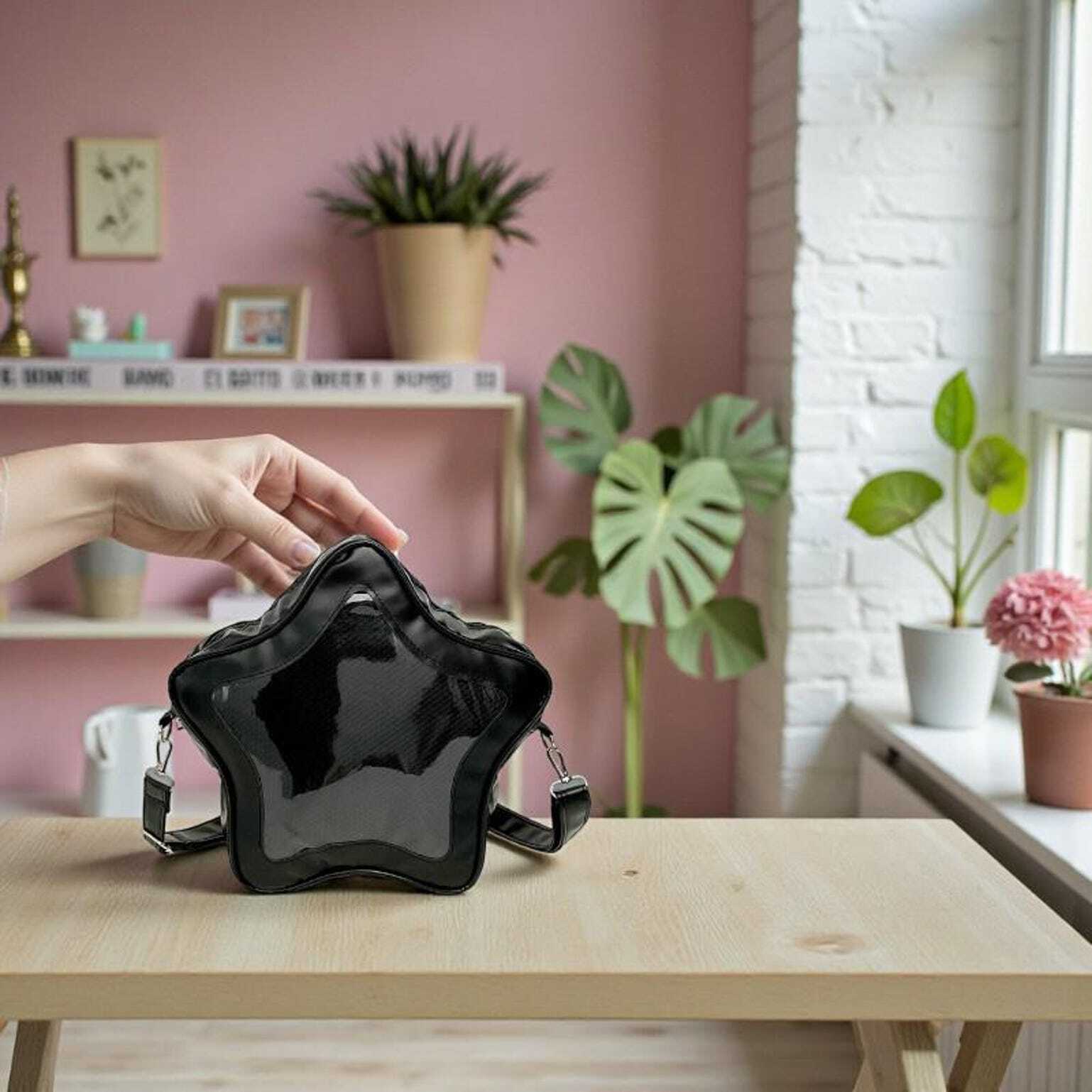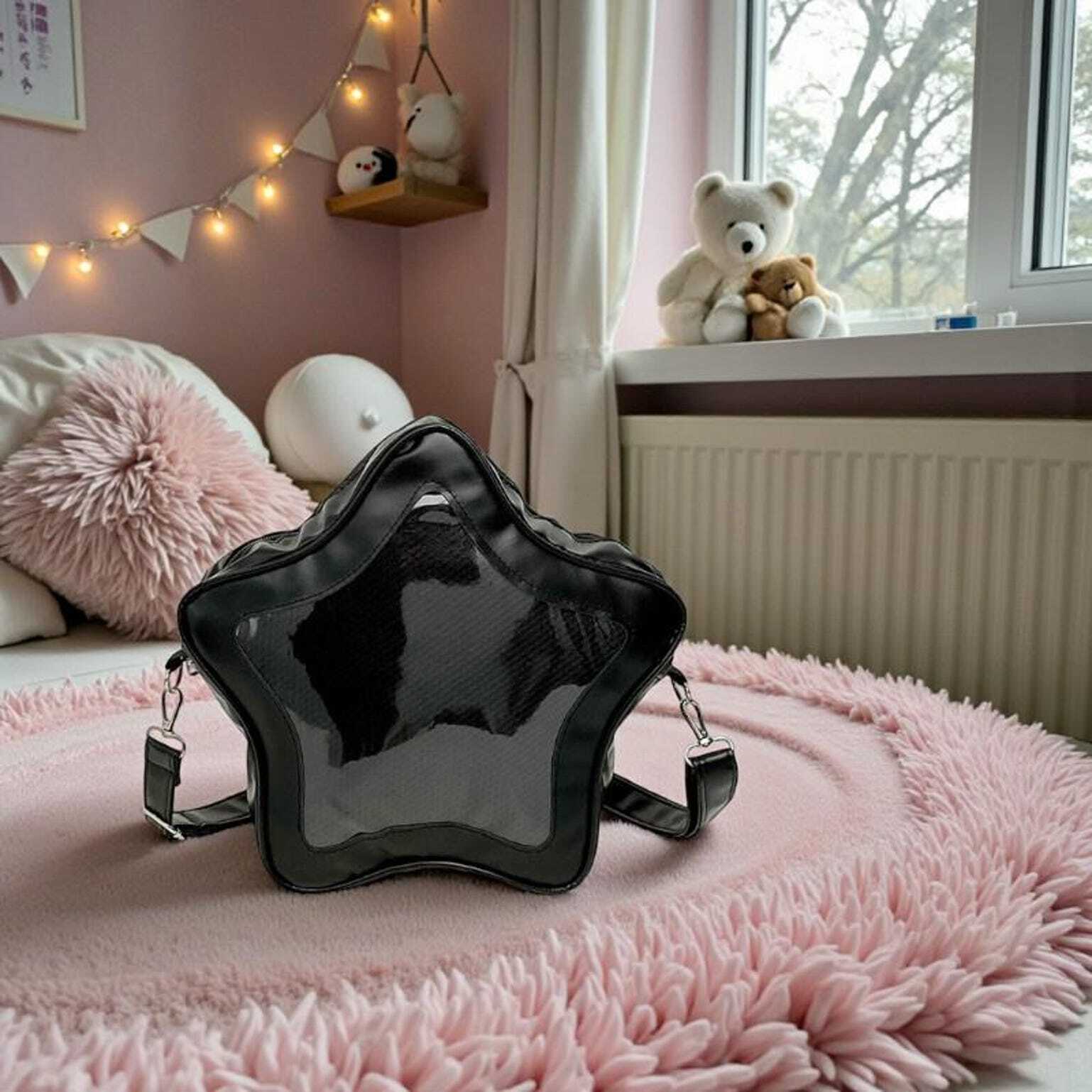 Black Kawaii Star Convertible Ita Bag with Clear Window for Pin Display