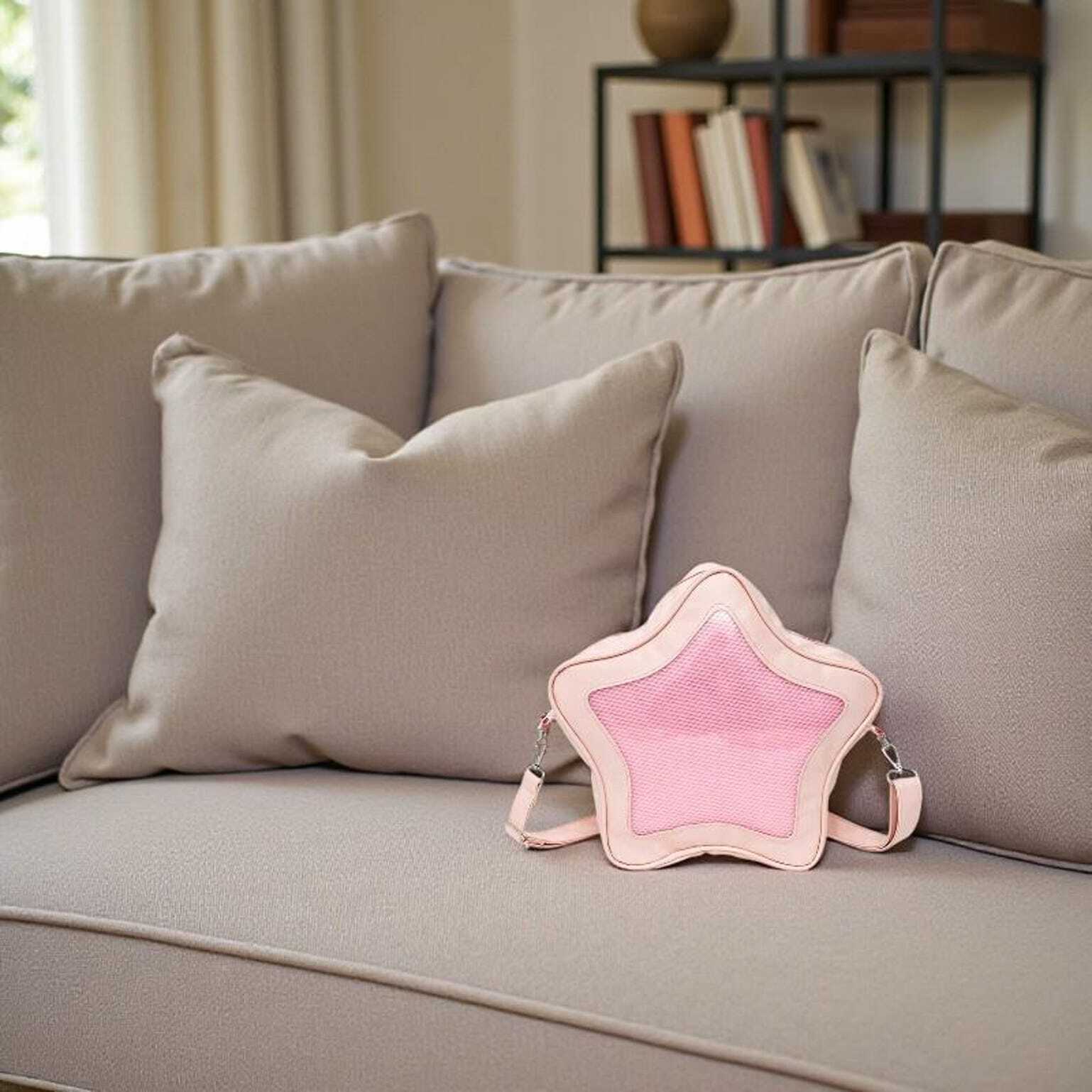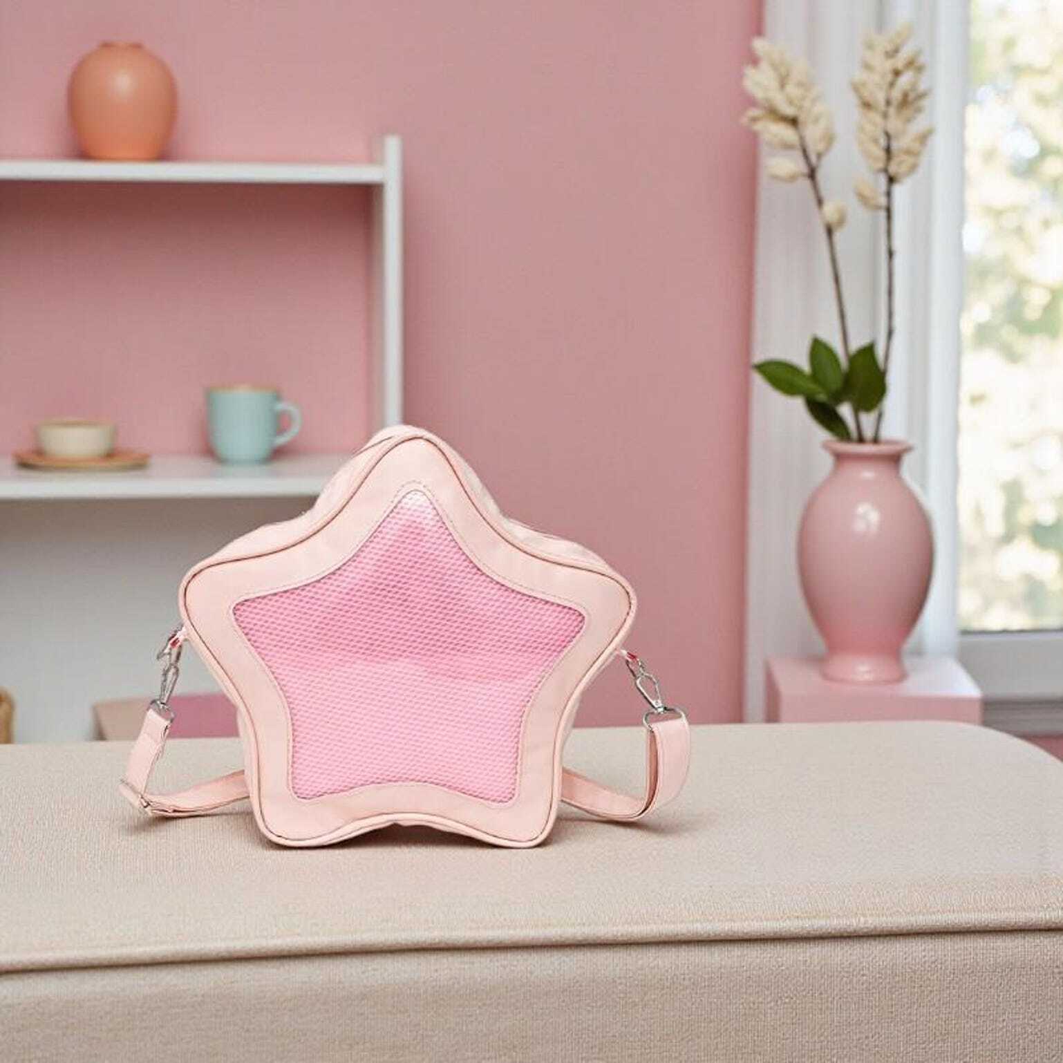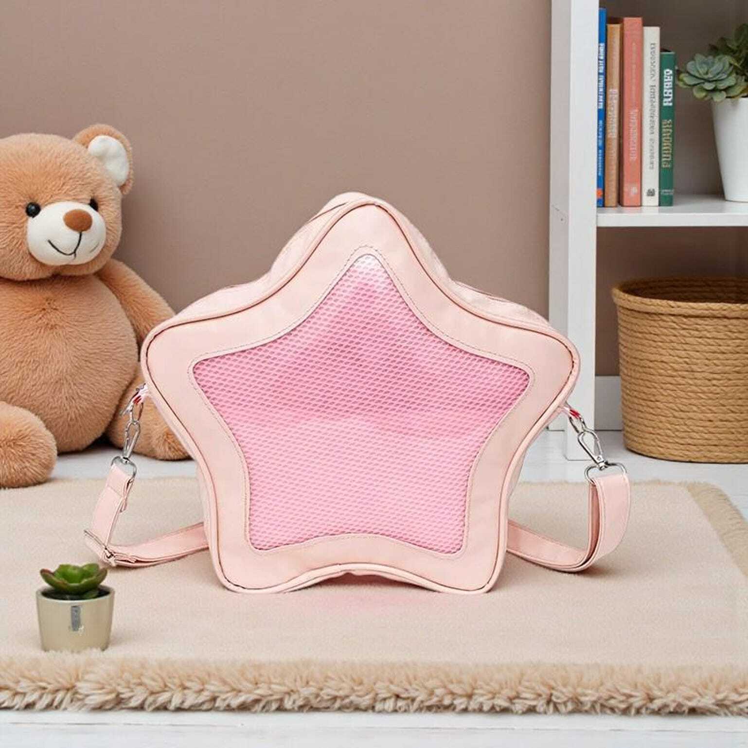 Black Kawaii Star Convertible Ita Bag with Clear Window for Pin Display