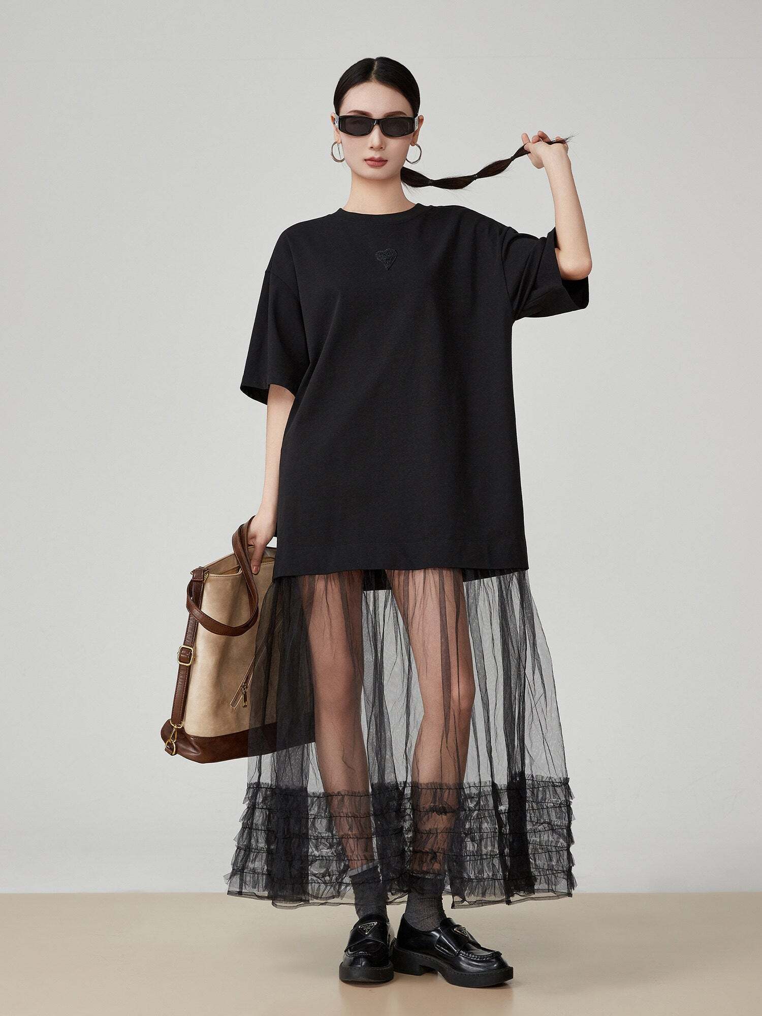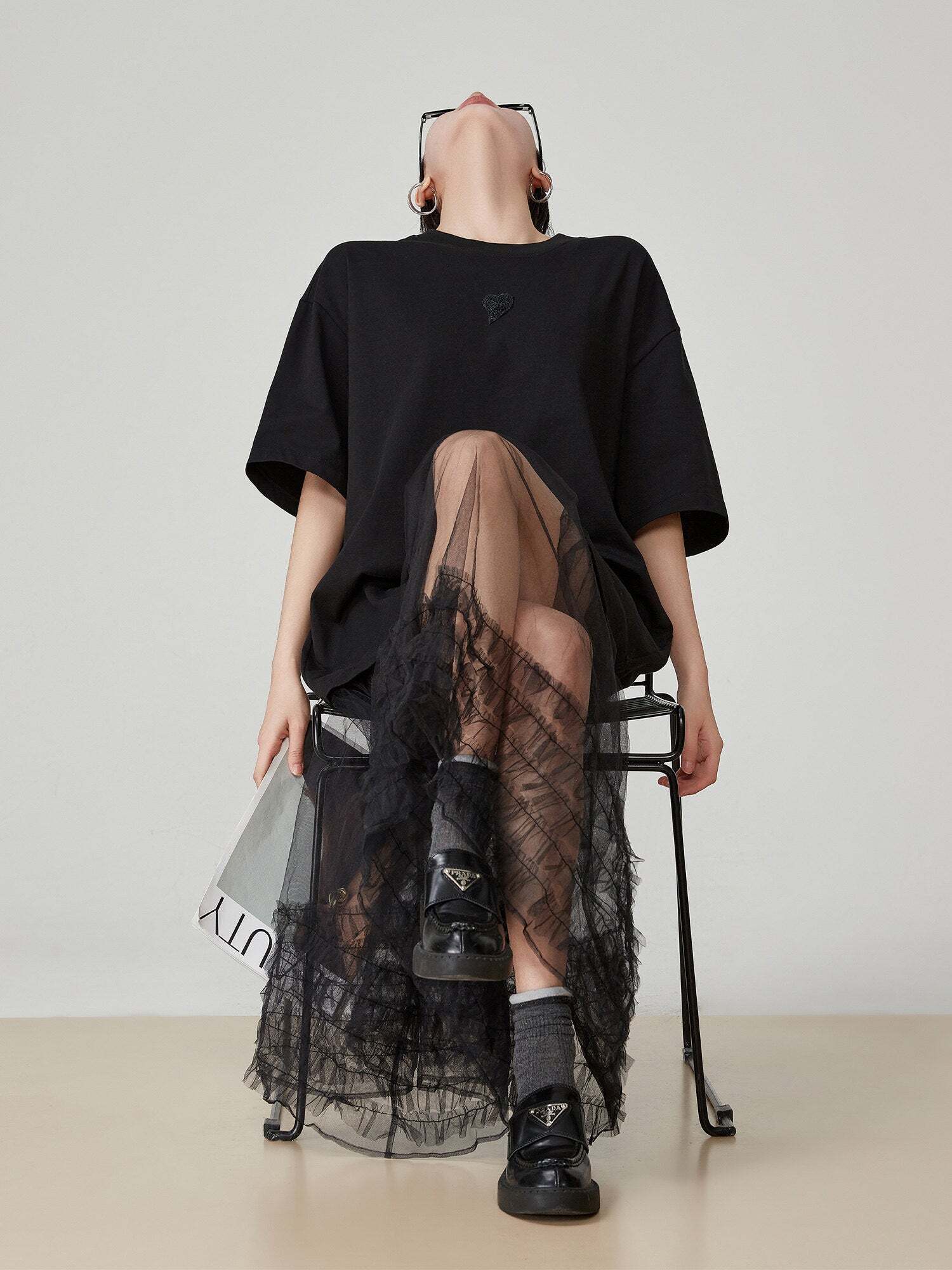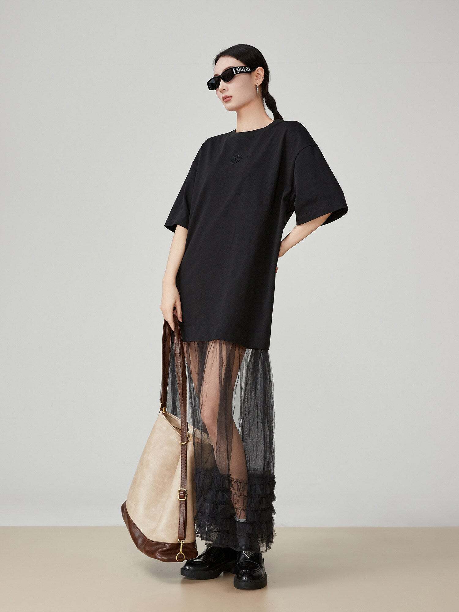 A highly designed mixed material item with tulle docking.