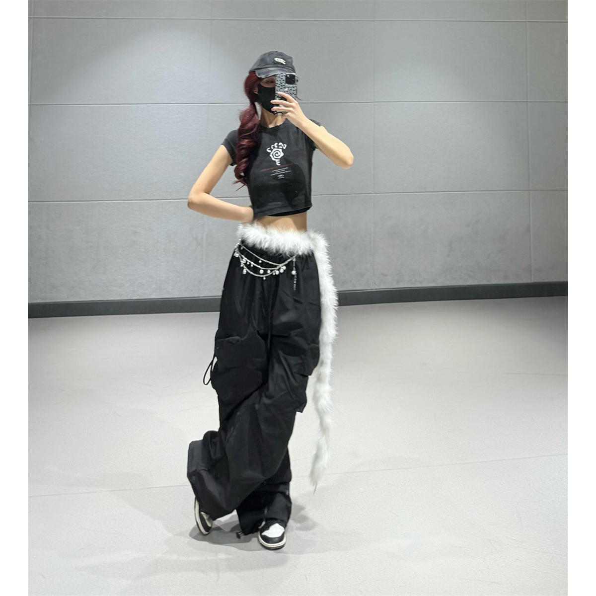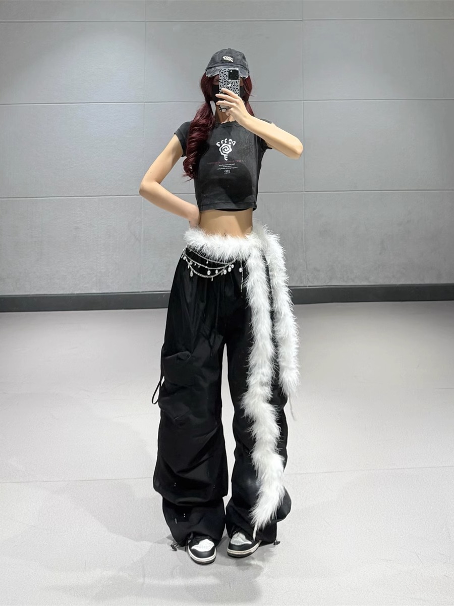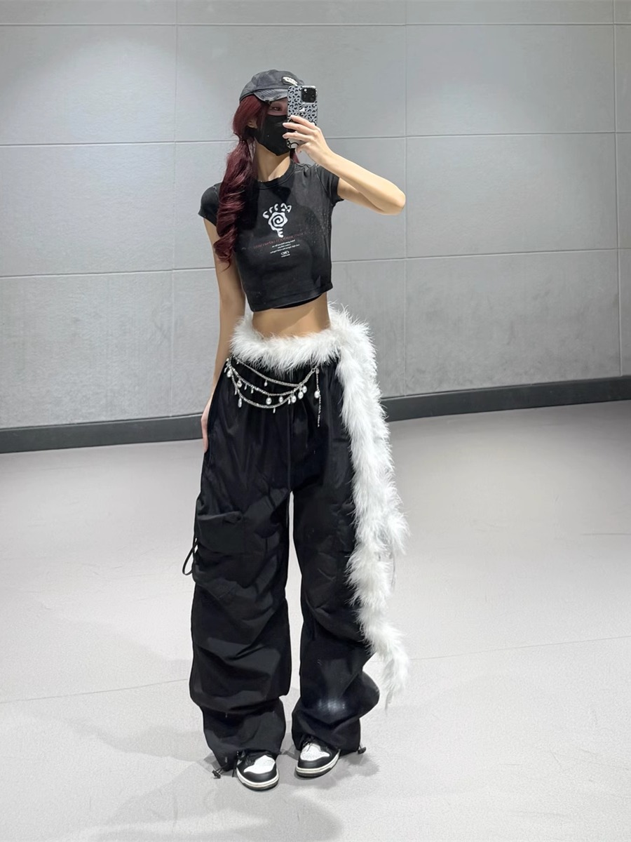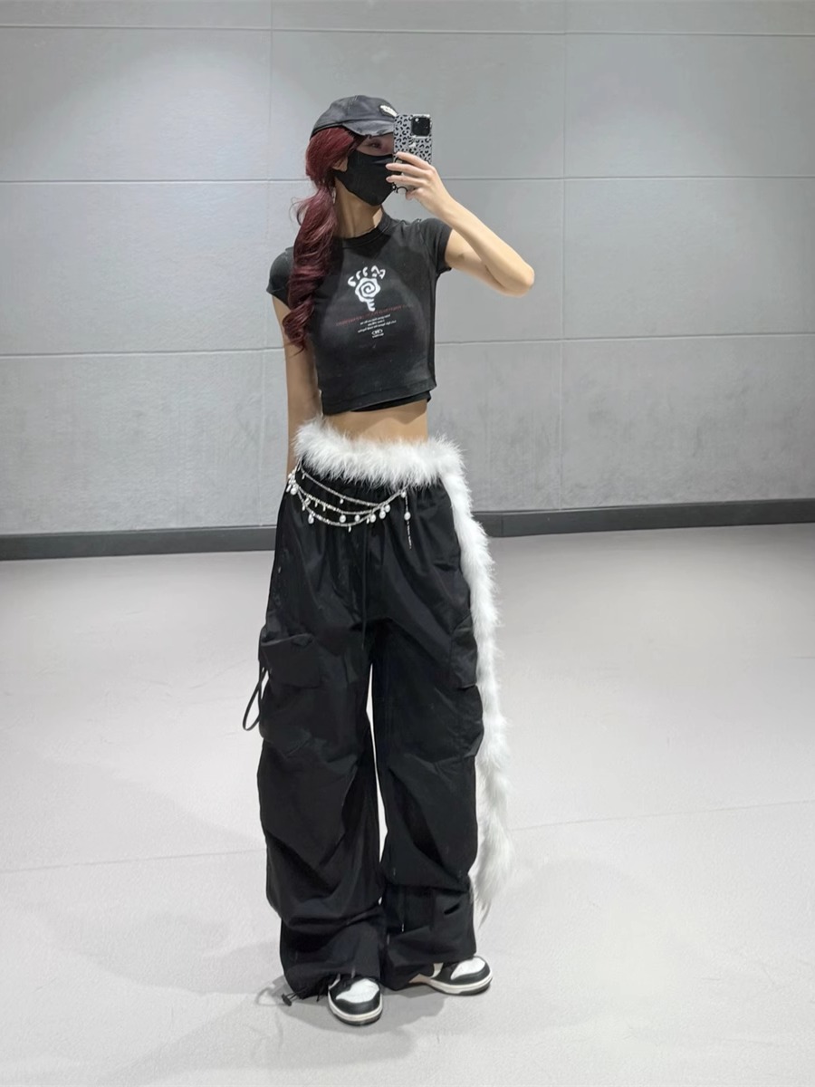 | Color | Black, Black cargo pants, Light apricot color, White fluff |