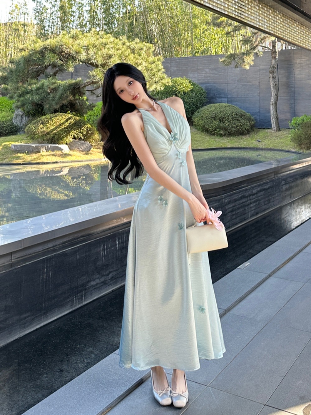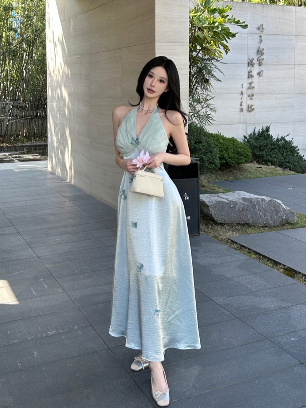 Elevate your summer wardrobe with our stunning Blue Floral Satin Halter Dress, designed to embody the essence of French style. This enchanting gown features a flattering fit that accentuates your silhouette, while delicate butterfly pearl details add a touch of whimsy and elegance. Perfect for vacations or garden parties, this dress ensures you’ll turn heads wherever you go. Don’t miss out on this must-have piece add it to your cart today and step into your fairy tale!