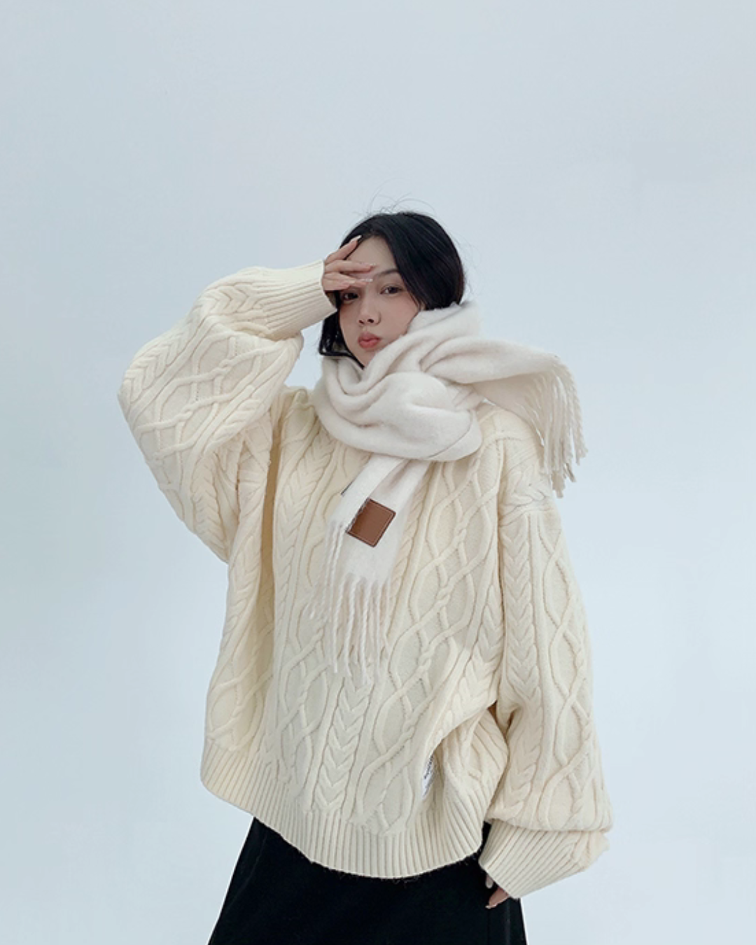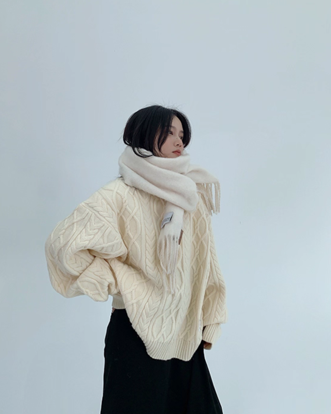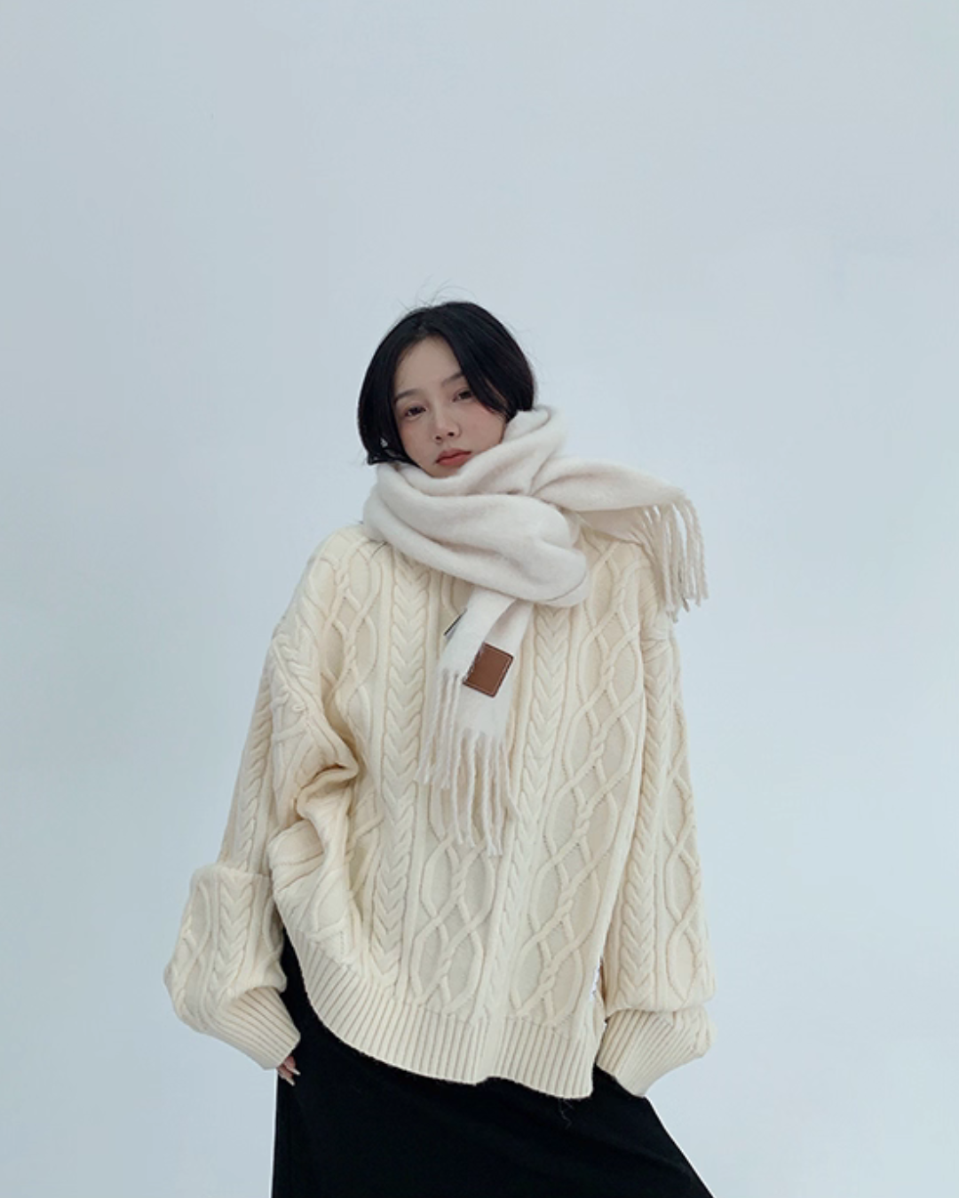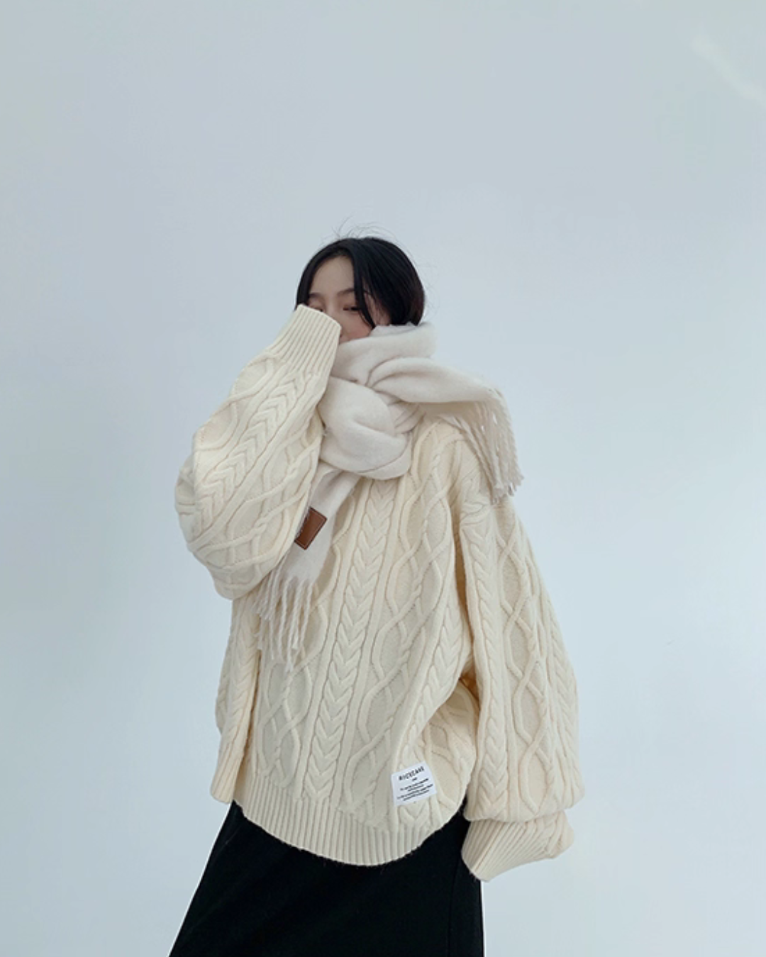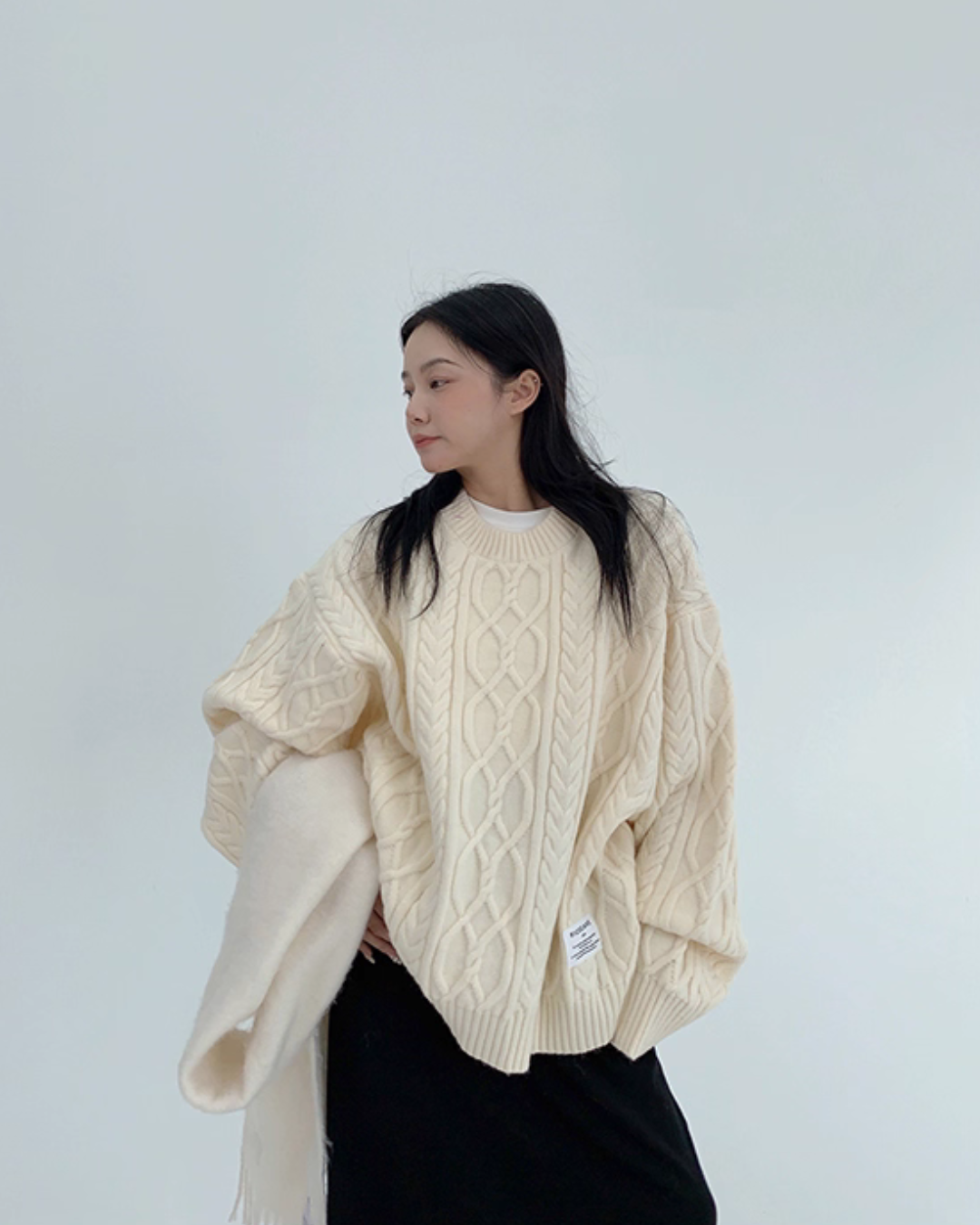 Three-dimensional cable knit top full of seasonal feeling.