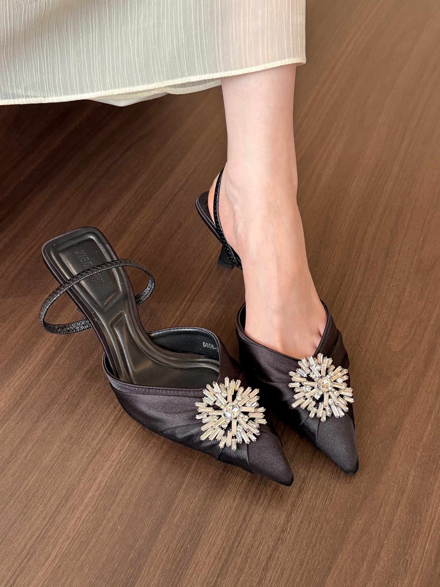Champagne Almond Toe Rhinone Stiletto Heels Women Summer Mules, Parties, Special High-quality product featuring holiday party dress, party animal costume, holiday party outfit and more. Modern design that fits the latest trends. Premium materials ensure durability and comfort. Order now for special offers! Product designed with attention to every detail. Suitable for all occasions and personal styles.