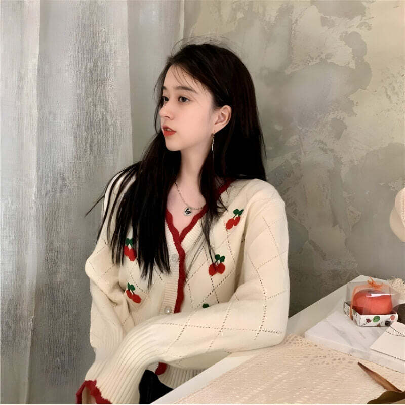 - Cherry Knit Cardigan$48.00