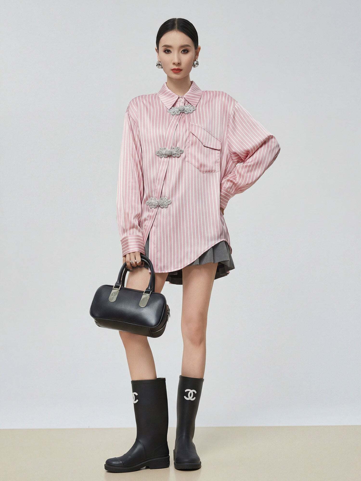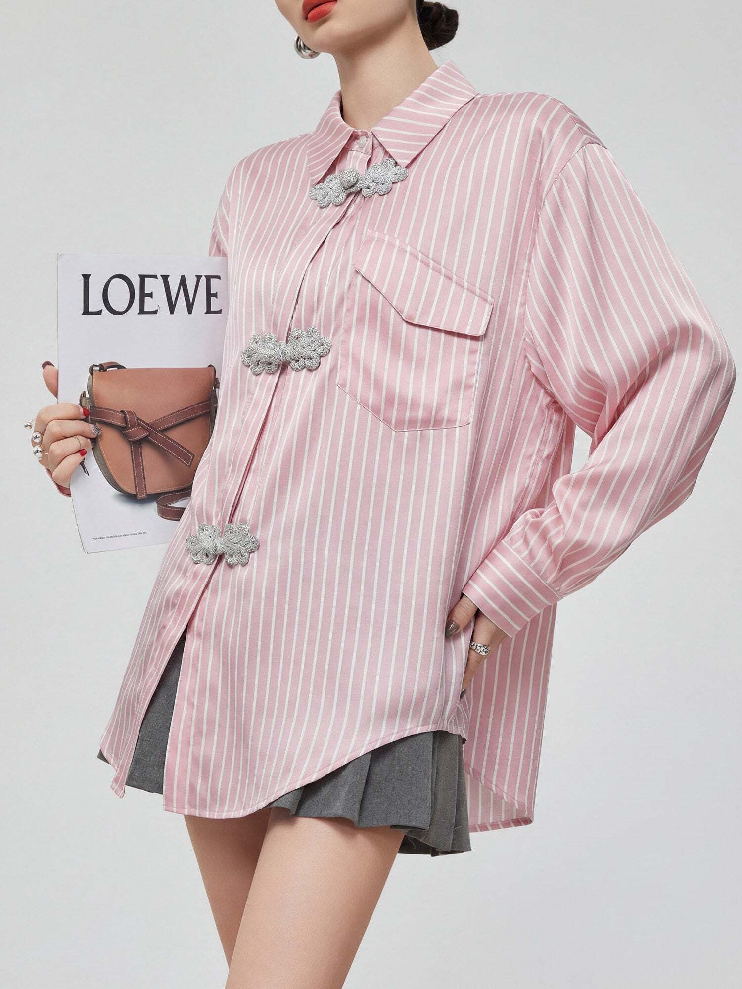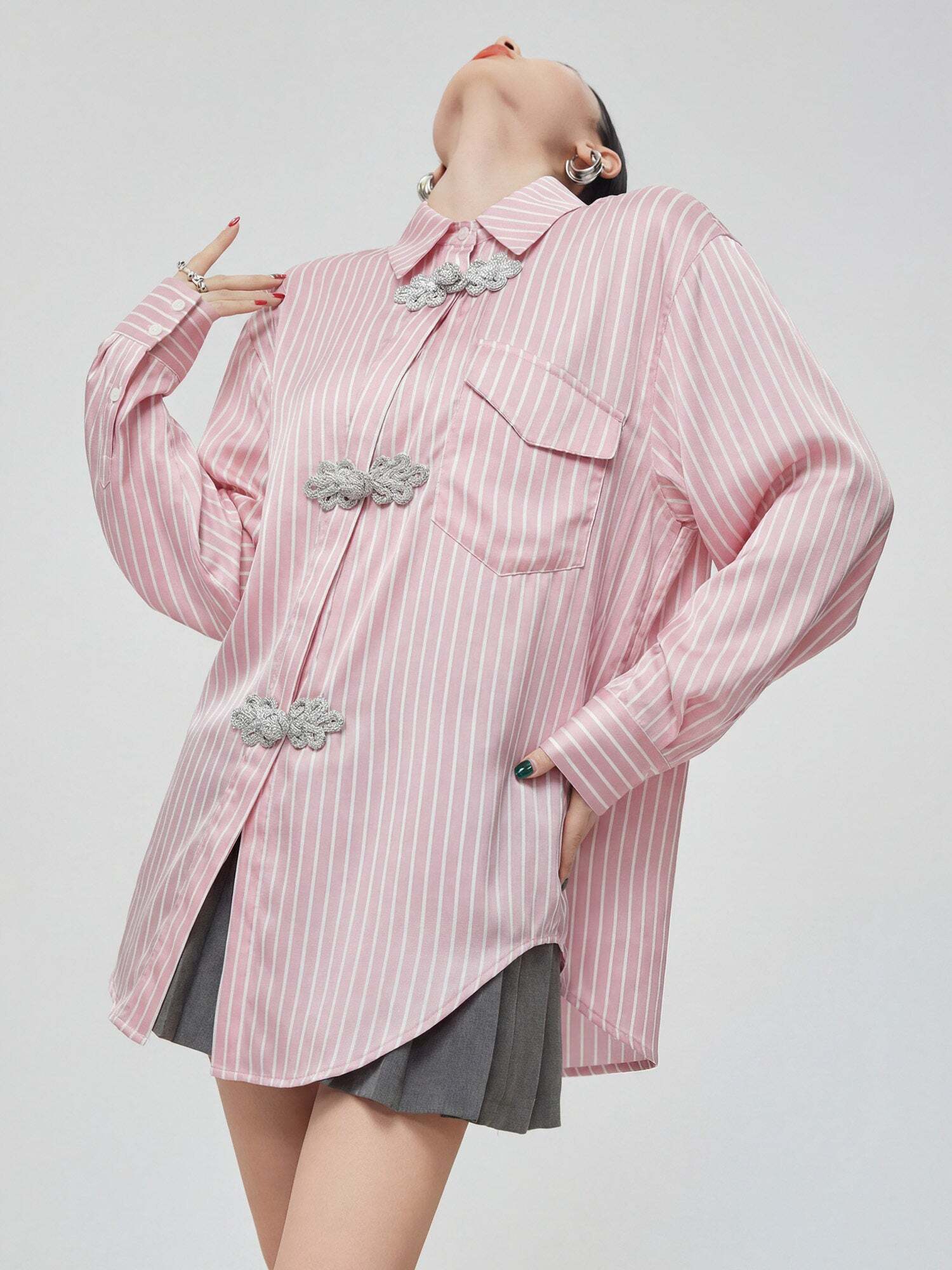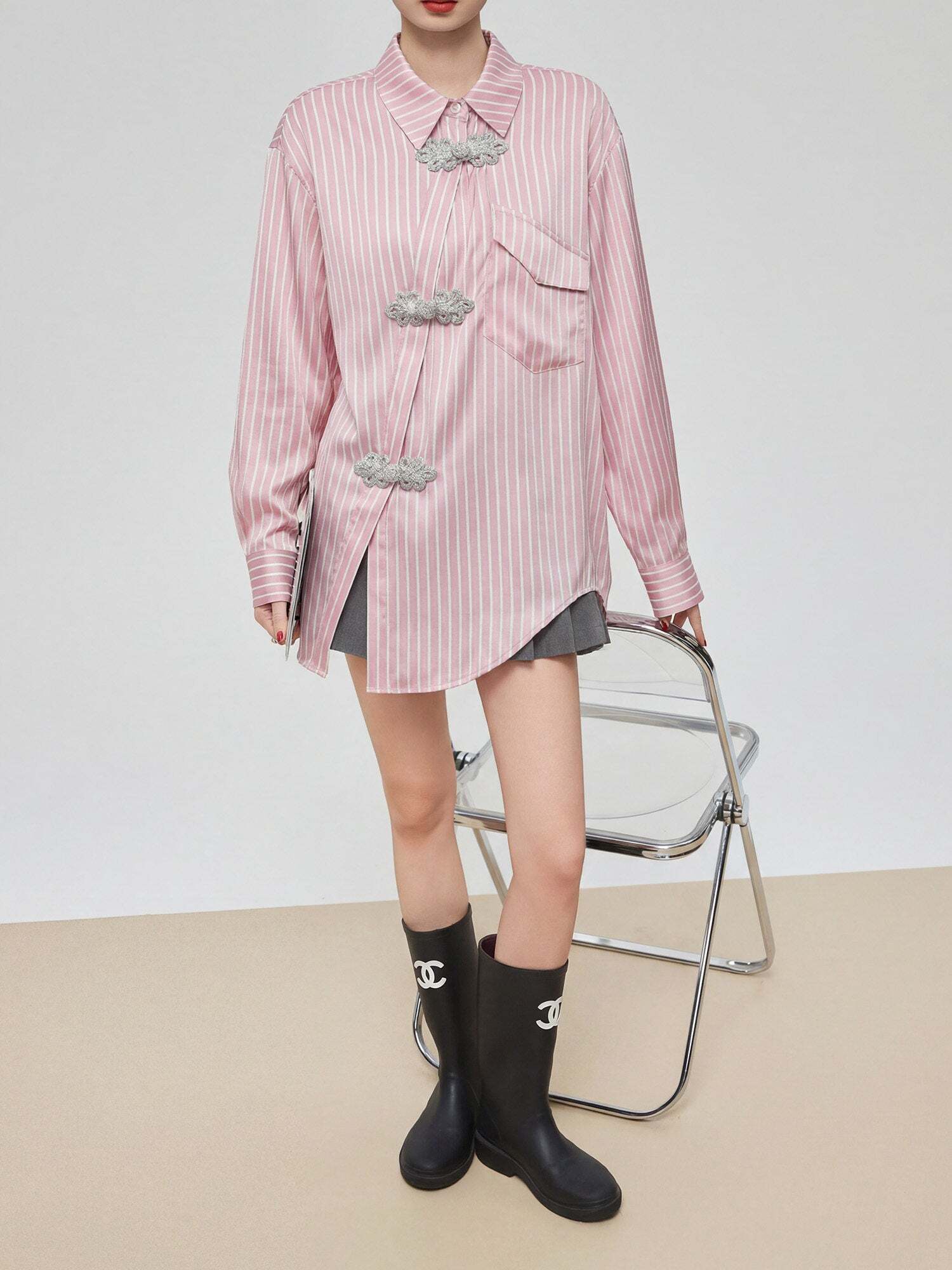 Stripe shirt that stands out with a China-style design.