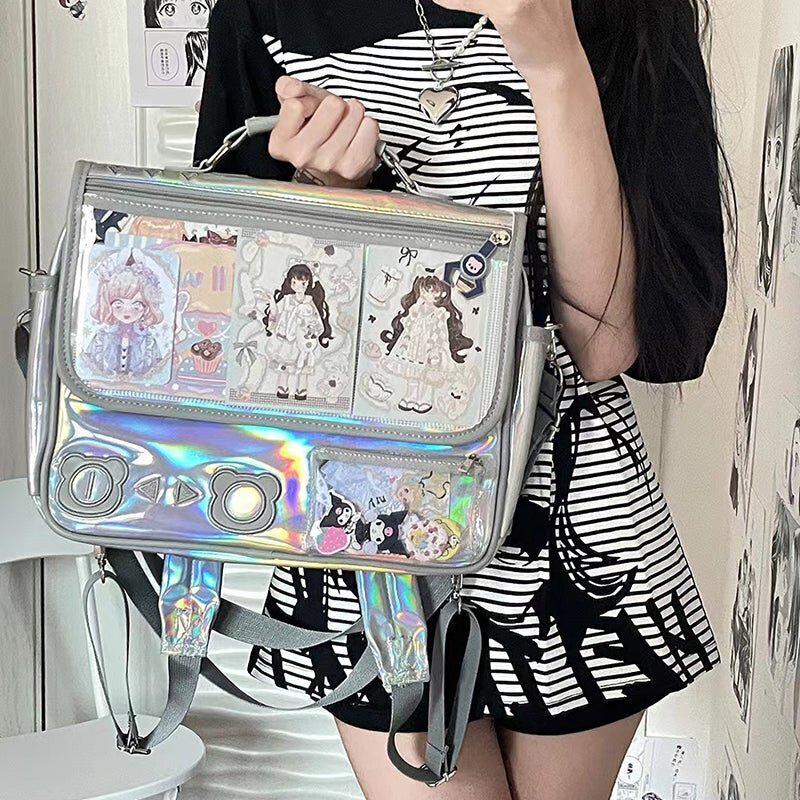 - Claw Machine-Inspired Holographic Ita Bag – Unique and Casual Pin Display Bag