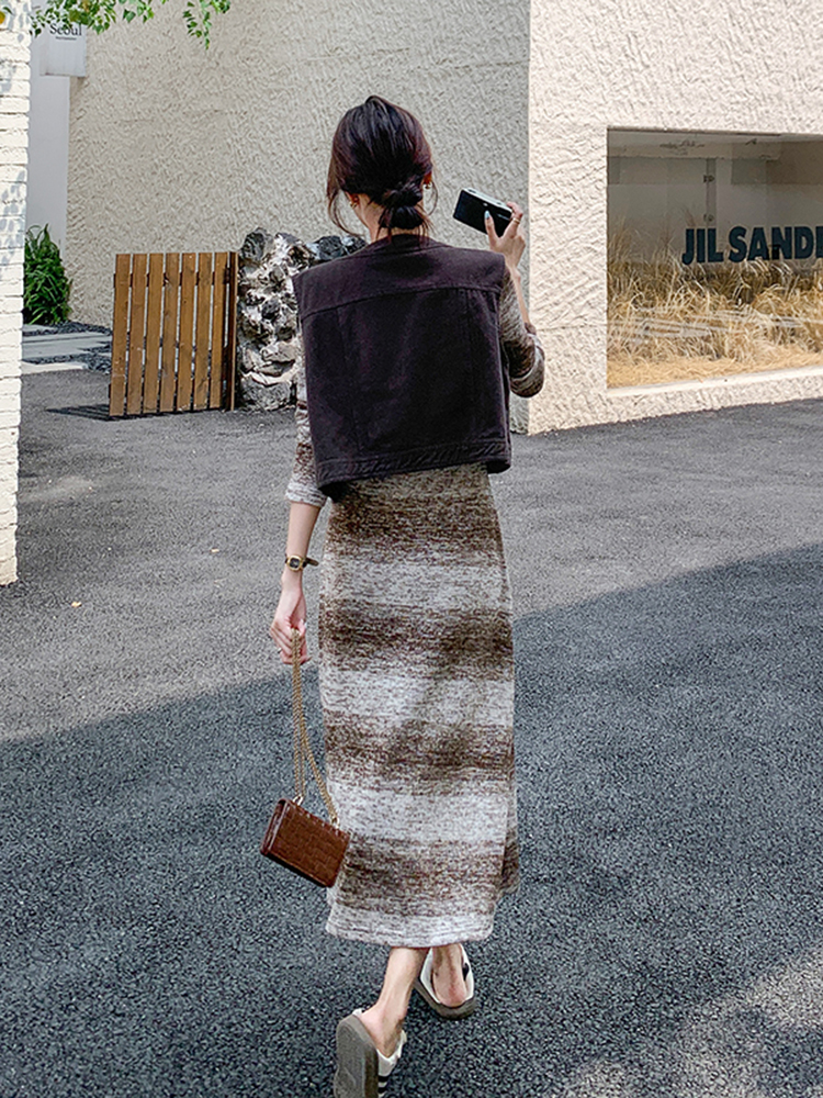 Elevate your seasonal wardrobe with our Coffee-Colored Knitted Dress and Vest Set, perfect for spring and autumn styling. This chic outfit features a casual long skirt that flatters every figure, while the versatile vest adds a layer of sophistication and warmth. Crafted from soft, breathable materials, this ensemble ensures all-day comfort and effortless elegance. Don’t miss out on this must-have addition add it to your cart today and step out in style!