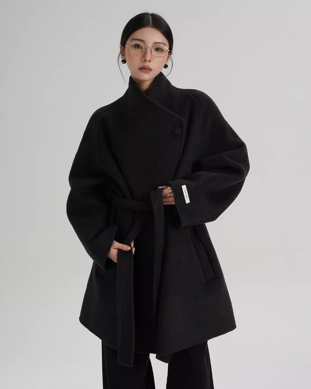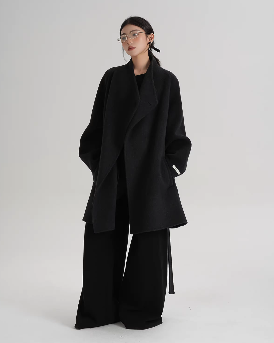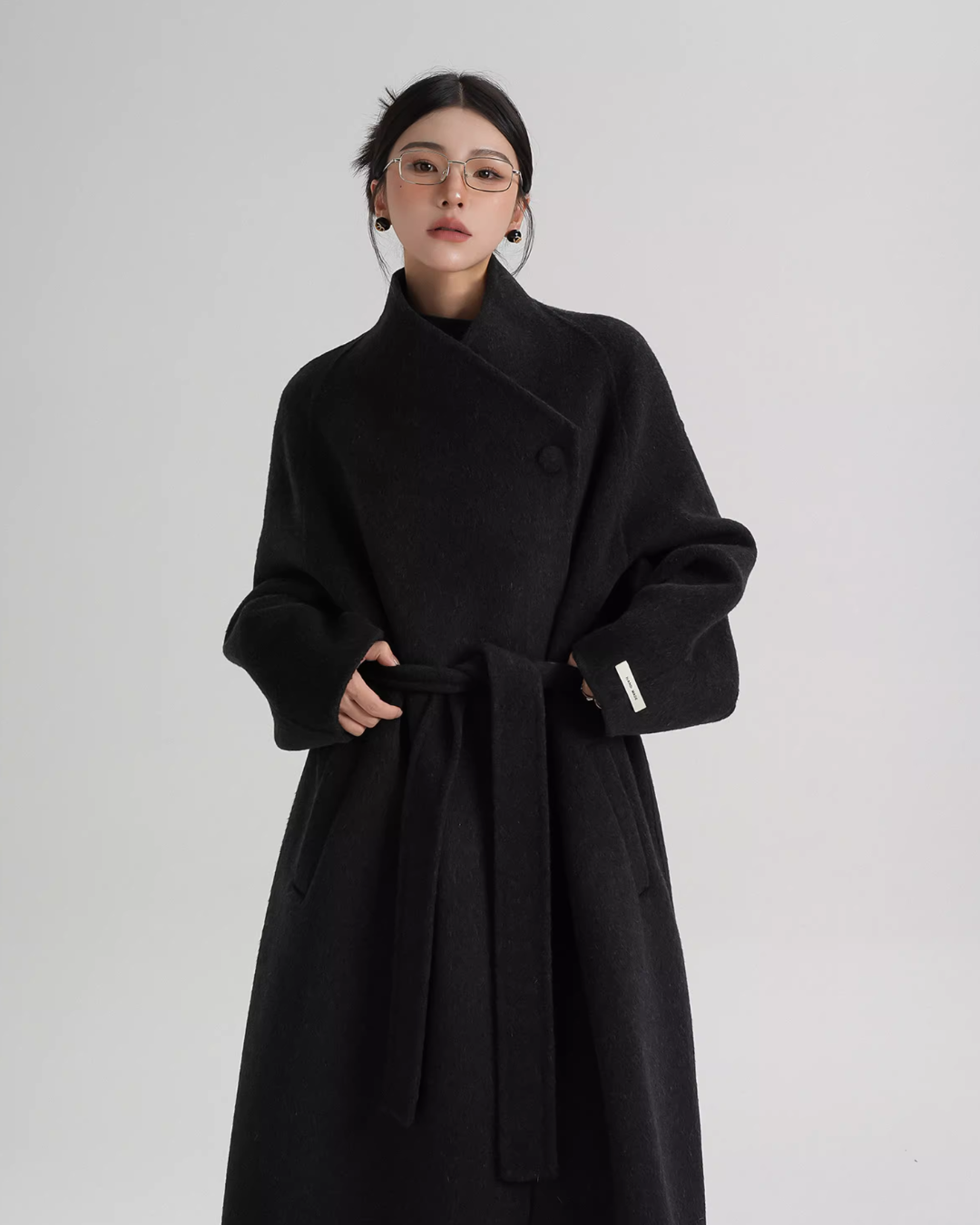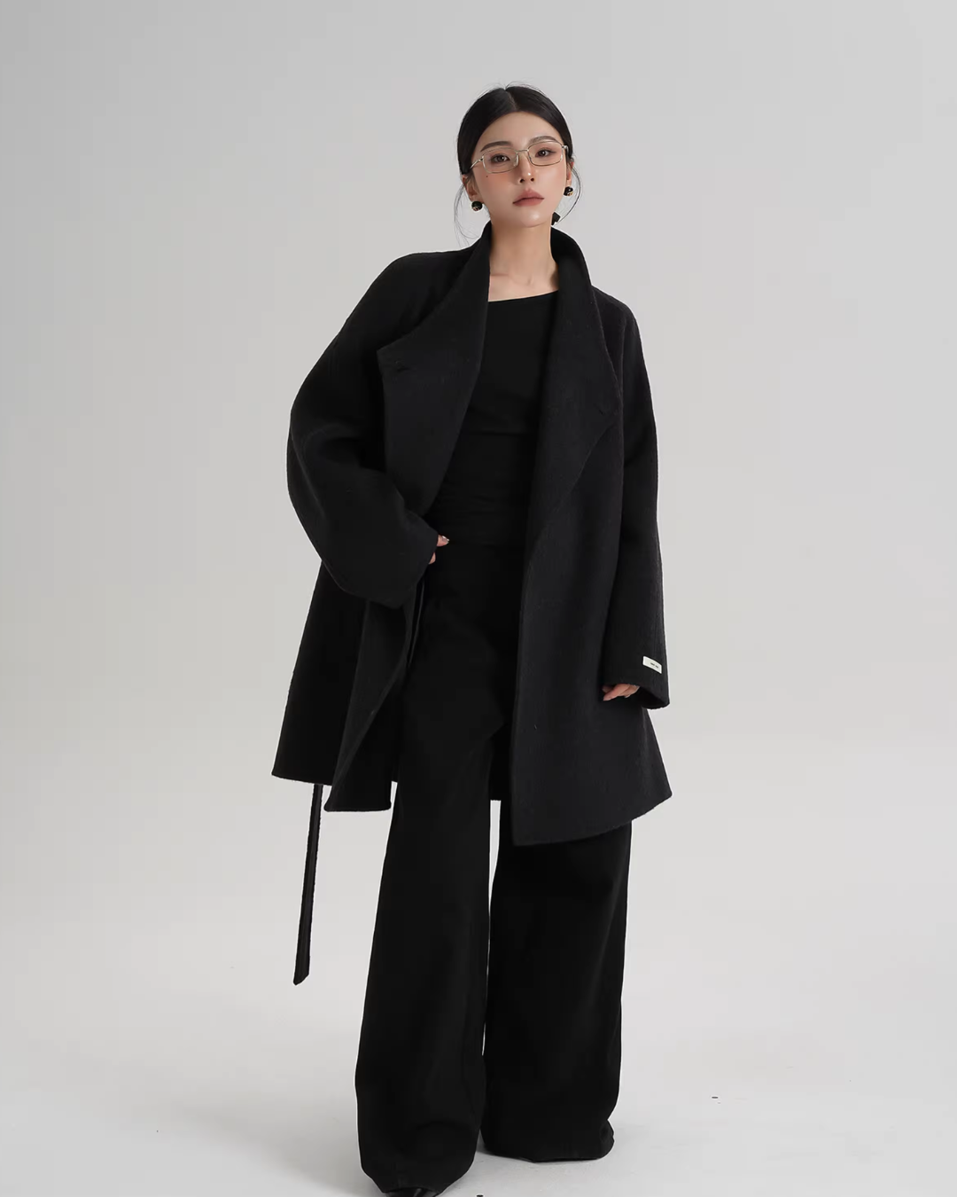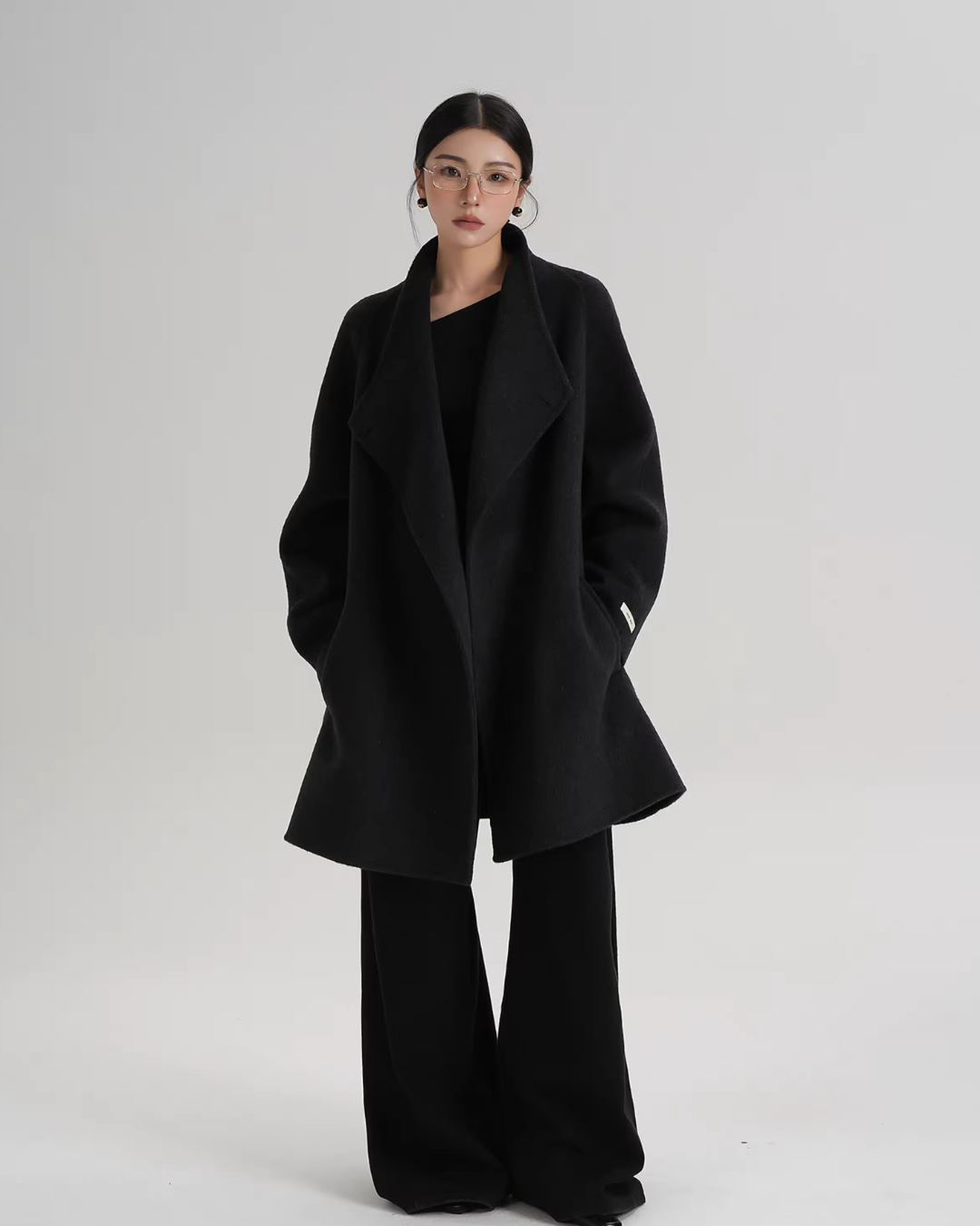 A coat that exudes a sophisticated adult expression made of fake wool material.