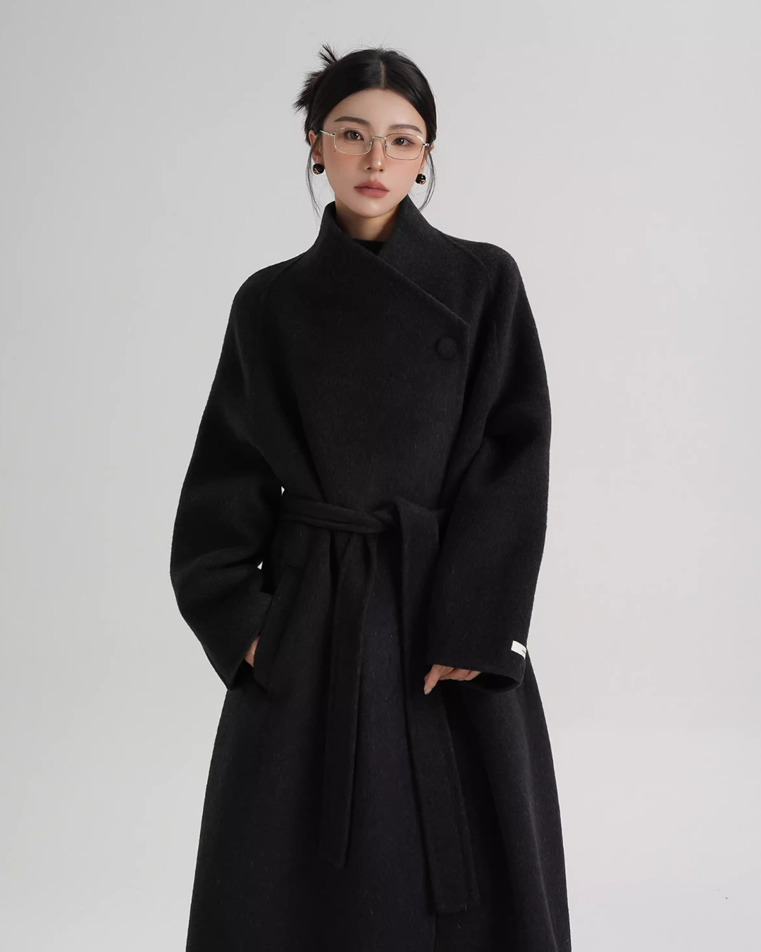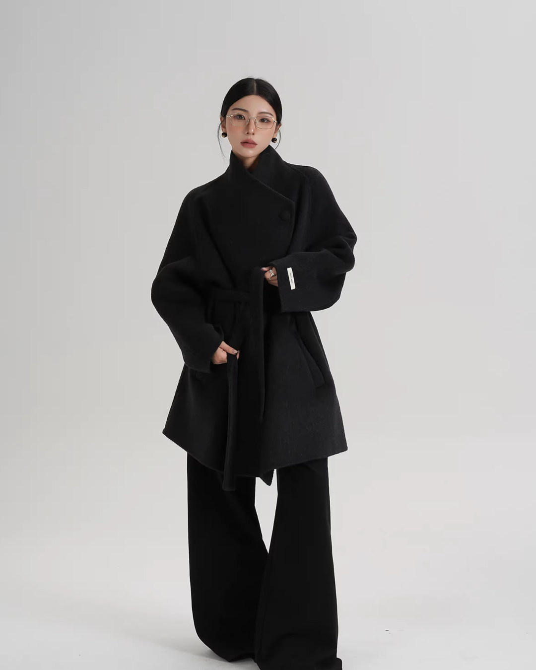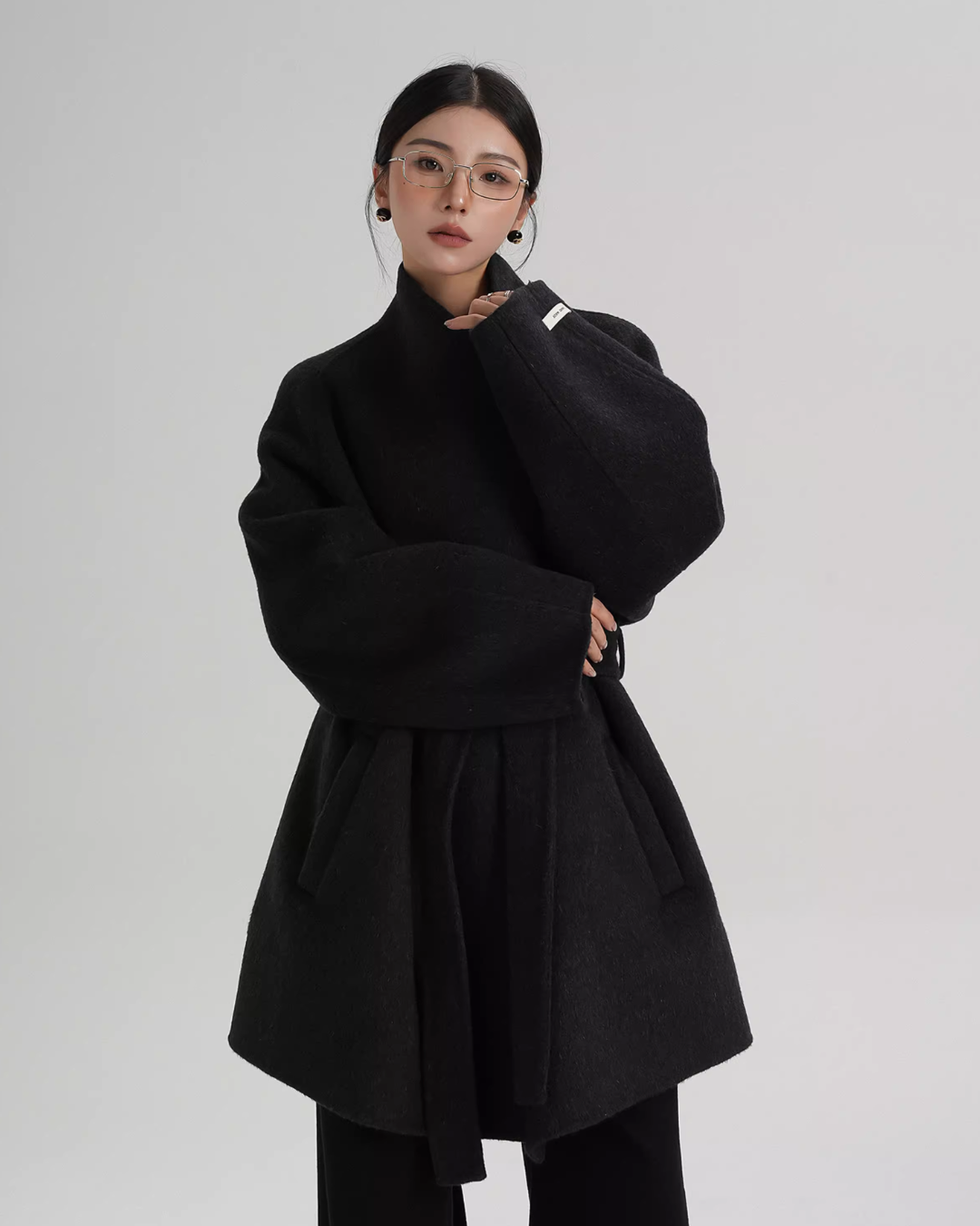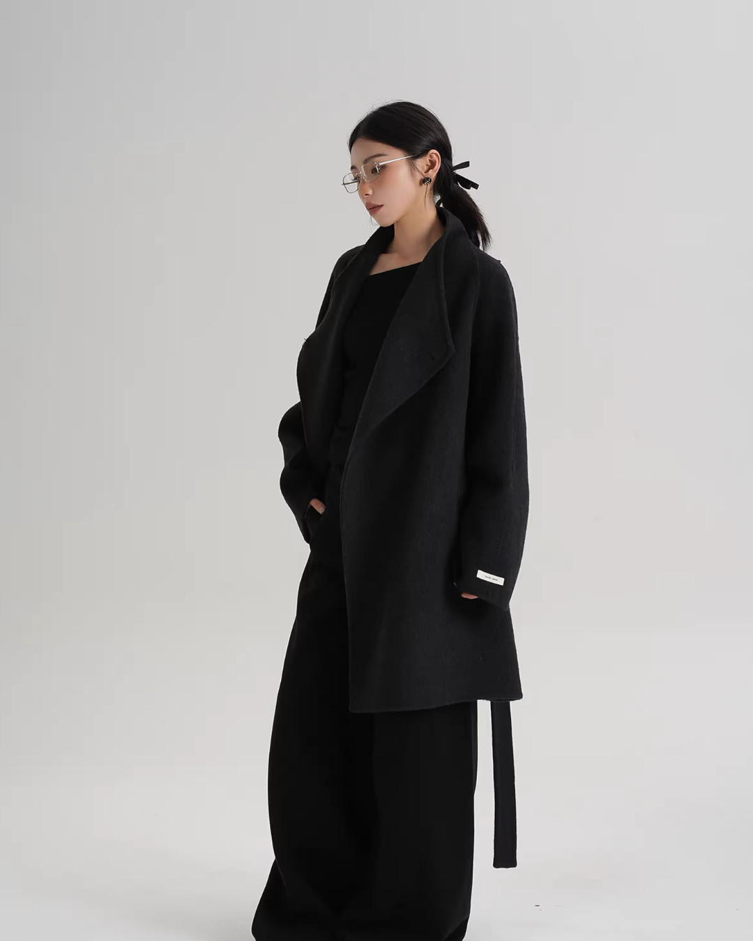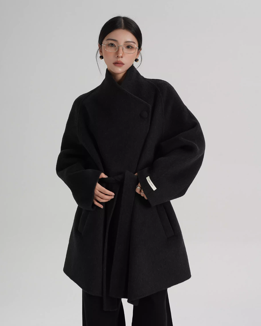 A coat that exudes a sophisticated adult expression made of fake wool material.
