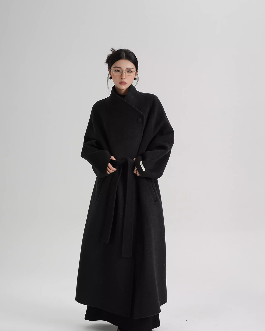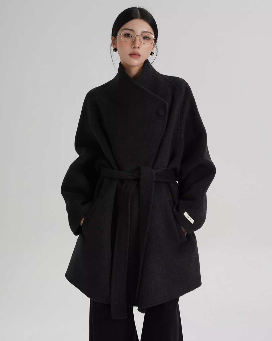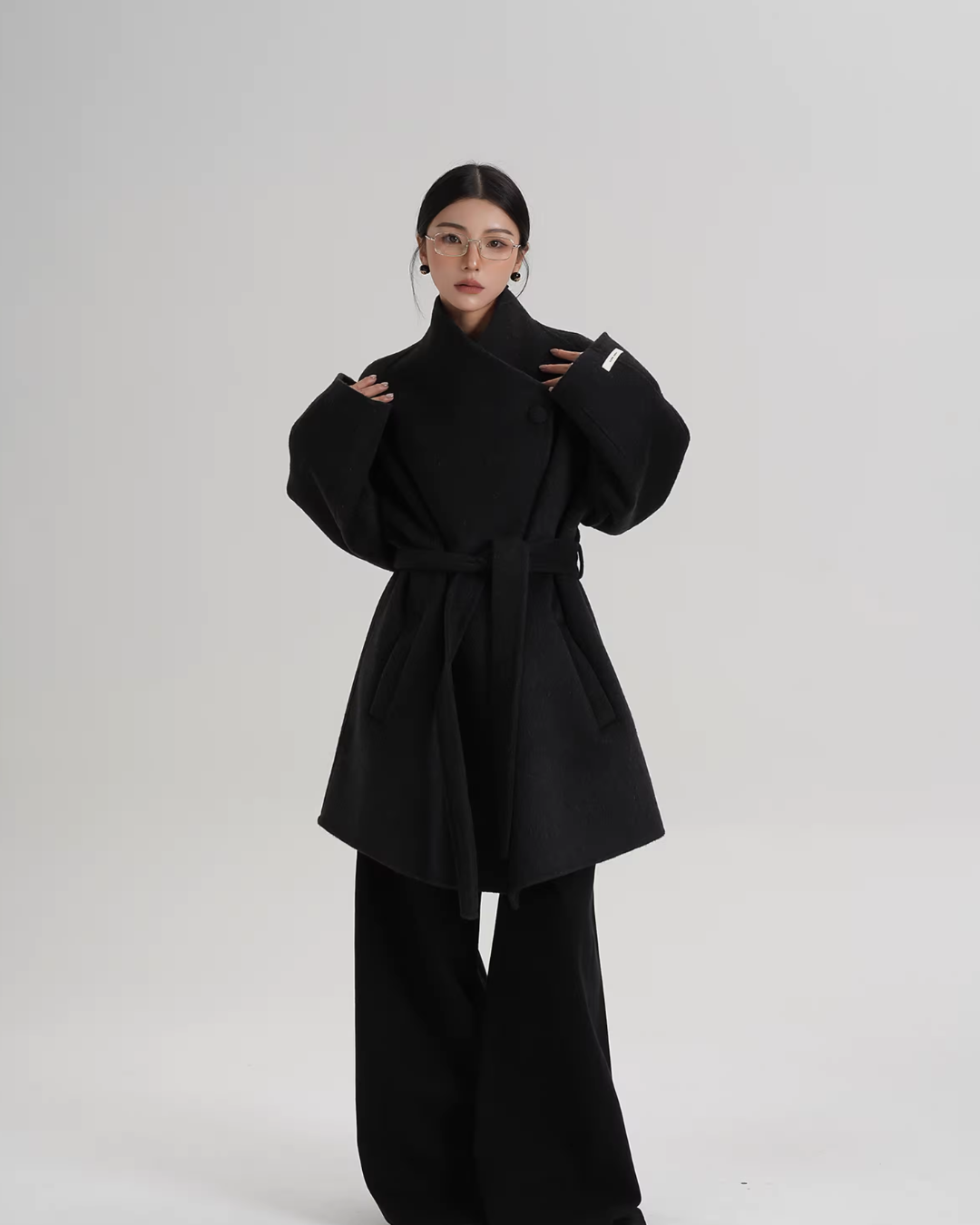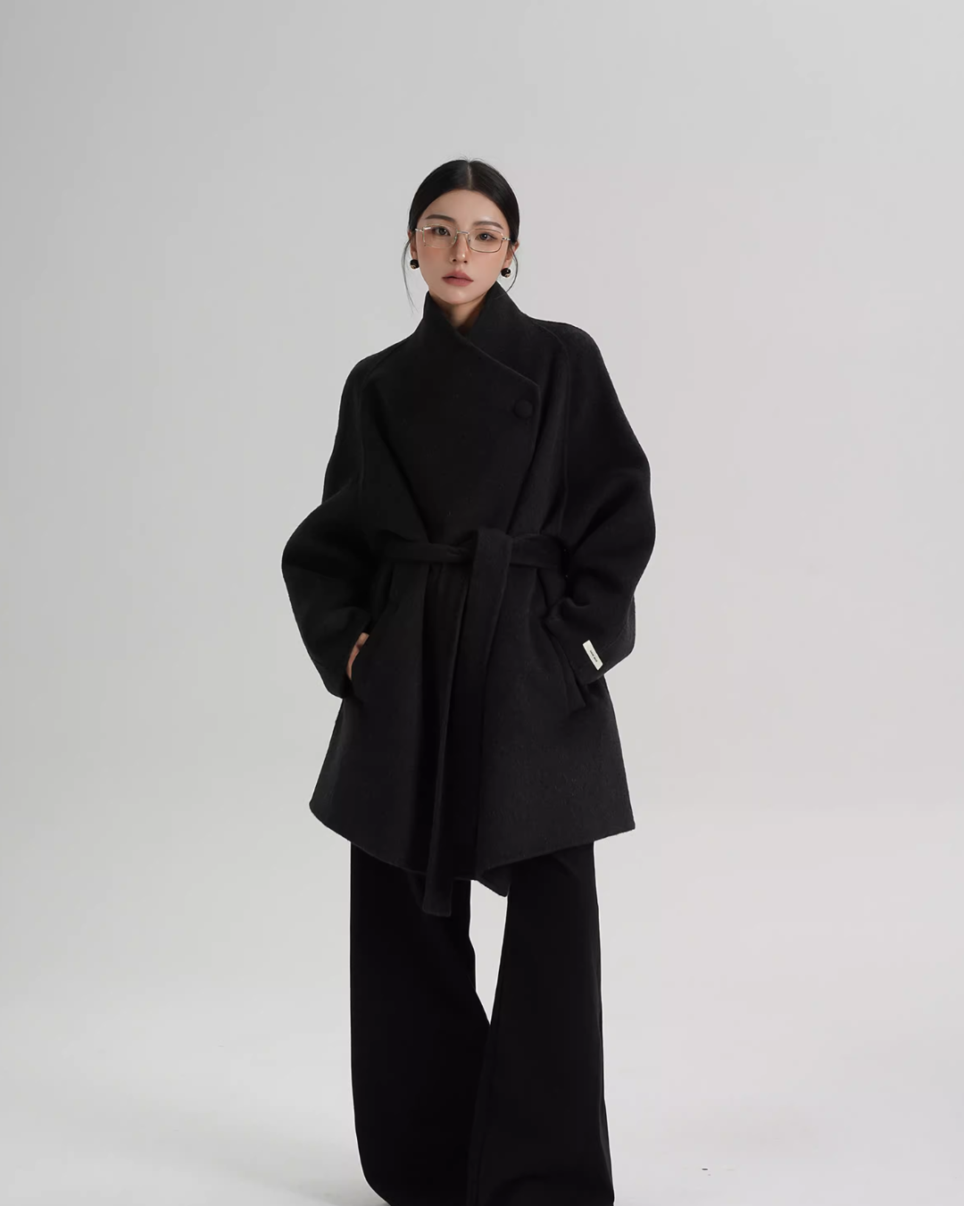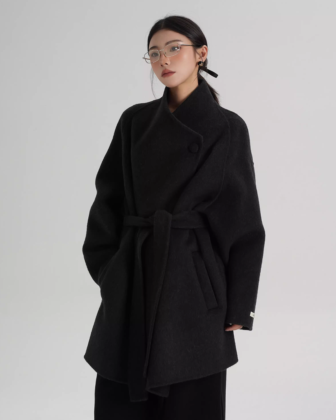 A coat that exudes a sophisticated adult expression made of fake wool material.