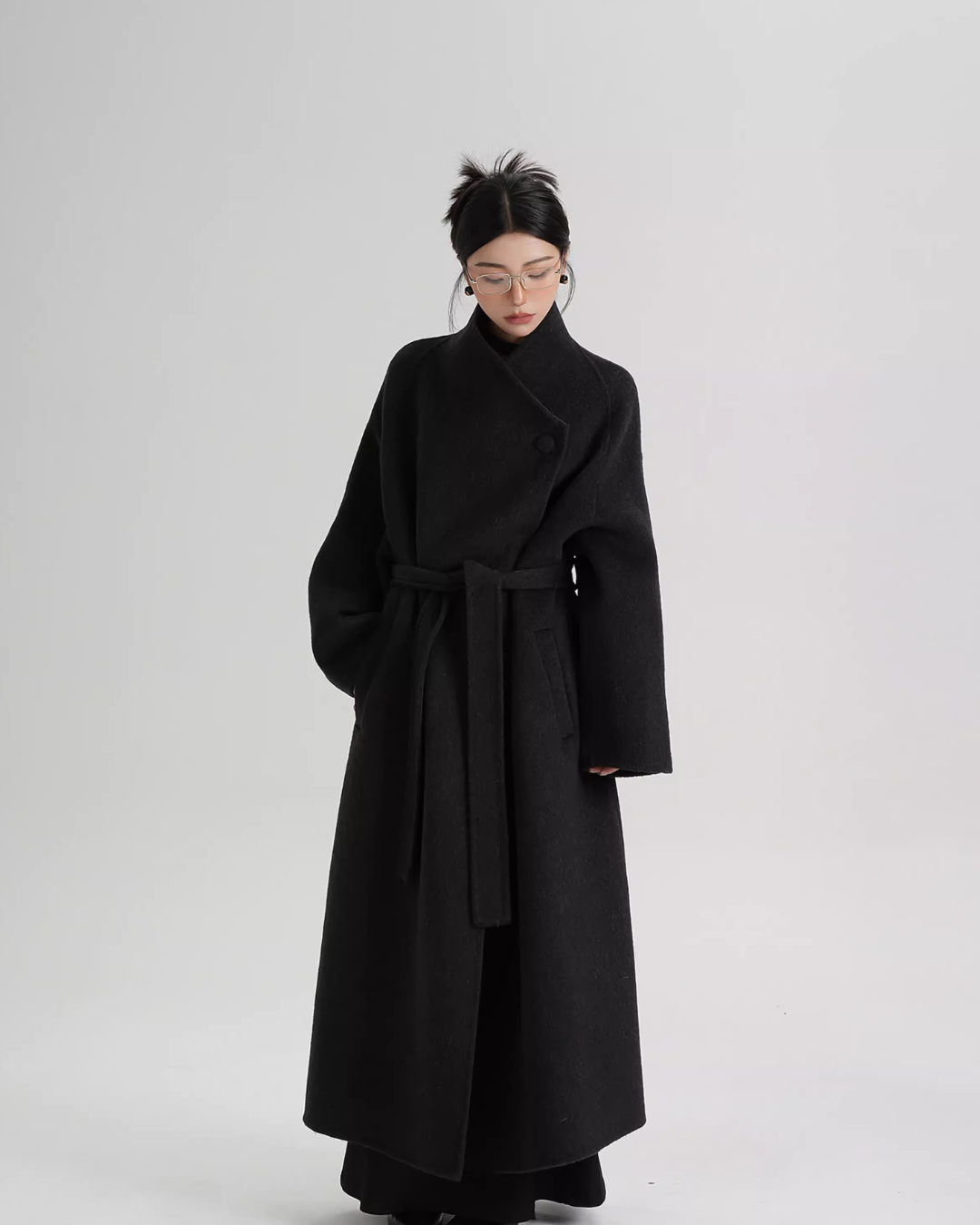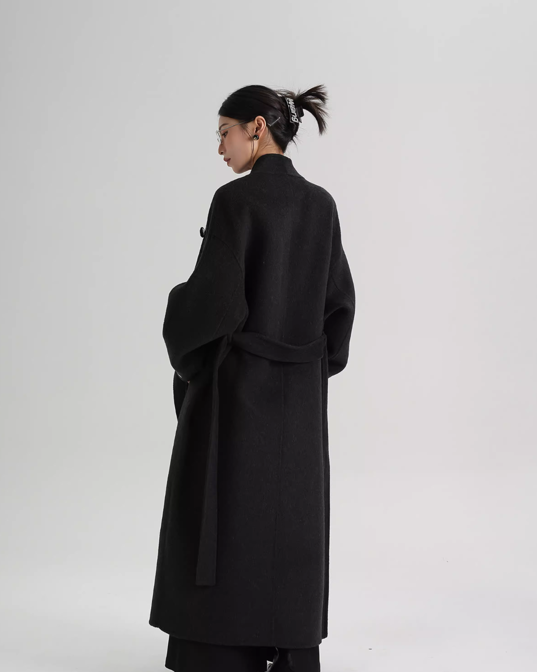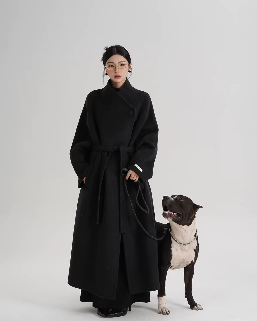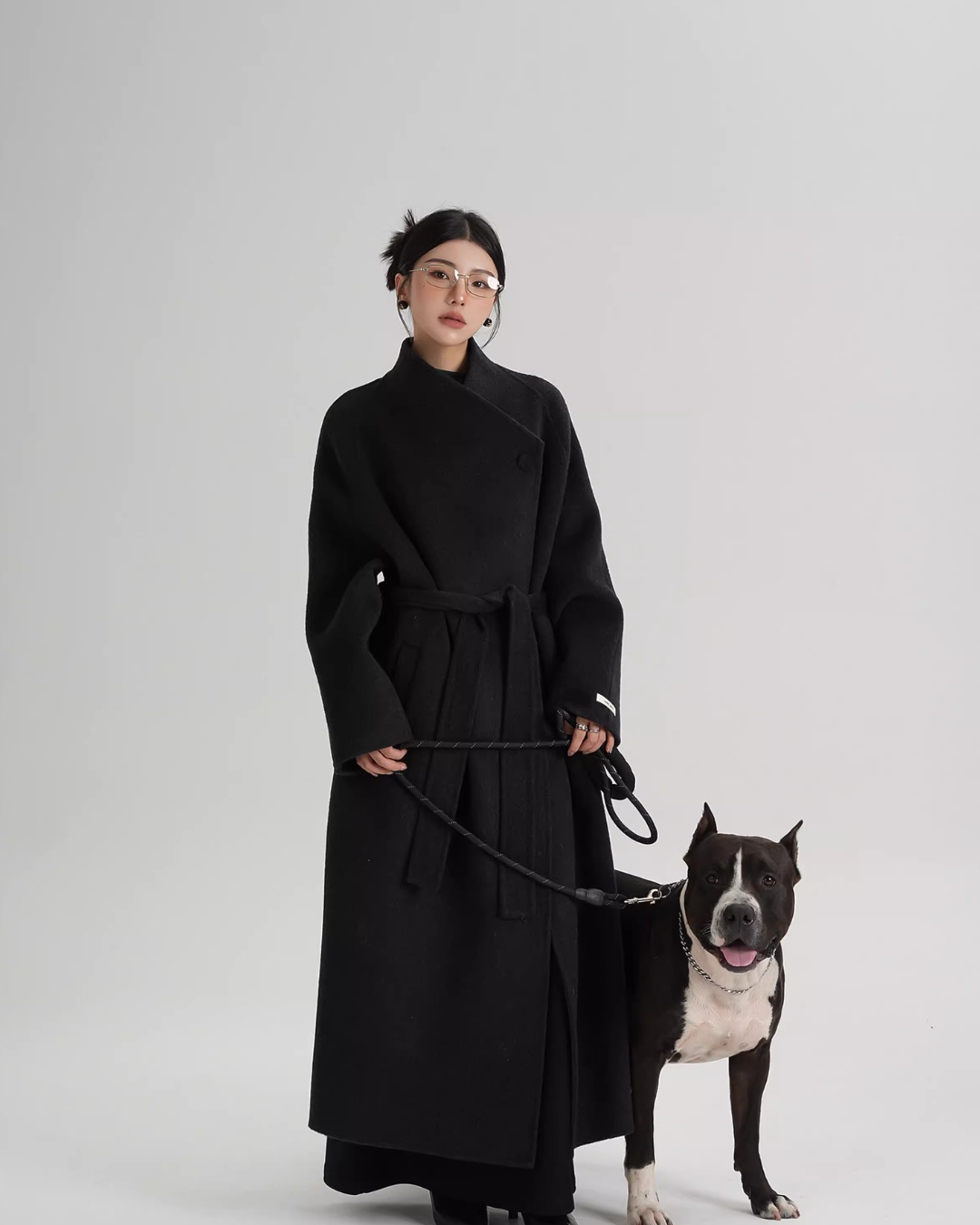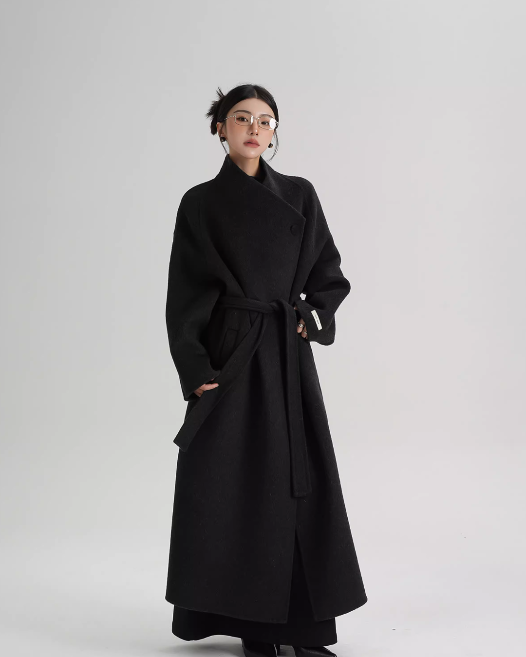 A coat that exudes a sophisticated adult expression made of fake wool material.