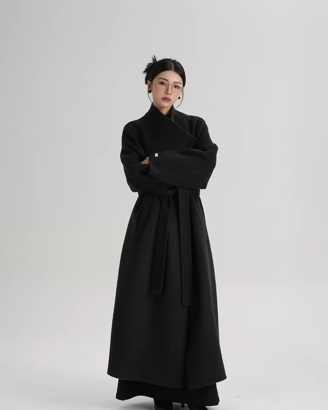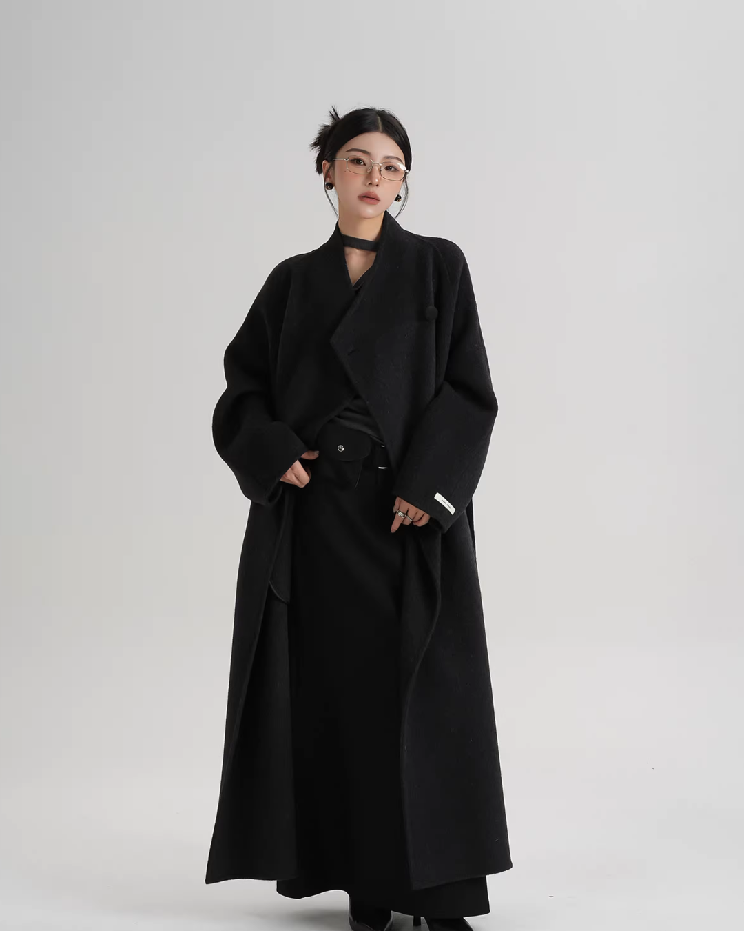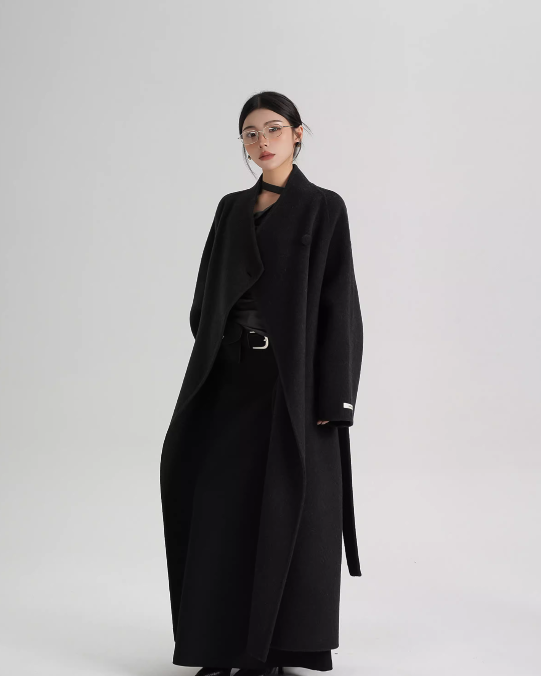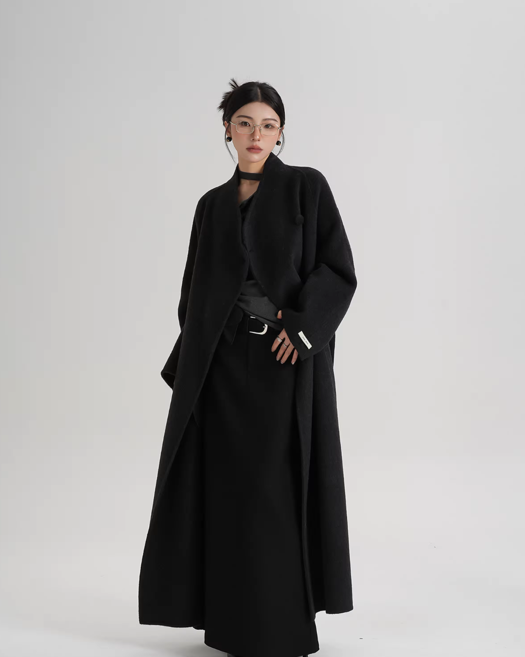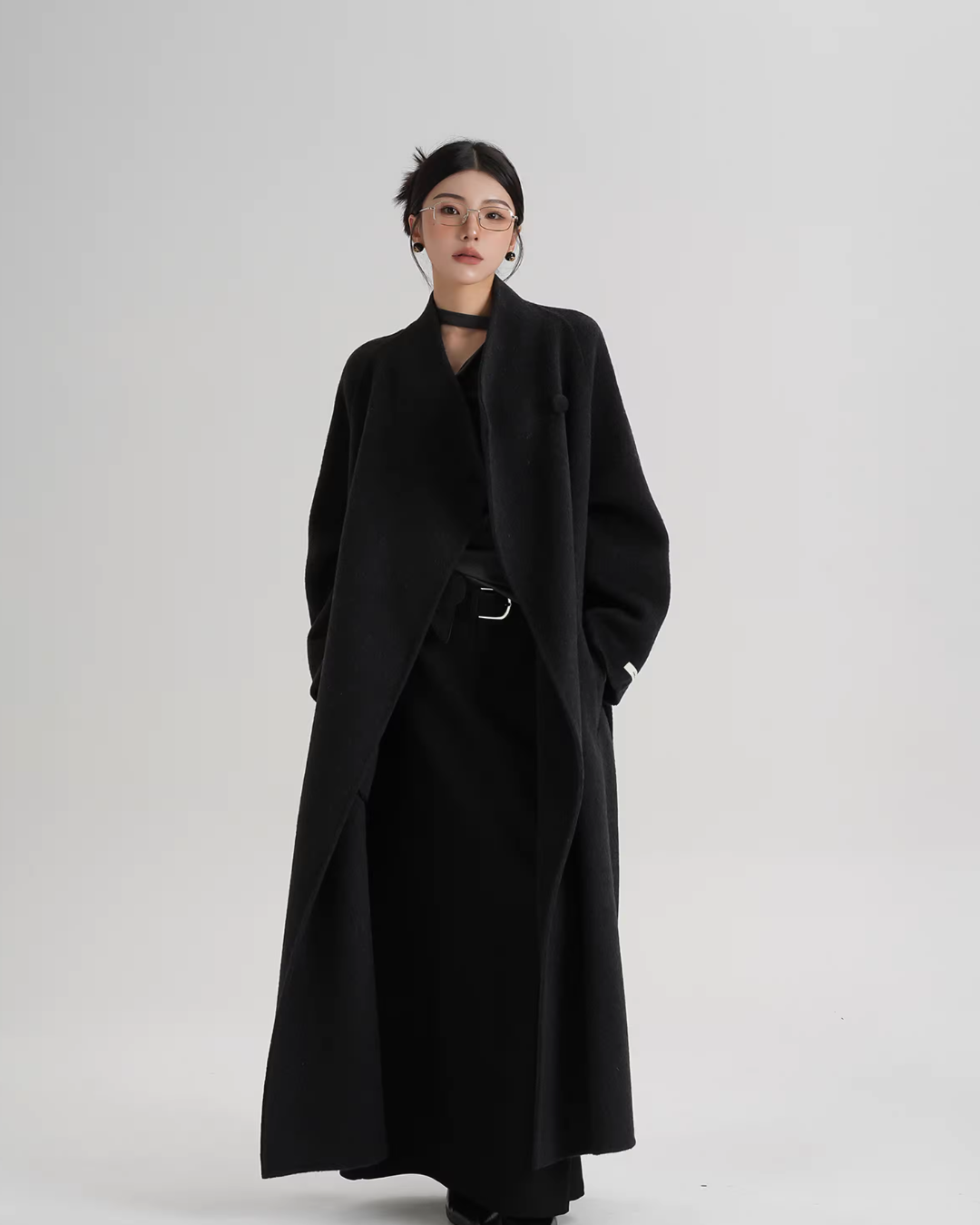 A coat that exudes a sophisticated adult expression made of fake wool material.