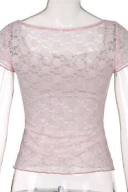 This pink, lace-detailed top, steeped in Coquette style, is an ode to classic femininity. With its non-stretch fabric composition of polyester and spandex, it beautifully contours your silhouette. Its vintage charm paired with skinny jeans or wide-leg pants takes modern casual to sophisticated chic.