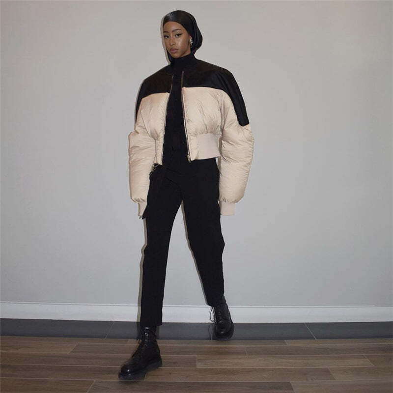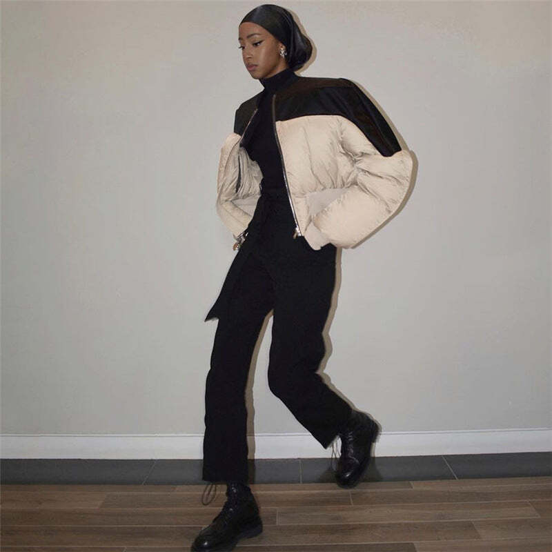 These chic punk-vibe bomber jackets cut to a flattering silhouette, features contrast elasticated waist & cuffs design, with side pockets and zip fly to the front. It’s perfect for winter inspo outfits or weekend going out vibes.