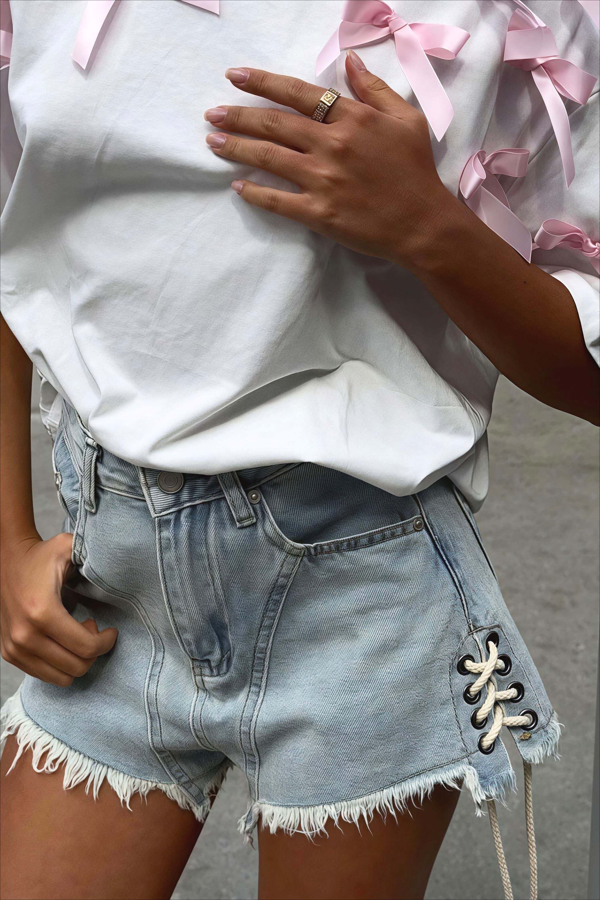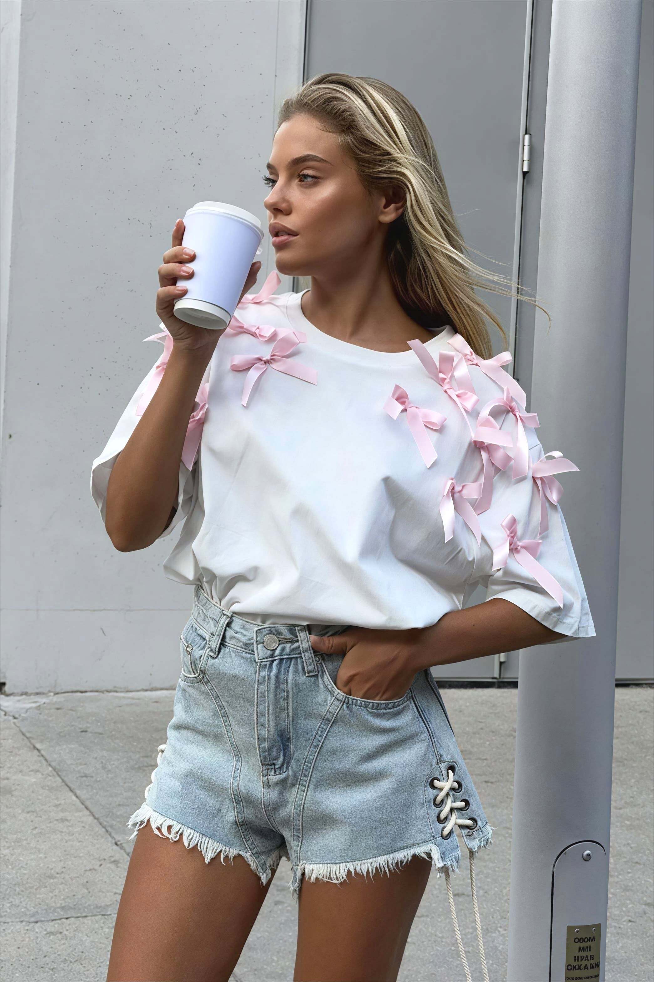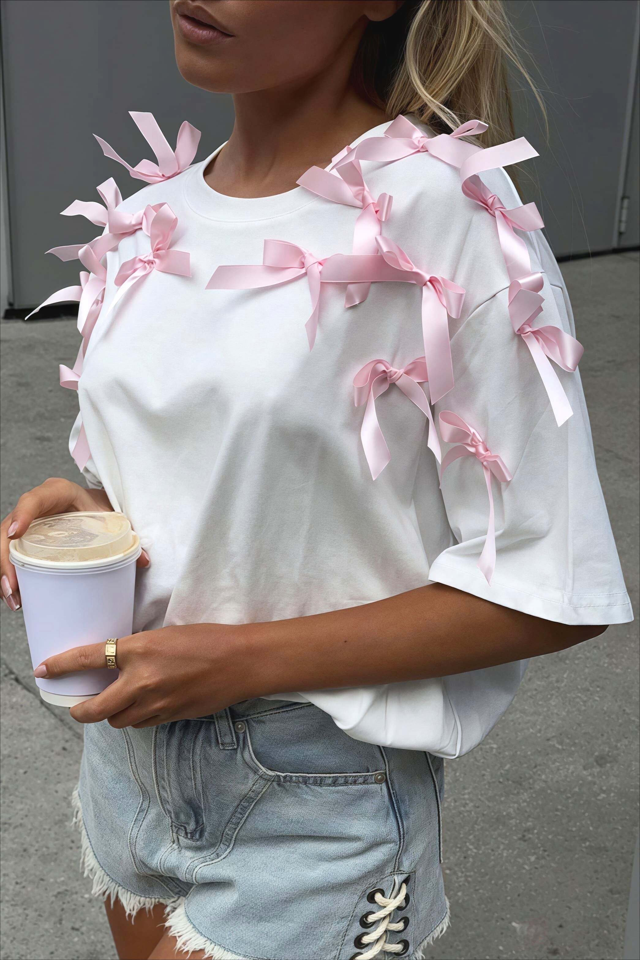 Cute Bowknot Ribbon Loose Short Sleeve T-shirt