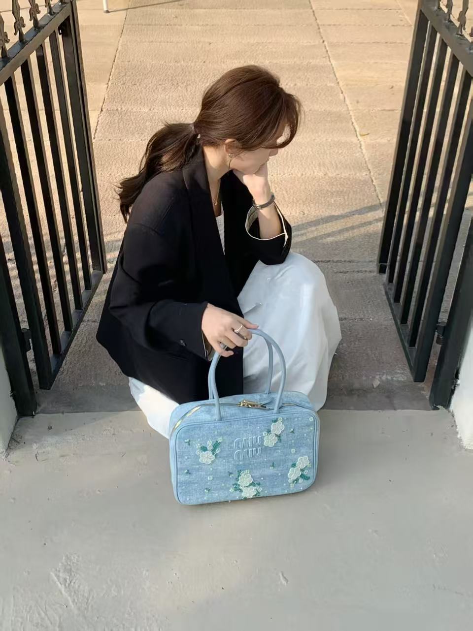 Denim Floral Embroidered Bowling Bag Studs Shoulder Hbag Women Spring, Summer Commutes High-quality product featuring spring outfit, work outfits women, fall outfits women and more. Modern design that fits the latest trends. Premium materials ensure durability and comfort. Order now for special offers! Product designed with attention to every detail. Suitable for all occasions and personal styles.