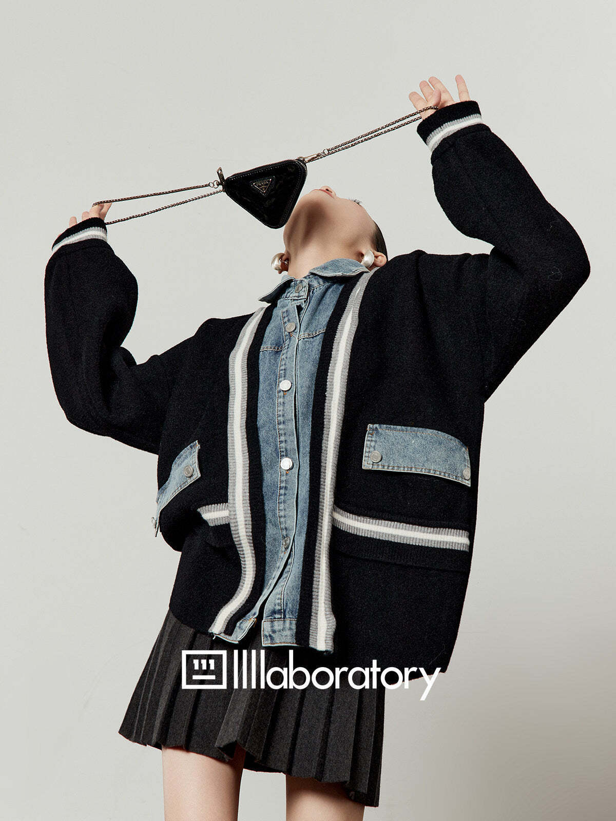 Just pairing it with simple bottoms completes a stylish layered coordinate.