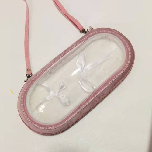 Bag with Clear Window for Plushies and Pins is designed to display plushies, dolls, pins, and badges while keeping everyday essentials organized.