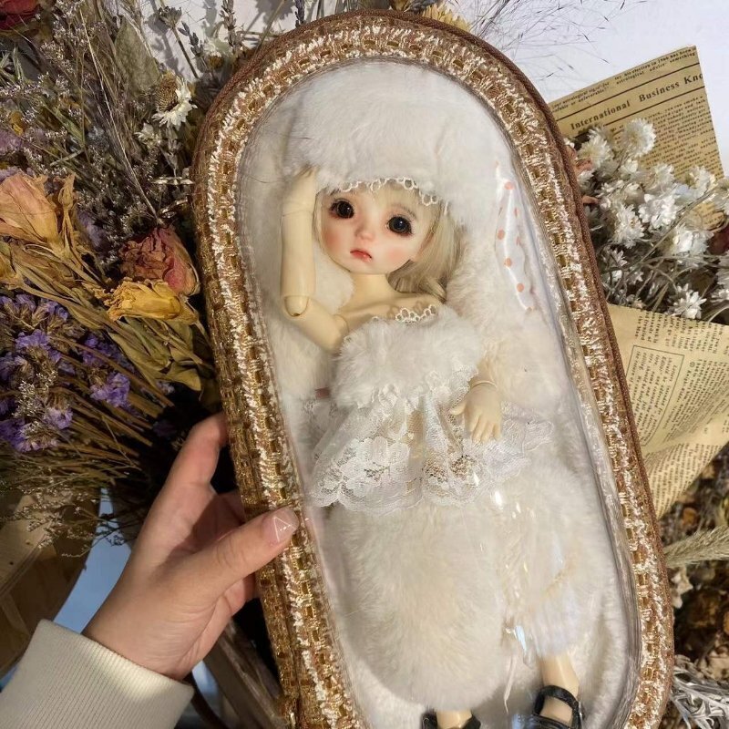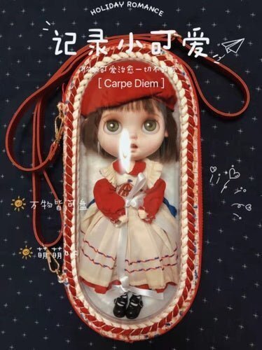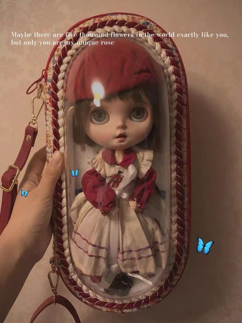 A travel doll bag is for protecting your favorihilte doll we you are walking.Size: outer size 33.50*14 cm, window size 32*12.5cm