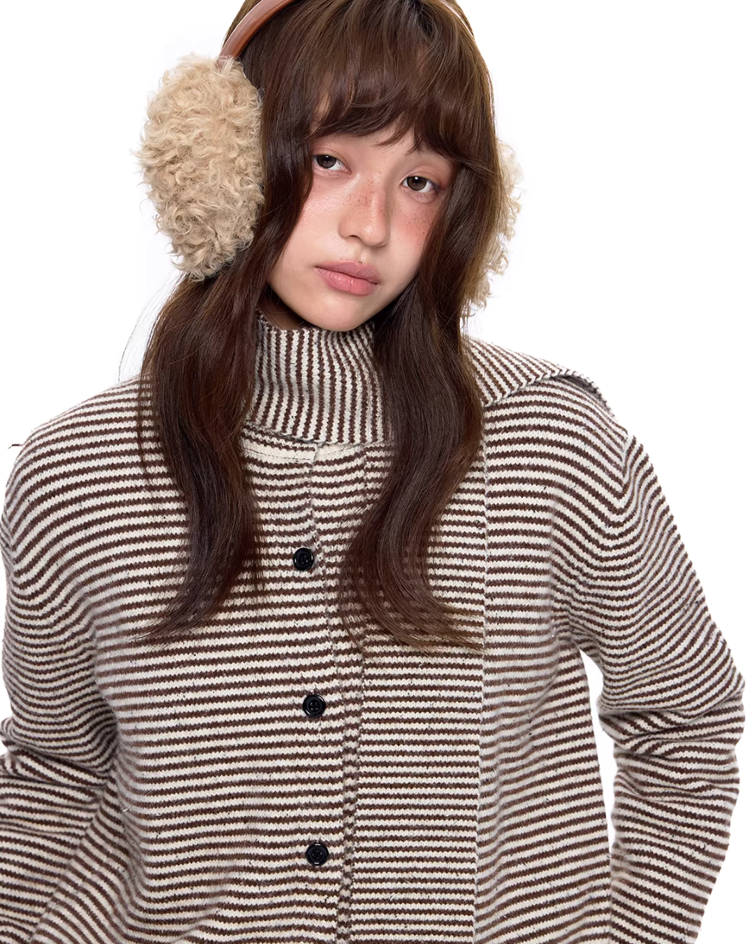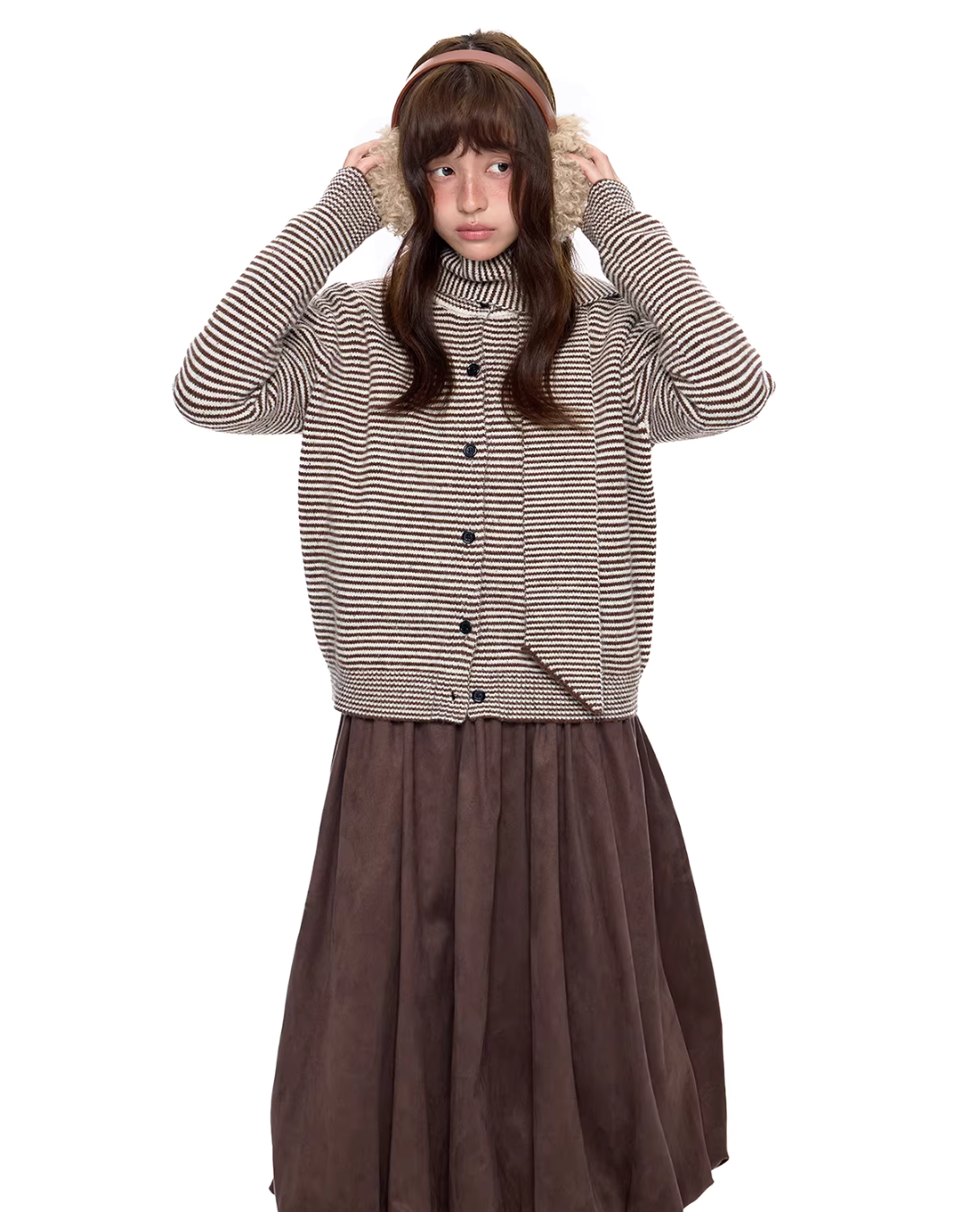 A knit top combined with a scarf of the same material.