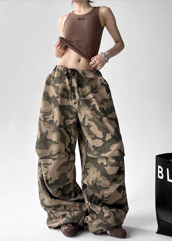 Drawstring Camo Baggy Pants are designed with a relaxed, oversized silhouette for comfortable everyday wear. The camouflage pattern adds visual depth, while the adjustable drawstring waist allows a flexible fit. The loose leg cut supports easy movement and pairs naturally with crop tops, tanks, or oversized layers.