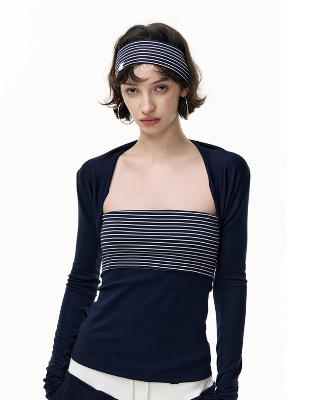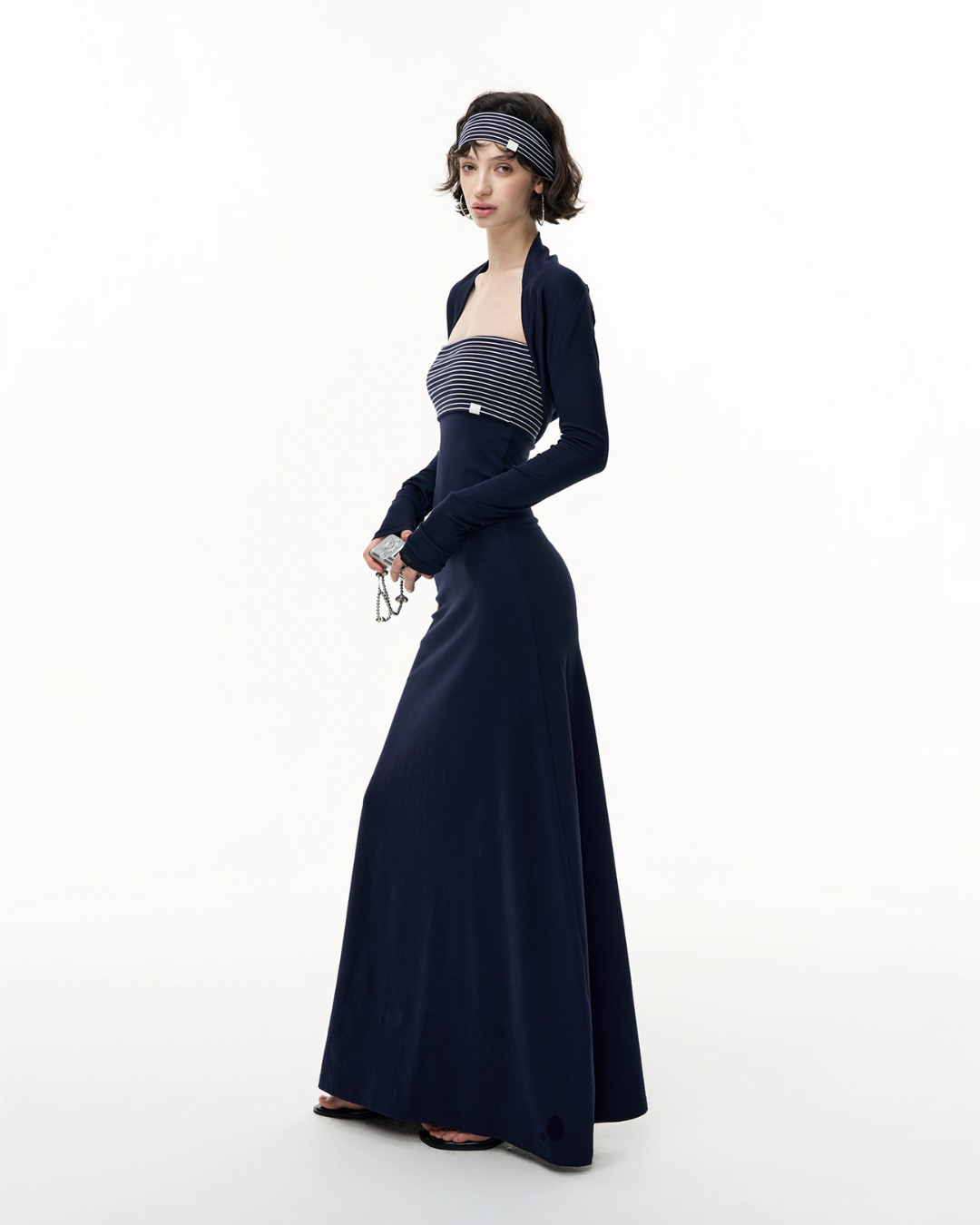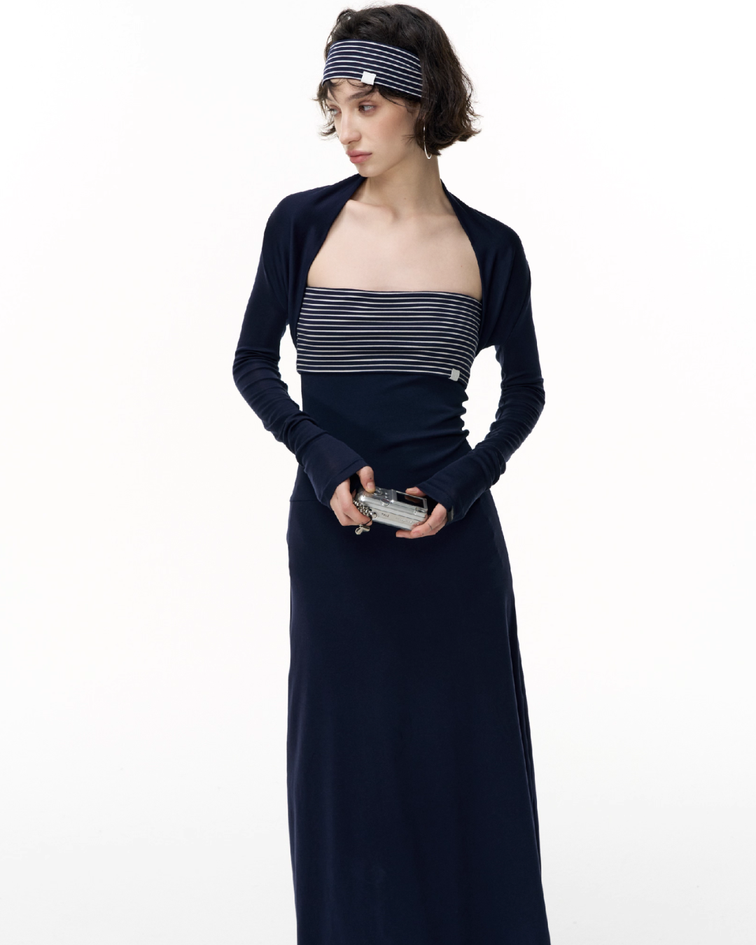 Attractive 3-piece set combining tops, outerwear, and a dress.