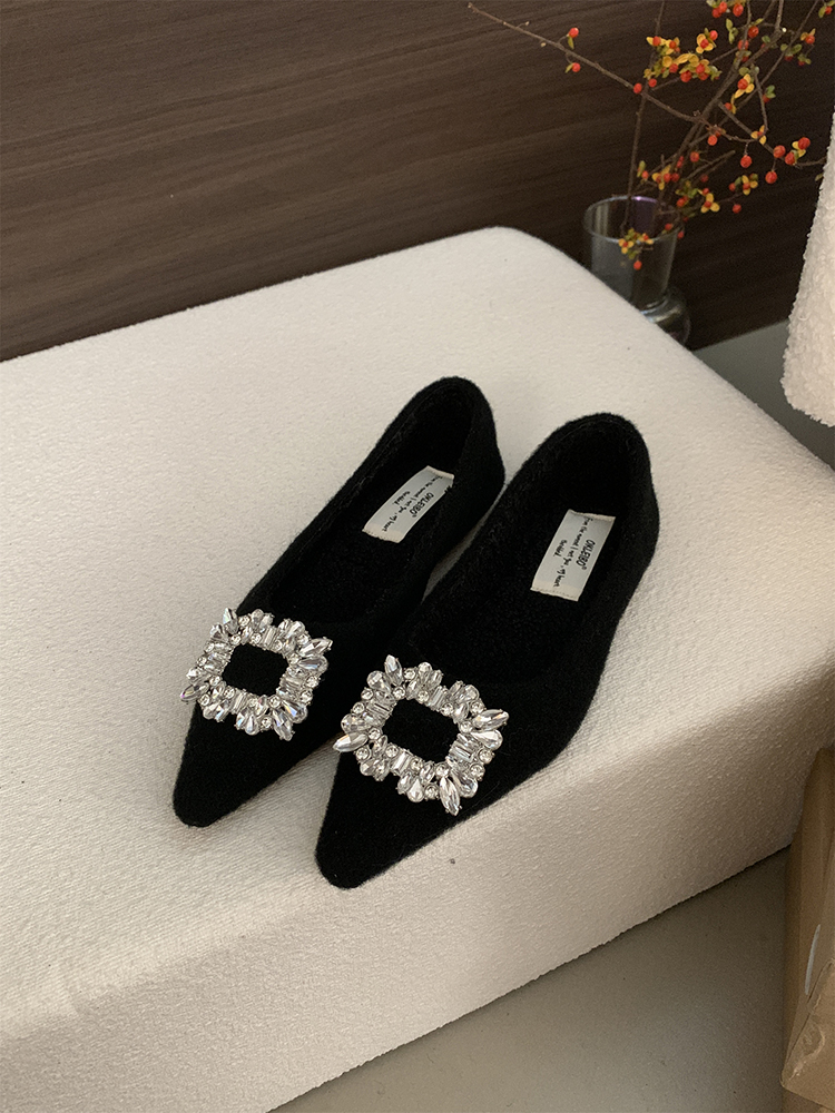 Step into elegance with our Elegant Pointed Toe Plush Flat Shoes, designed with a chic square buckle and sparkling rhinestones, perfect for the autumn and winter seasons. These sophisticated flats offer a comfortable fit while elevating your evening wear and skirts, making them a must-have for any fashion-forward wardrobe. Don’t miss out on the chance to shine add these stunning shoes to your cart today!