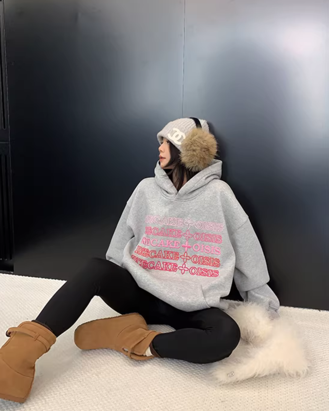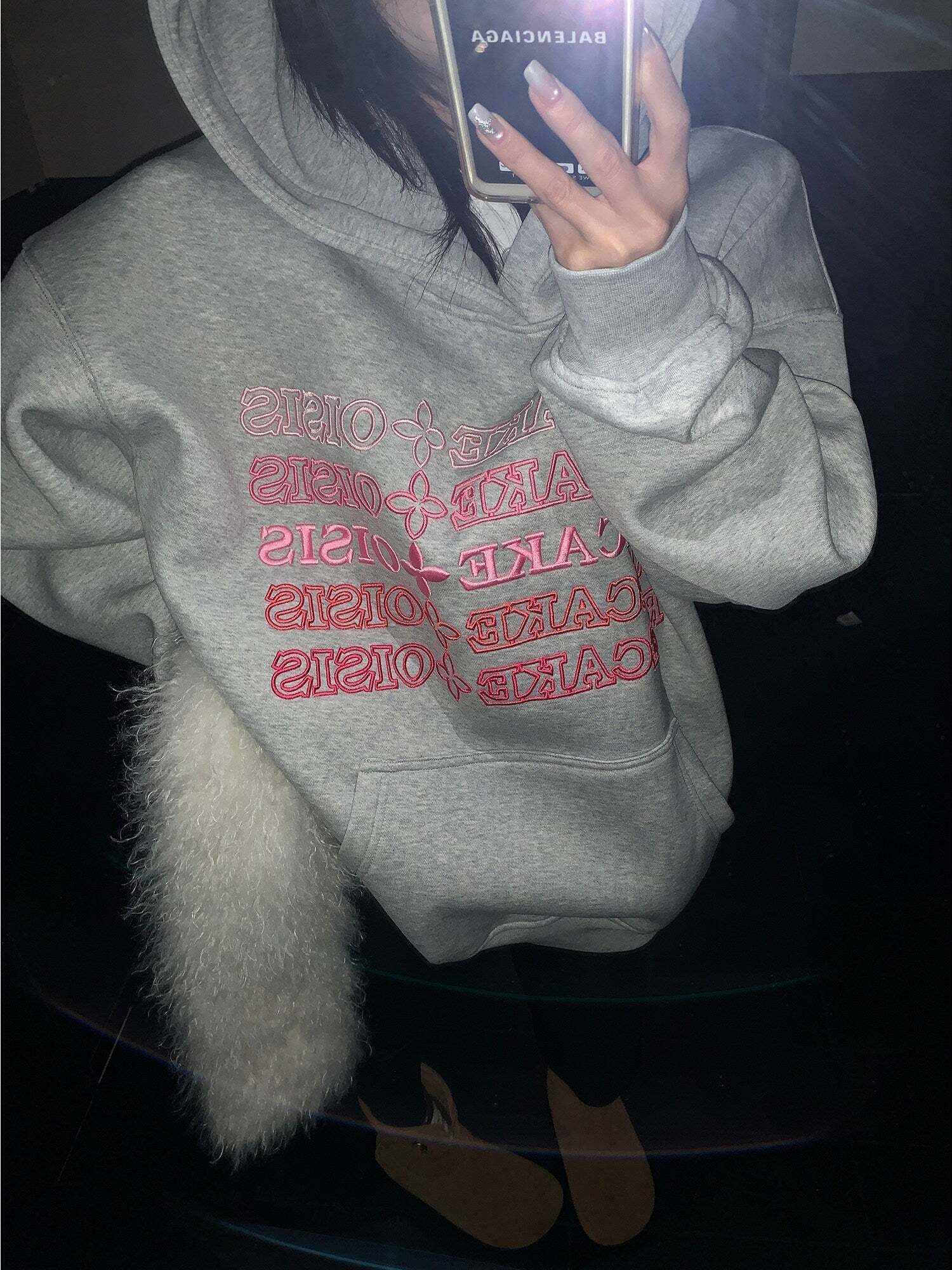 The three-dimensional embossed logo design stands out on this sweatshirt parka.