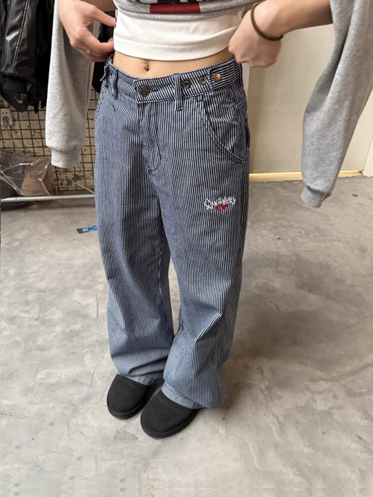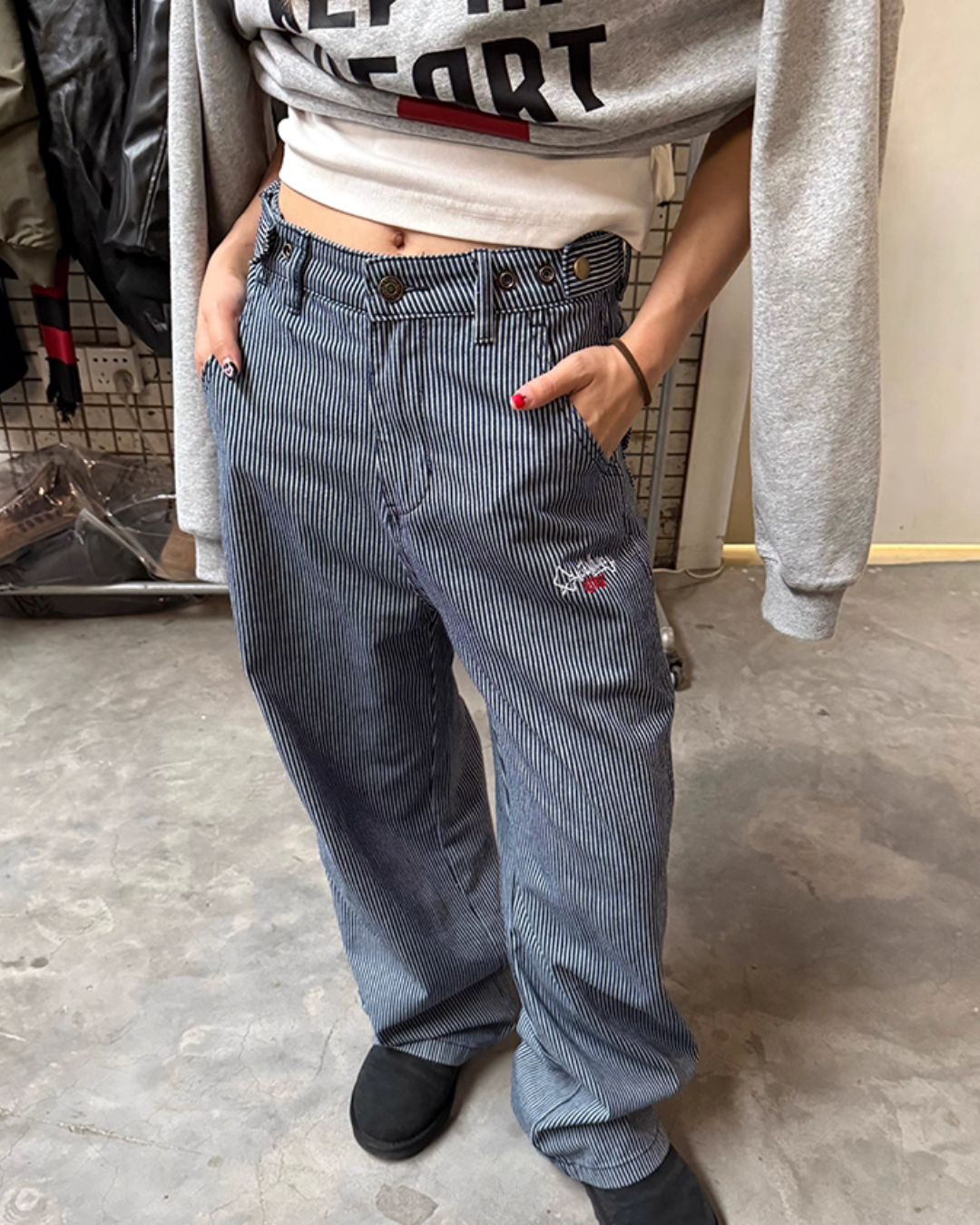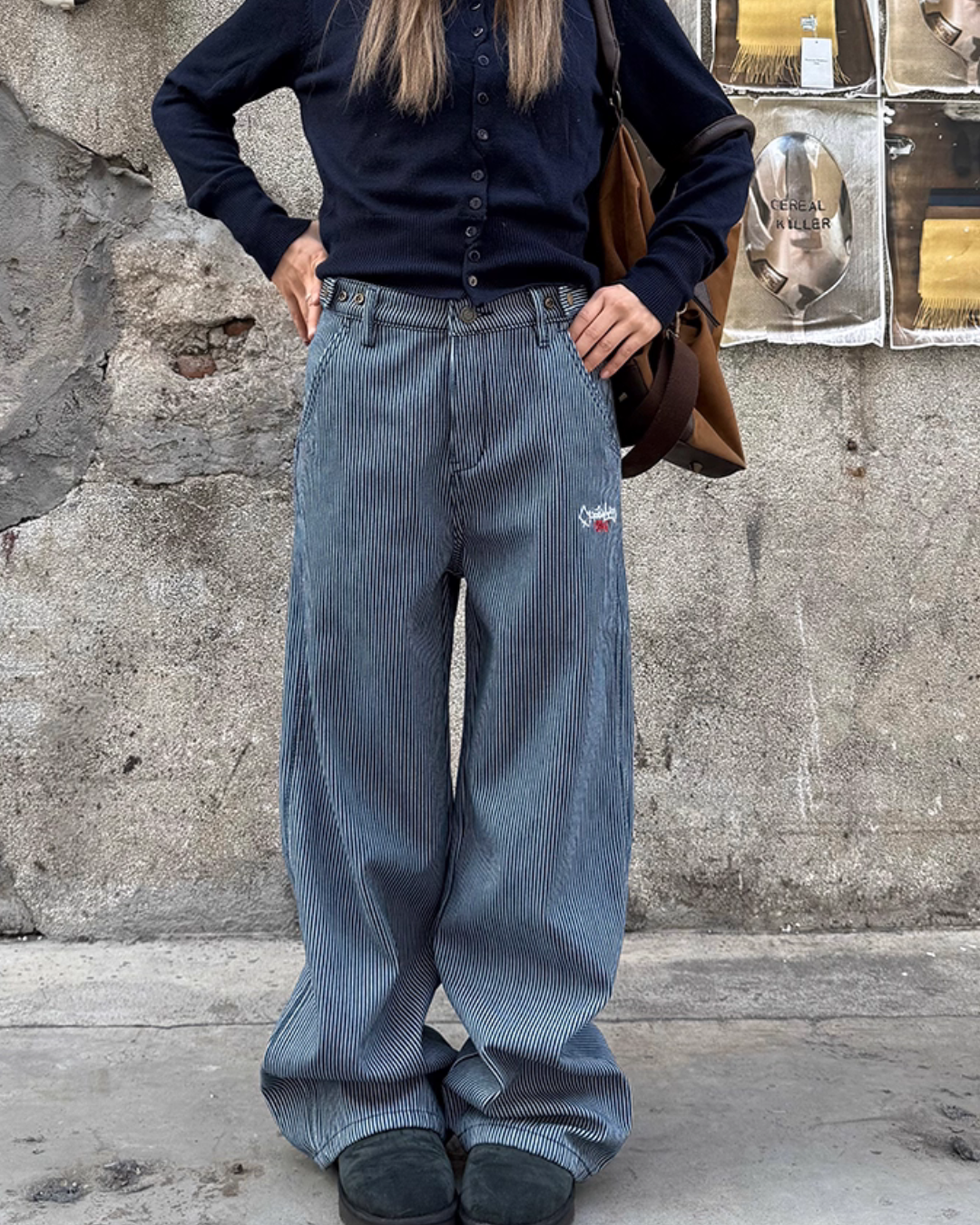 Striped pants that showcase a trend-like styling just by wearing them.